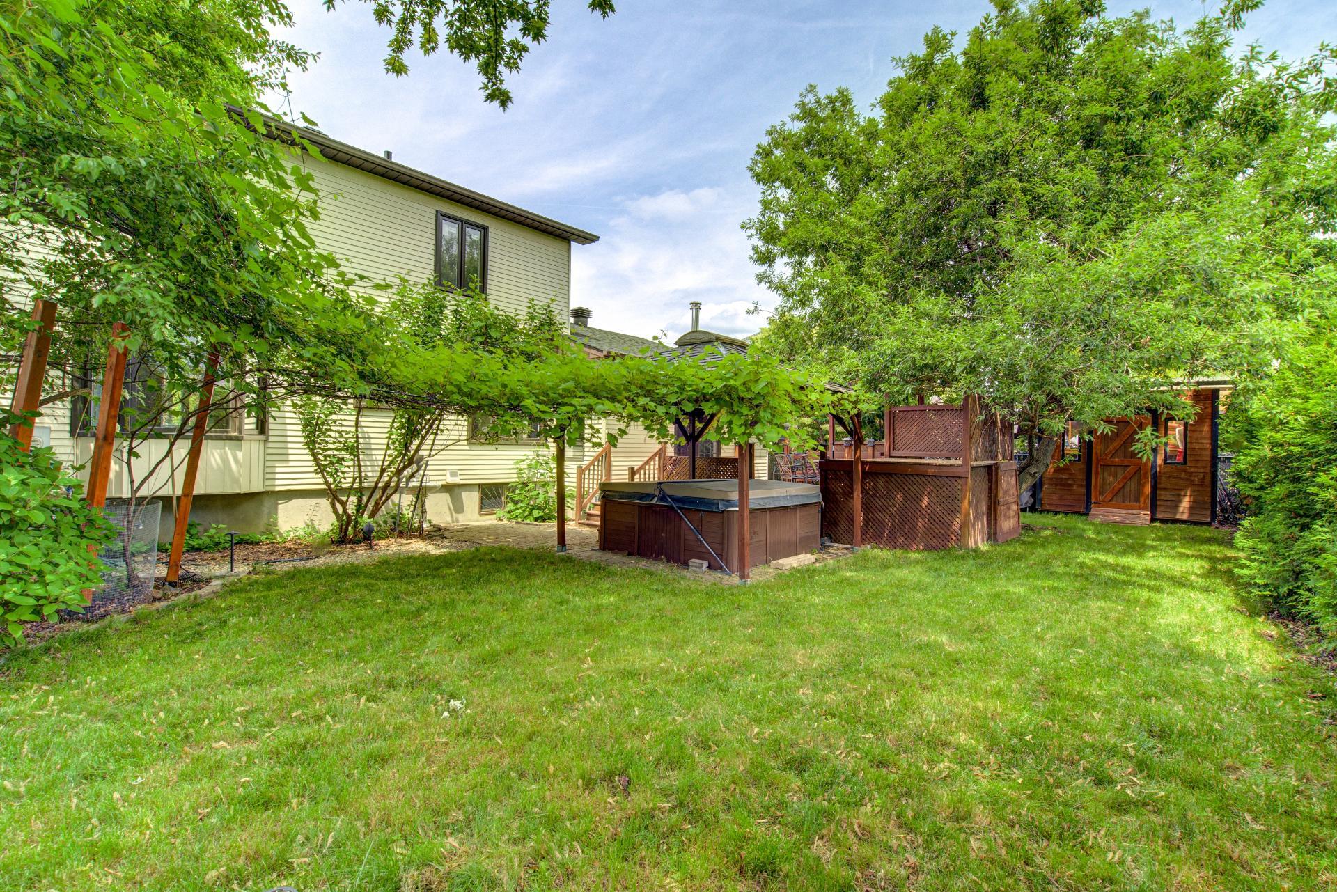 ** LIBRE RAPIDEMENT ! GRAND COTTAGE AVEC GARAGE DOUBLE ** Modèle complet, RDC offre des planchers de bois et une agréable luminosité. Salon attenant à la salle à manger, cuisine fonctionnelle avec coin-repas, salle familiale en contrebas avec foyer au bois et porte-patio menant à la cour. À l'étage, 3 chambres (2 avec walk-in) et salle de bain. Sous-sol aménagé avec 4e chambre, salle familiale, salle de bain et salle de lavage. Chauffage/climatisation central. Cour intime avec vaste balcon de bois, spa couvert, espace vert et cabanon. Emplacement de choix près des services, écoles et parcs. Idéal pour la vie de famille ! Suite addenda