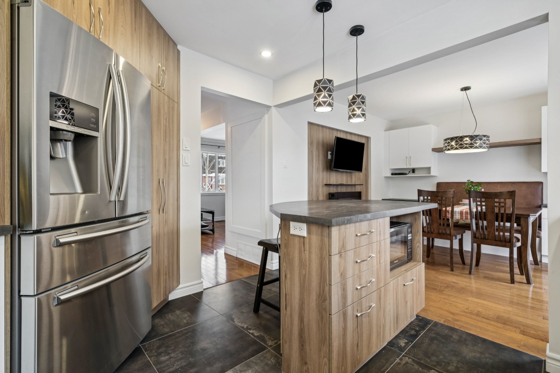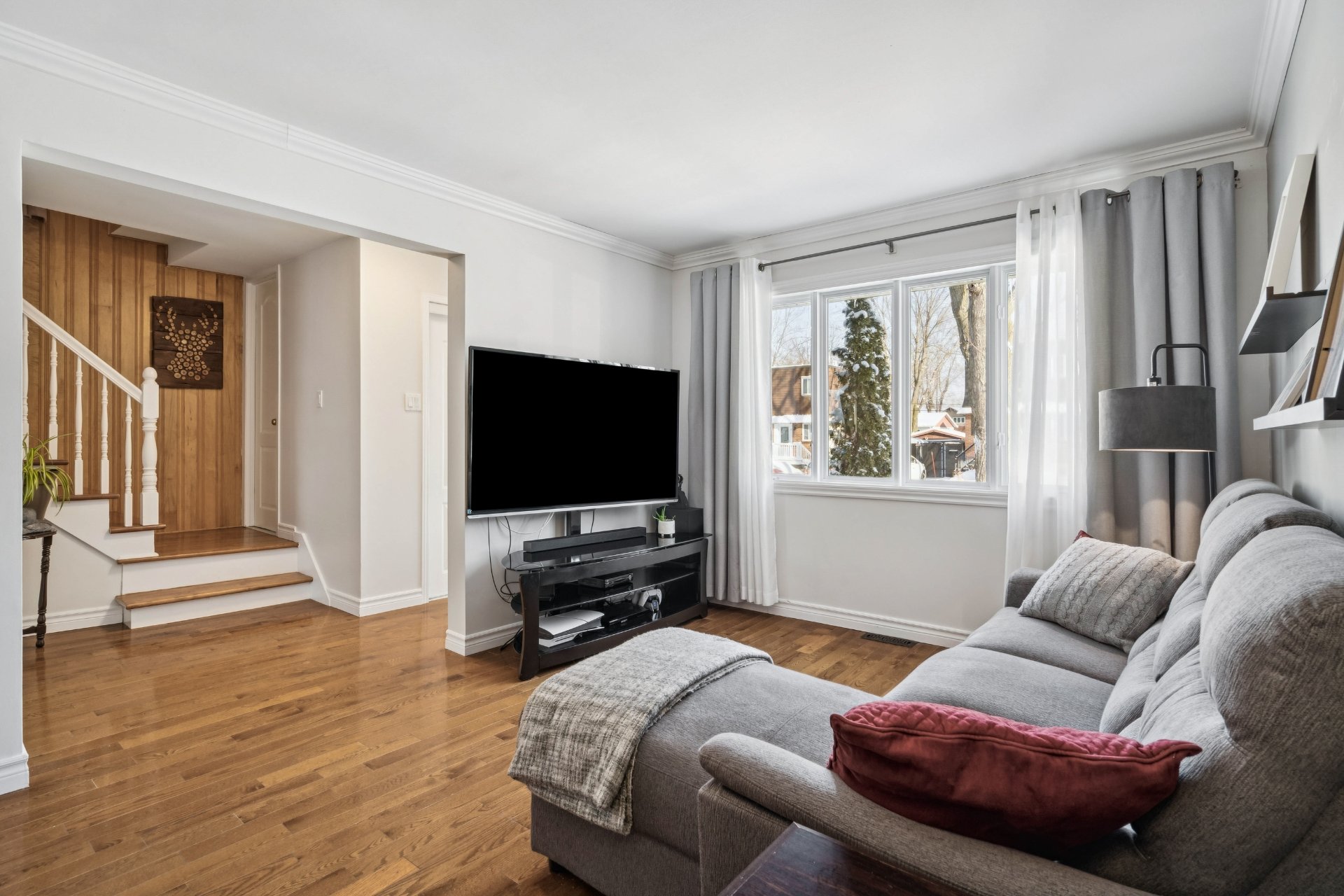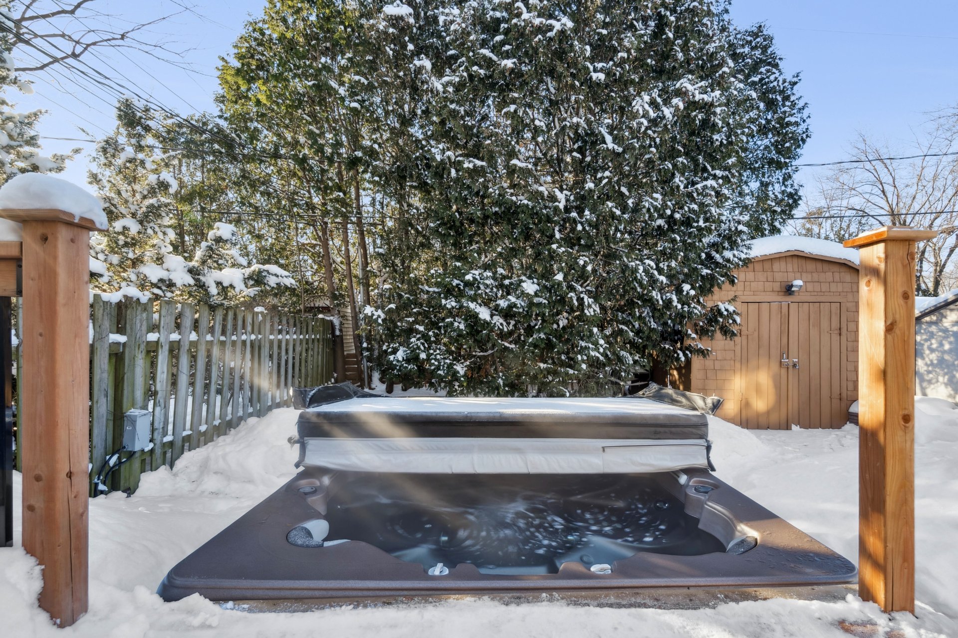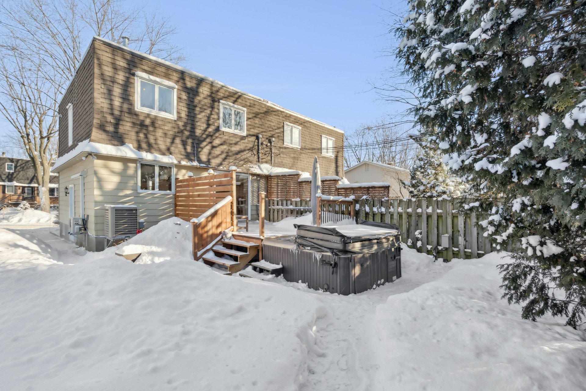 ** JOLI JUMELÉ SUR RUE CHARMANTE ET BOISÉE ** Situé dans un quartier familial. Modèle offrant 4 chambres et 2 1/2 SDB, salon confortable, cuisine et salle à manger rénovées 2019, banquette, meuble intégré, foyer électrique, îlot/comptoir-lunch, beau dosseret. Salle familiale au sous-sol, chambre avec SDB attenante et salle de lavage séparée/salle mécanique avec cuve et espace rangement. Cour conviviale, vaste balcon en bois menant au SPA, remise et arbres matures, grande allée de stationnement. Suite addenda !