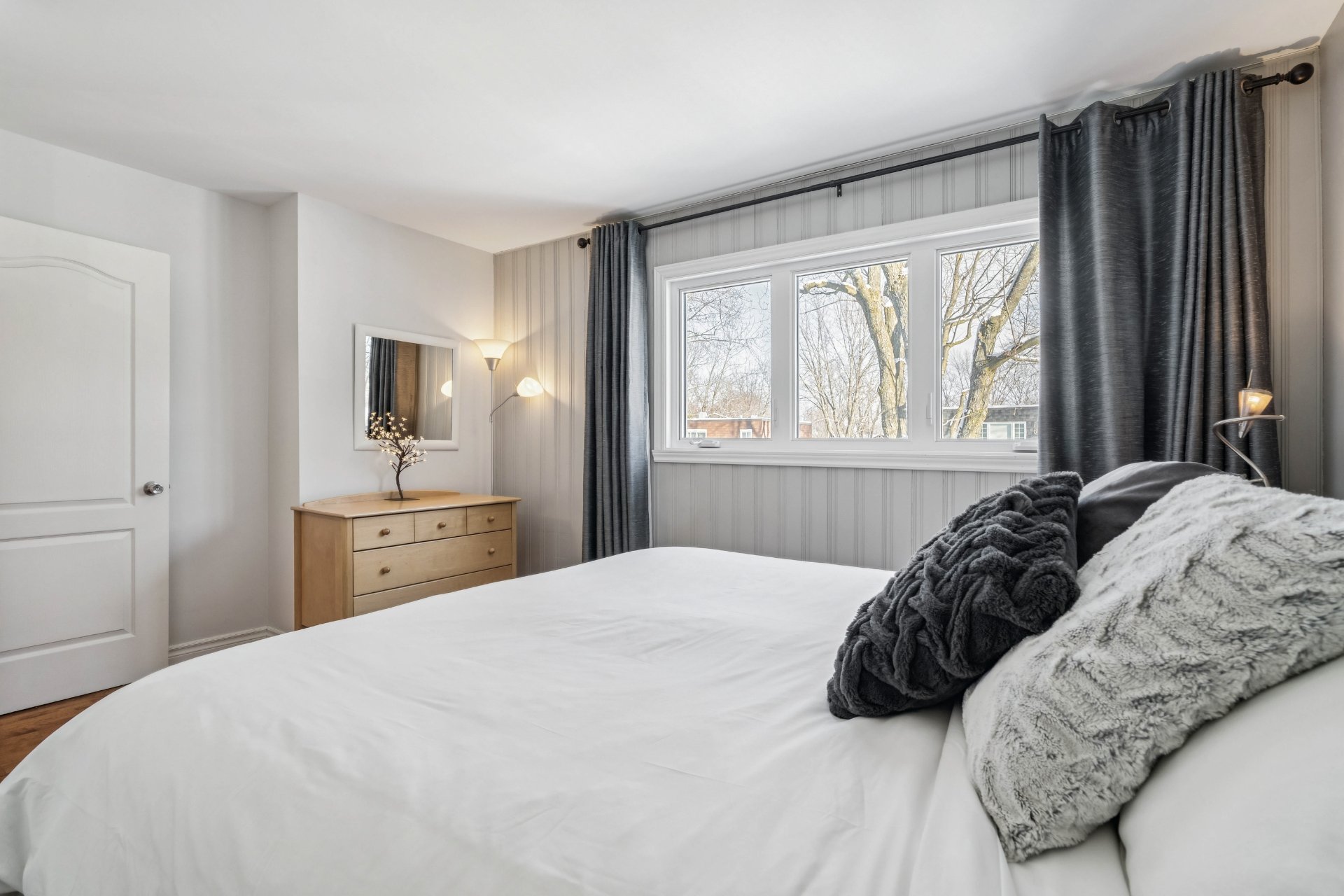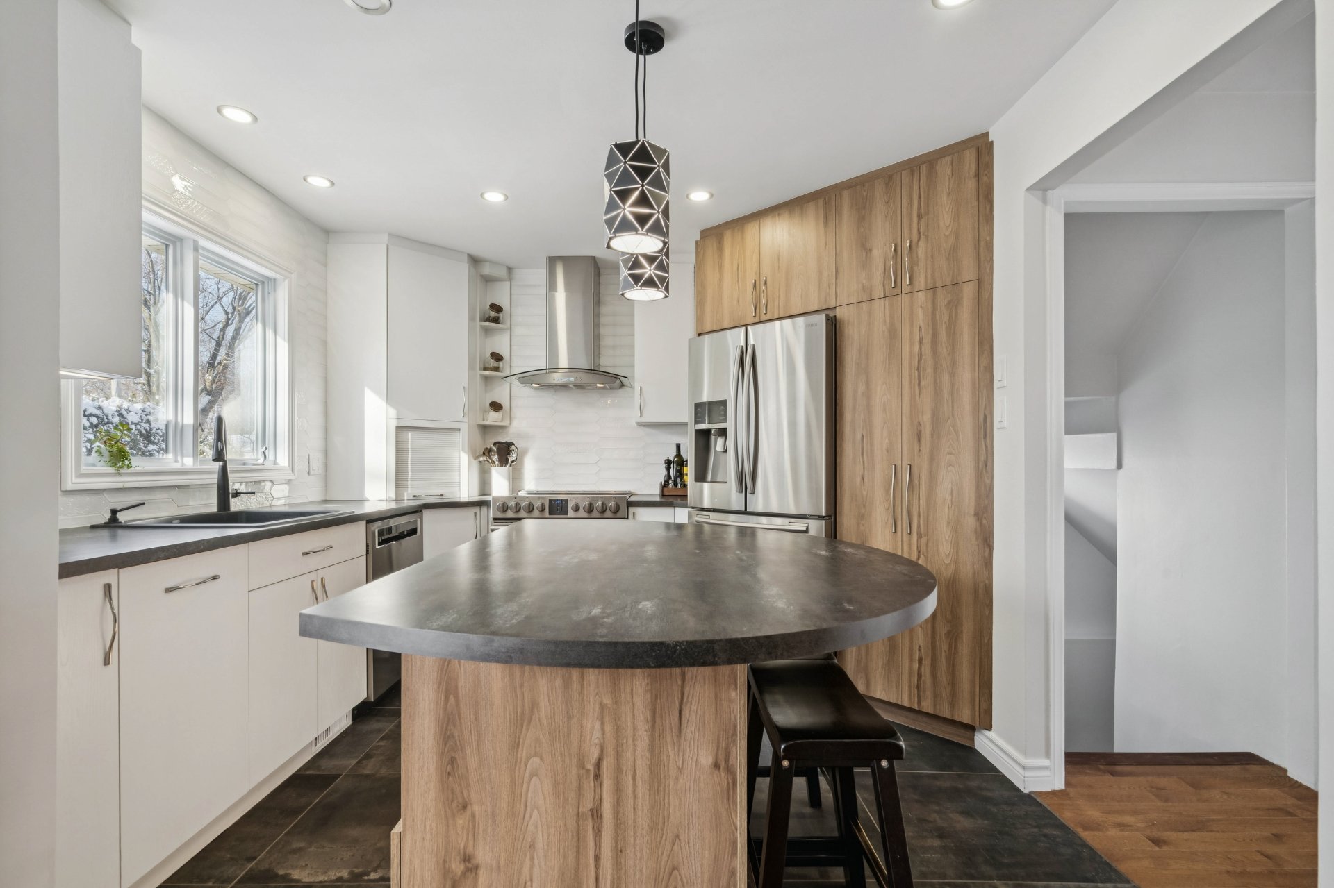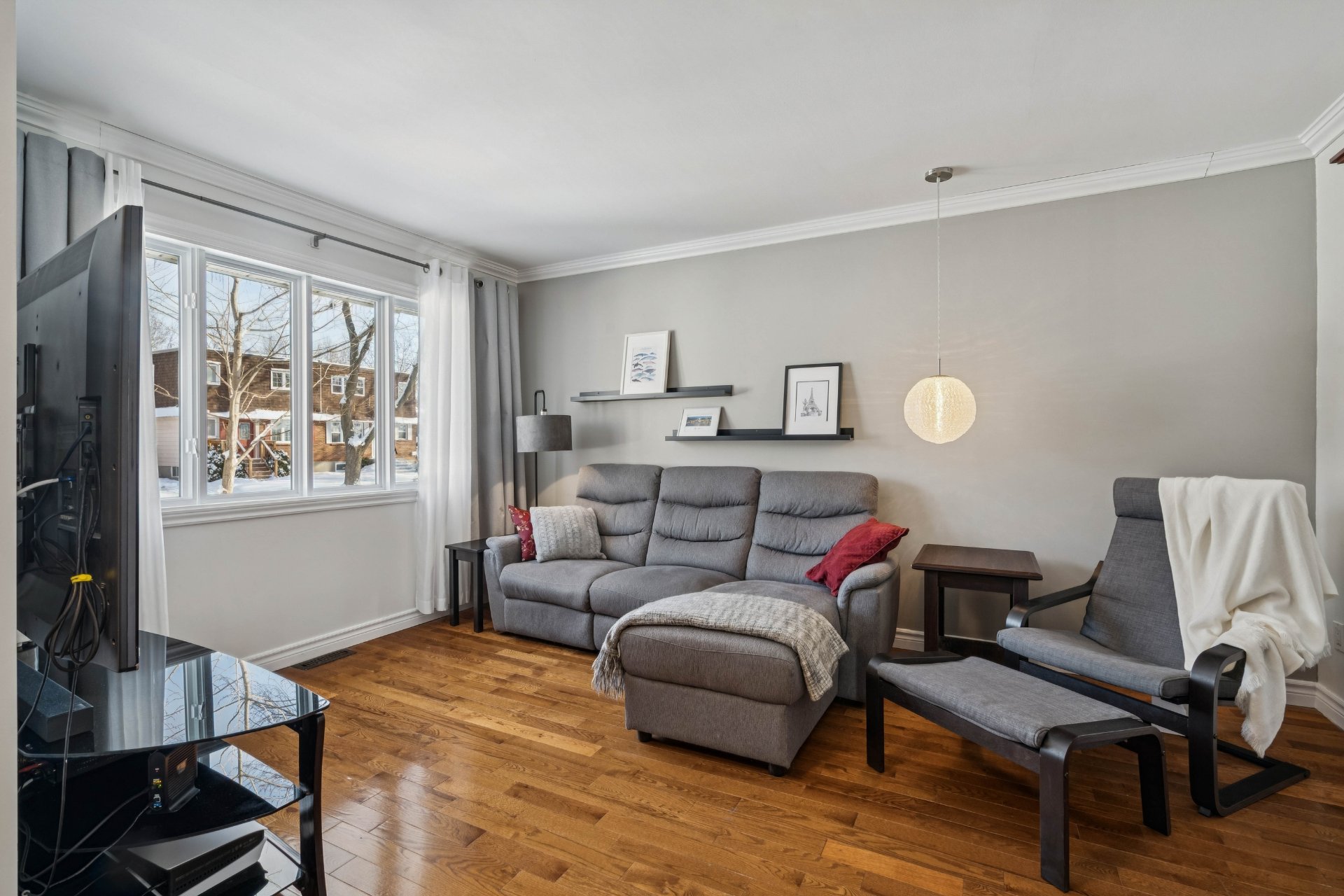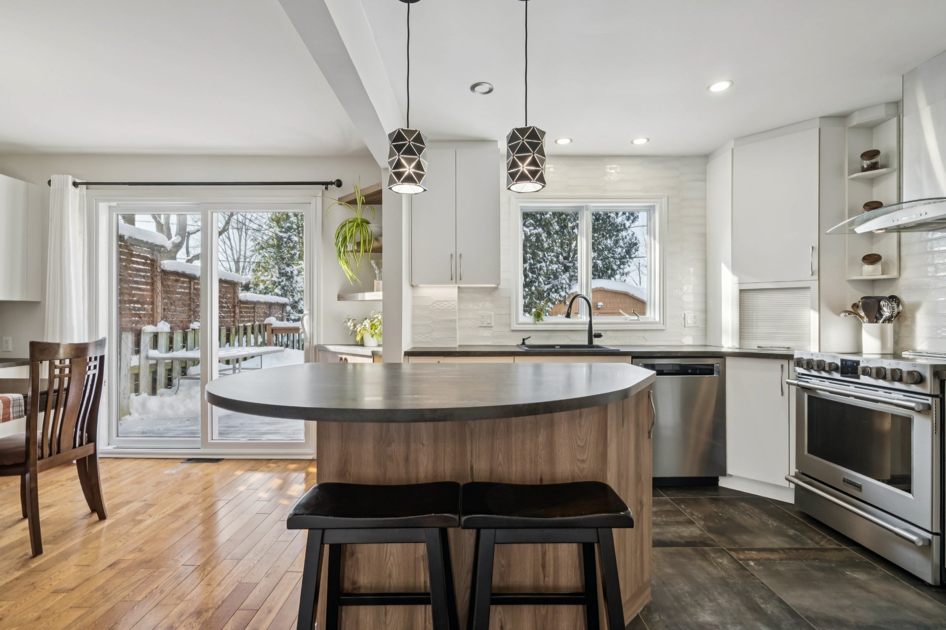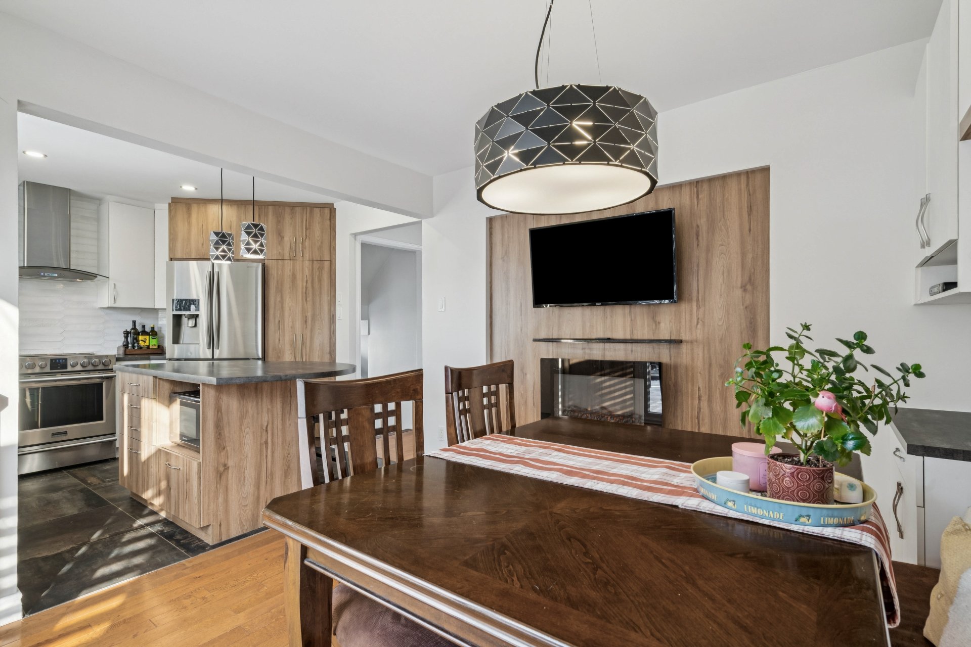 ** JOLI JUMELÉ SUR RUE CHARMANTE ET BOISÉE ** Situé dans un quartier familial. Modèle offrant 4 chambres et 2 1/2 SDB, salon confortable, cuisine et salle à manger rénovées 2019, banquette, meuble intégré, foyer électrique, îlot/comptoir-lunch, beau dosseret. Salle familiale au sous-sol, chambre avec SDB attenante et salle de lavage séparée/salle mécanique avec cuve et espace rangement. Cour conviviale, vaste balcon en bois menant au SPA, remise et arbres matures, grande allée de stationnement. Suite addenda !
