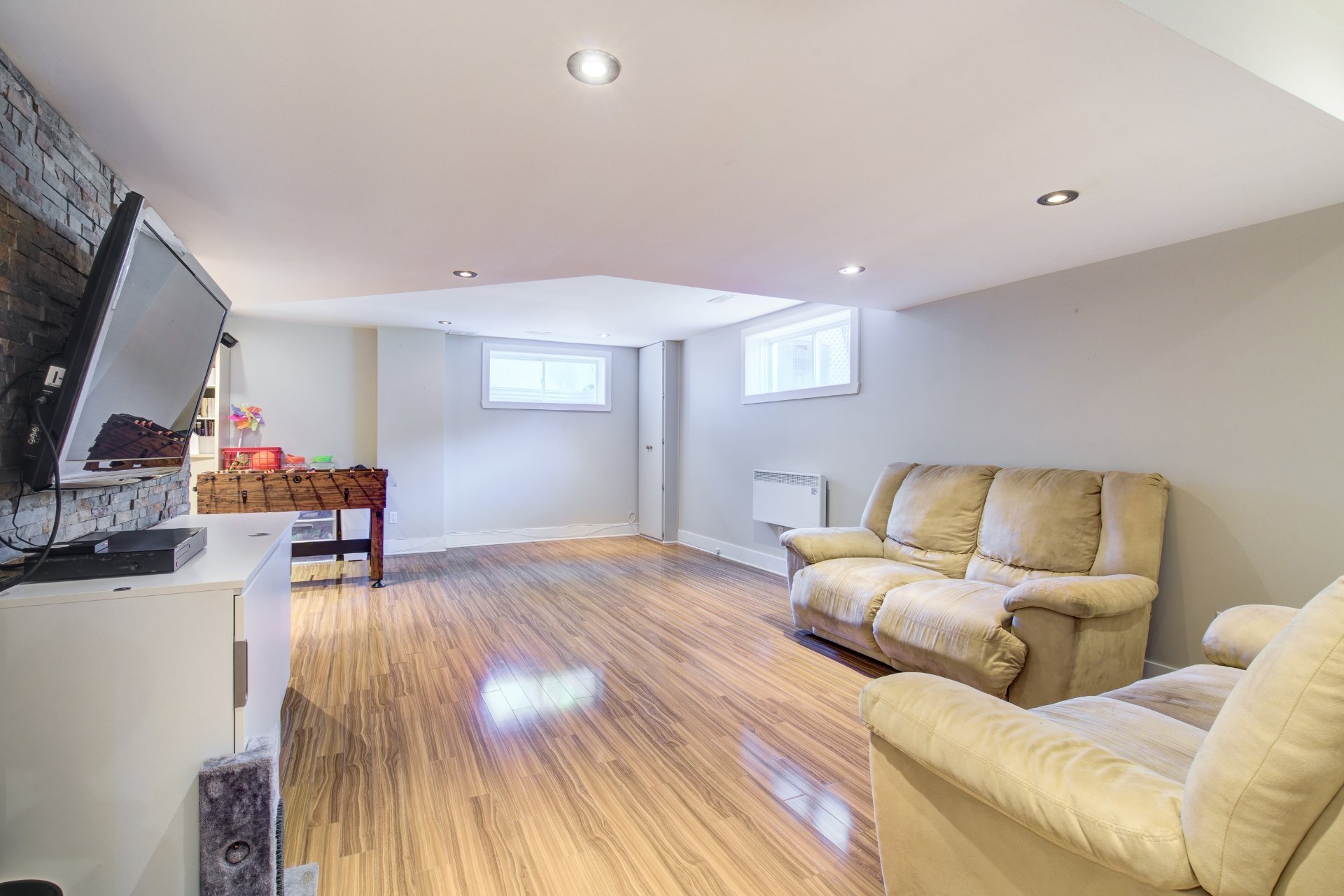Luminaires, pôles, rideaux, toiles/stores des fenêtres, ouvre porte de garage électrique et manette, remise, aspirateur central et acc., piscine et acc., thp piscine, système d'alarme, 3 supports à télévision, miroirs...