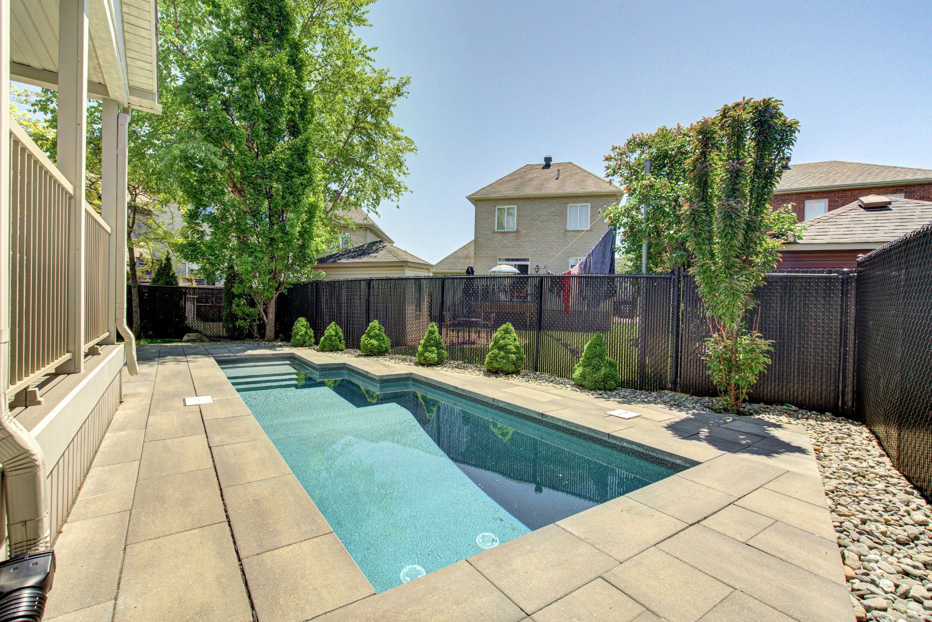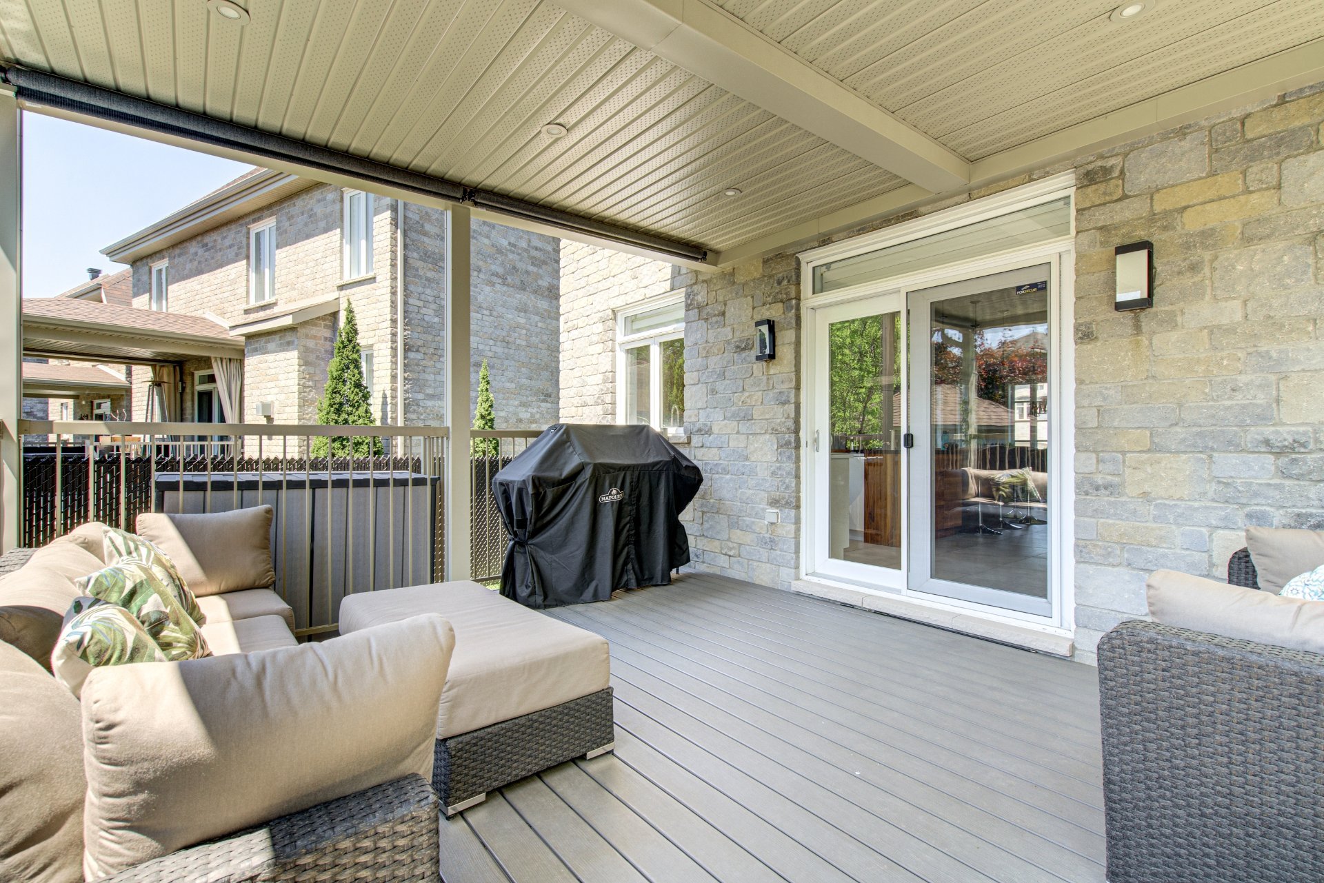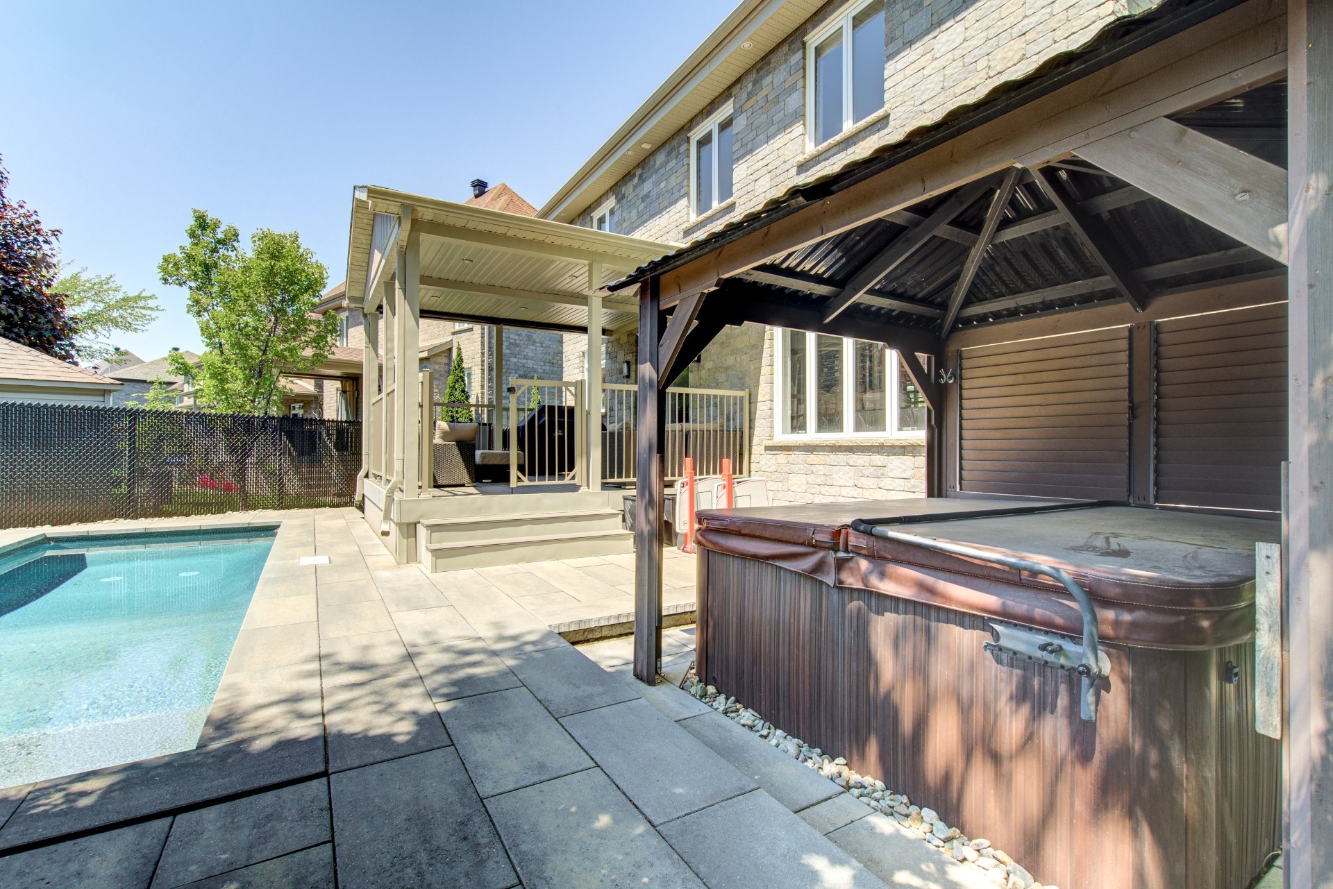 Luminaires, pôles, rideaux, toiles/stores des fenêtres, ouvre porte de garage électrique et manette, remise, aspirateur central et acc., piscine et acc., thp piscine, système d'alarme, 3 supports à télévision, miroirs SDB et SDE, tablettes fixes, spa, gazebo, PAX, rangement dans les garde-robes, électroménagers de cuisine (réfrigérateur, lave-vaisselle, plaque, 2 fours, refroidisseur pour cellier), hauts-parleurs encastrés non branchés