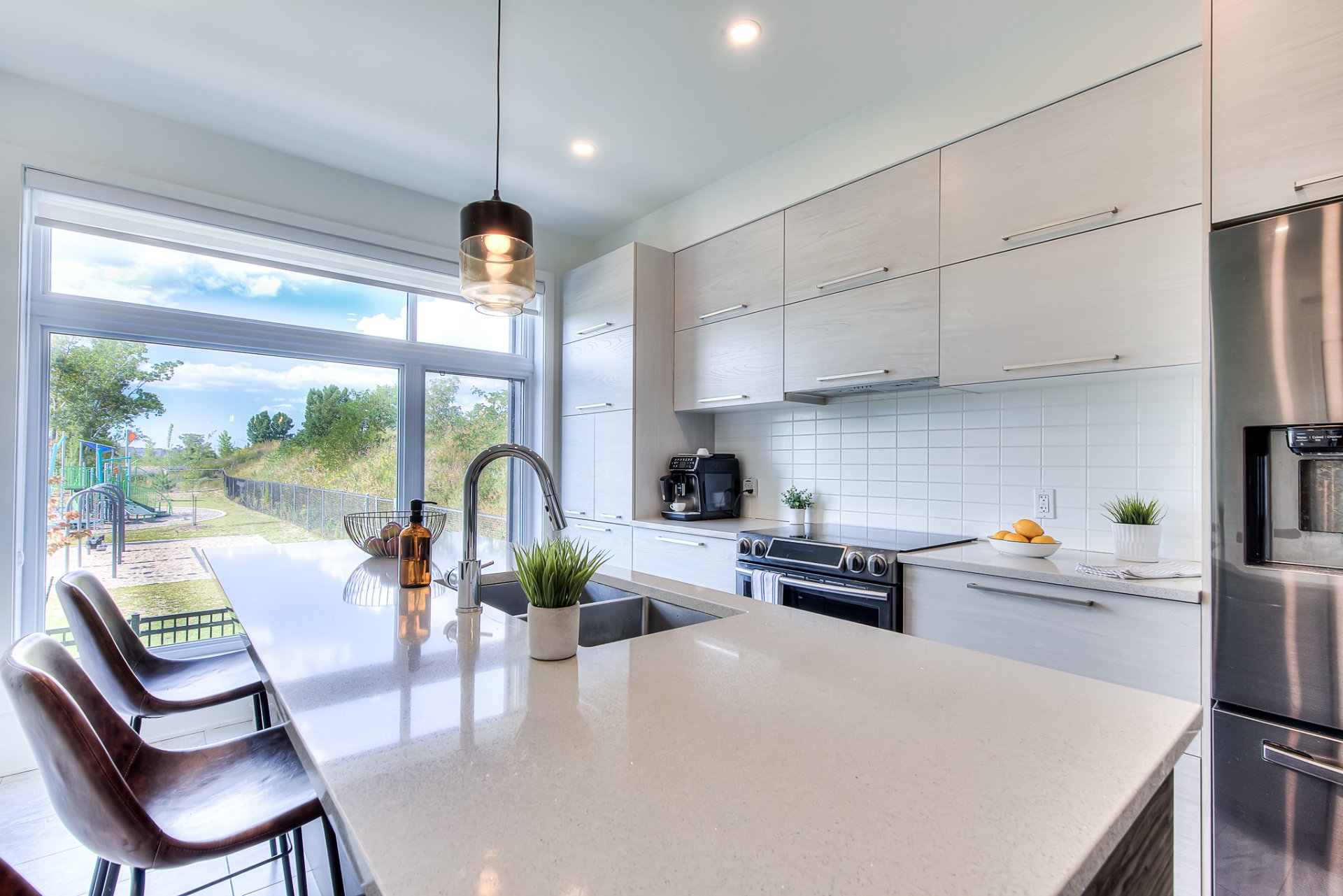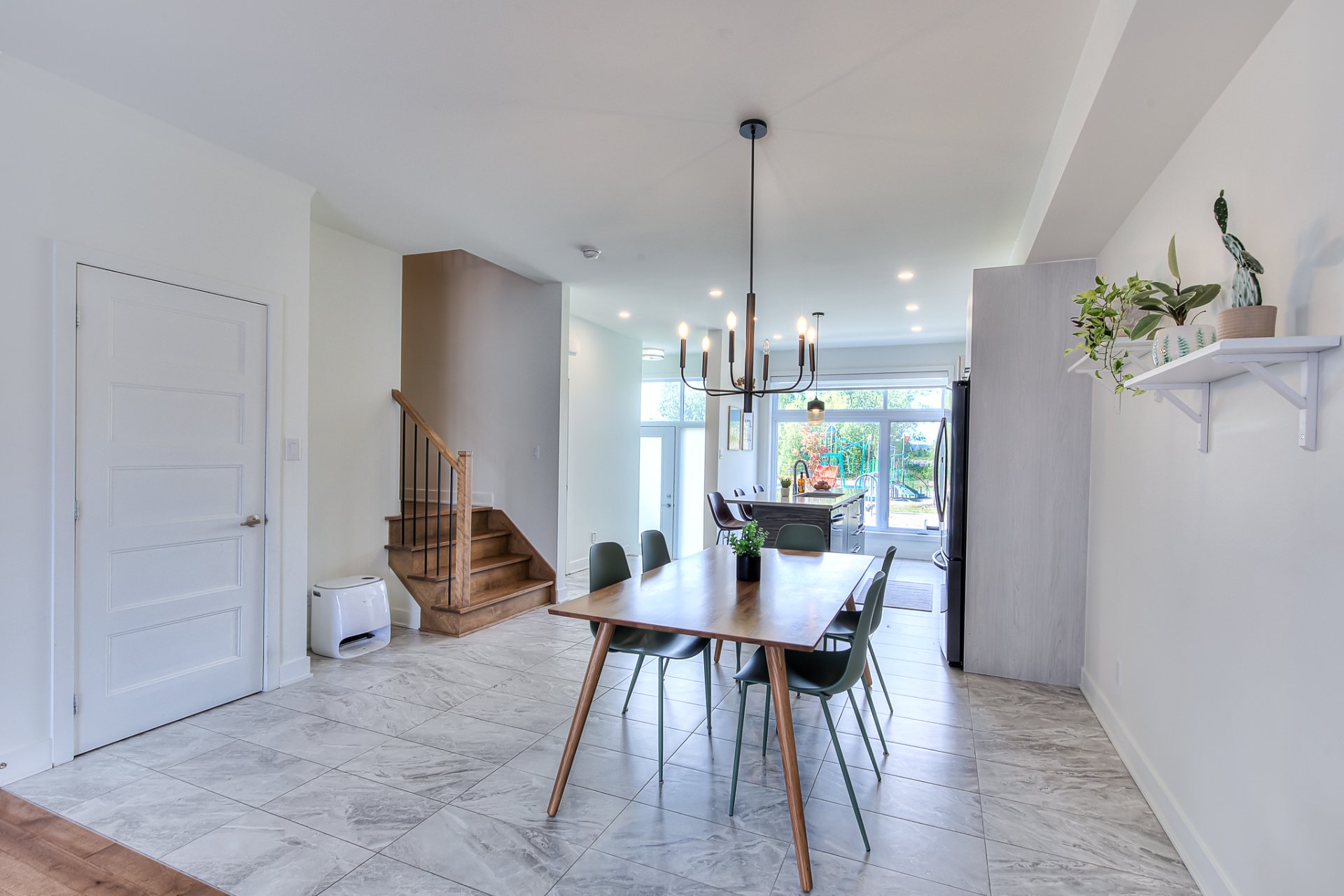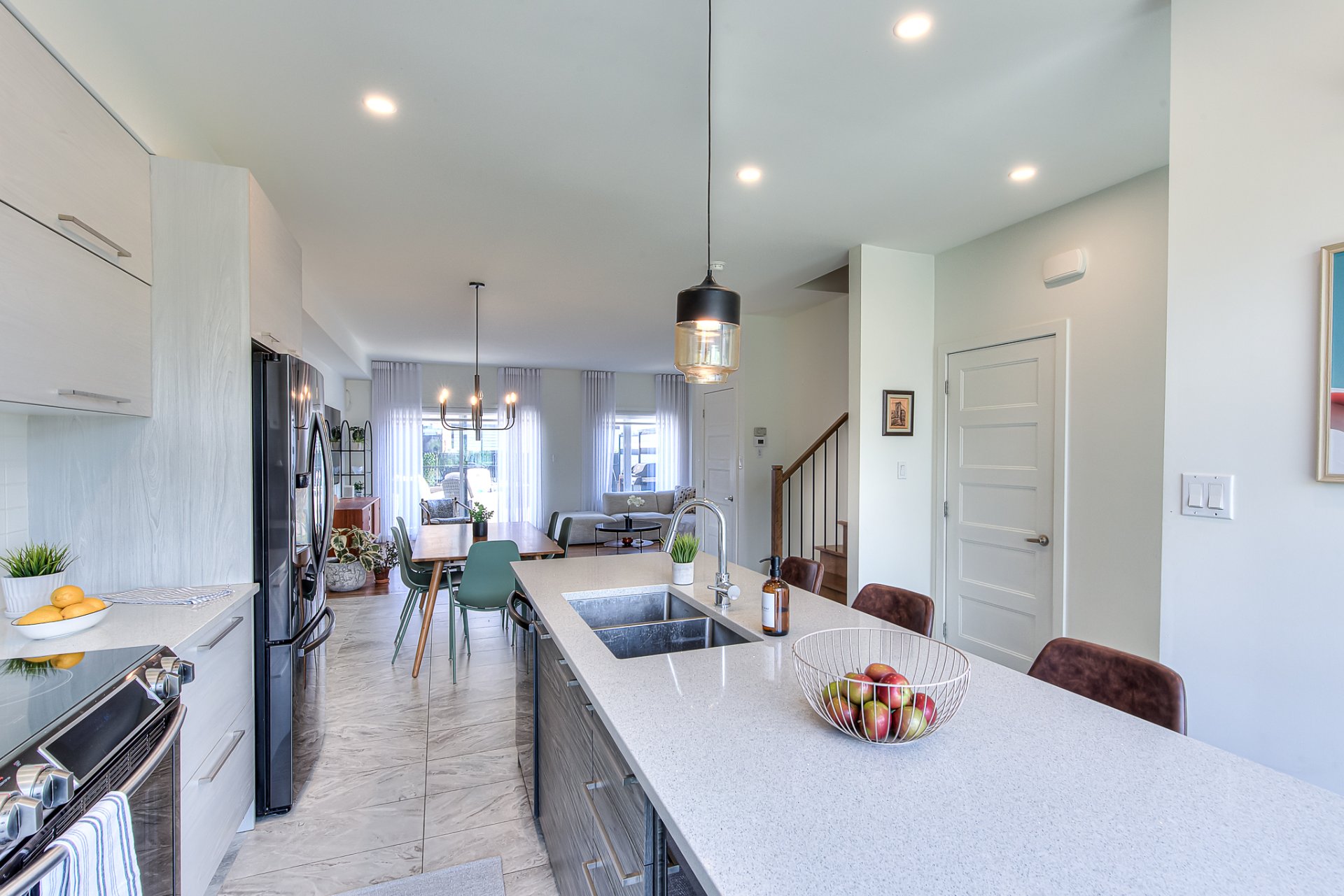 Magnifique maison de ville située dans le prestigieux secteur "Villas-sur-Rive".Le rdc, avec plafonds de 9 pieds,offre un vaste espace à aire ouverte comprenant une superbe cuisine avec îlot pouvant accueillir 4 tabourets,un comptoir en quartz, le tout surplombant un très joli parc. Le salon et la salle à manger donnent accès à une grande terrasse munie d'une sortie pour barbecue au gaz naturel.À l'étage,on retrouve 3 chambres à coucher de bonnes dimensions,1 salle de bain ainsi qu'1 salle de lavage.La chambre principale dispose d'une penderie.La grande fenestration procure une abondante lumière naturelle dans toute la maison.(suite addenda)