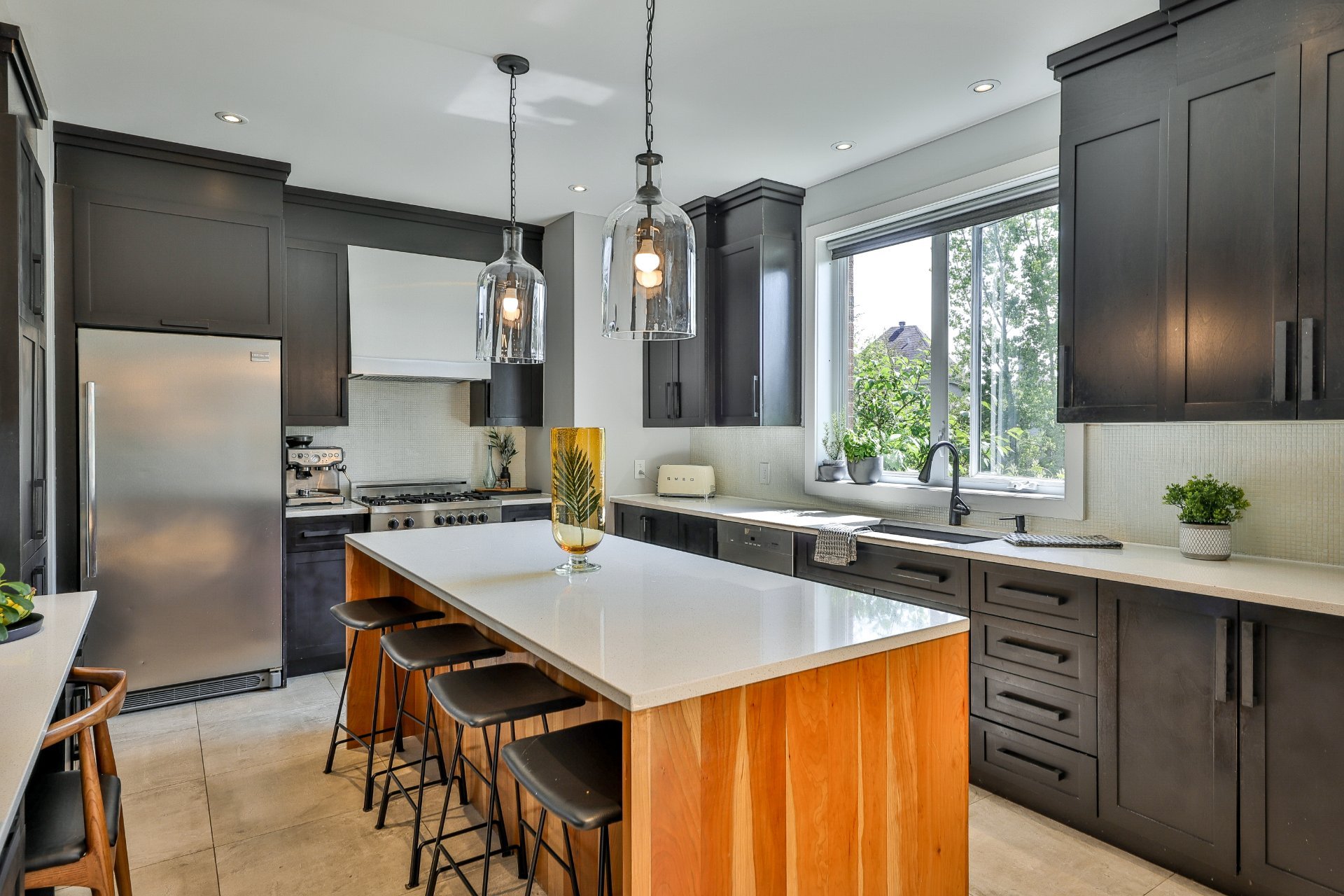 Luminaires, stores, lave-vaisselle, laveuse, sécheuse, hotte de la cuisinière "Bertazzoni", ouvre-porte de garage, aspirateur central et accessoires, système d'alarme, 2 caméras extérieures installées en 2020 (Bell smarthome )