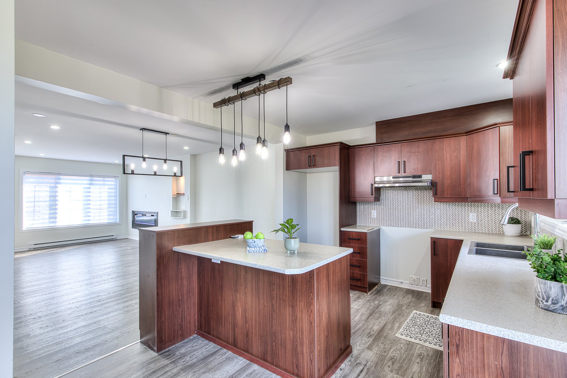 Luminaires, lave-vaisselle, stores, laveuse et sécheuse.