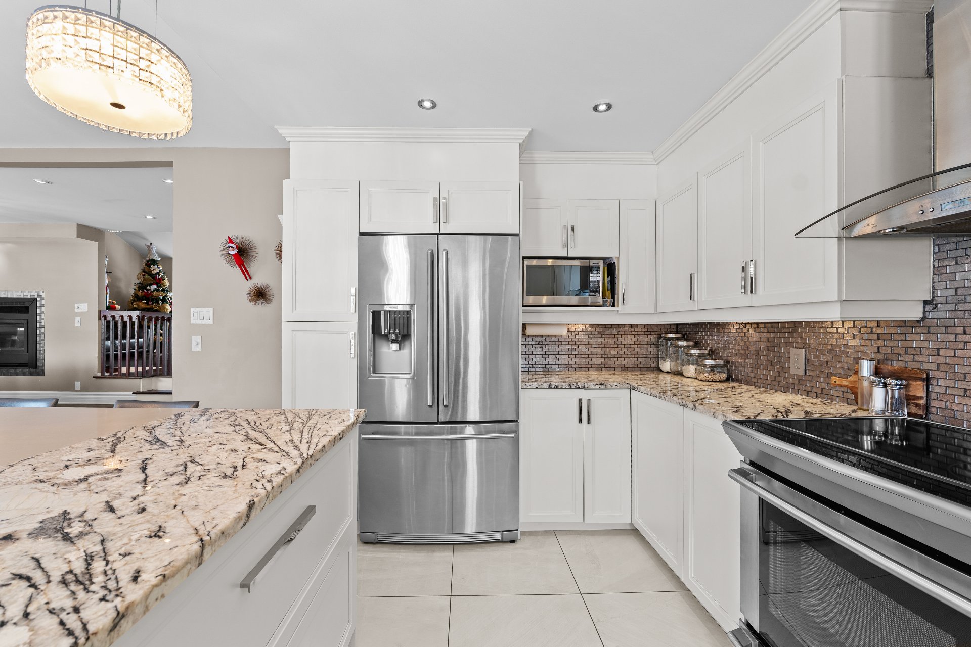 Tous les luminaires, aspirateur central et accessoires, réfrigérateur, lave-vaisselle, cuisinière, abri de jardin, cheminée électrique dans la salle de bain à l'étage, système d'alarme, ouvre-porte de garage électrique.