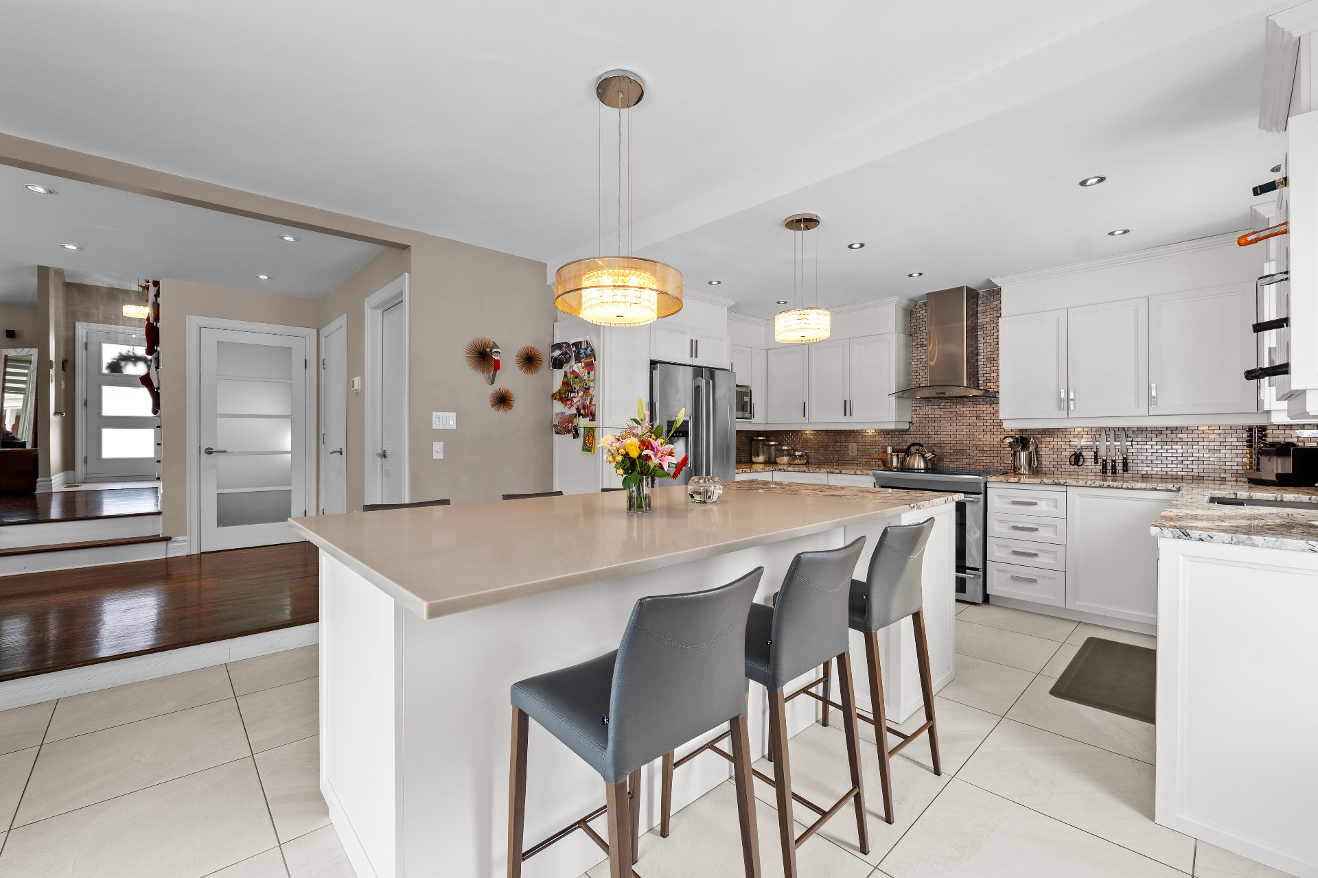 Cottage rénové clé en main dans un secteur recherché de Vimont, Laval, situé au bout d'un cul-de-sac. Cour arrière de rêve avec piscine creusée et espace vert. Trois chambres à l'étage, salle de bain rénovée, salon avec plafond cathédrale ouvert sur la salle à manger avec foyer 2 faces. Cuisine avec grand îlot. Sous-sol aménagé offrant grande salle familiale, espace bureau ouvert, un bureau fermé et salle de bain avec plancher chauffant. Localisé près des écoles, du cégep, de l'université, de l'hôpital Cité-de-la-Santé, des transports en commun, du train de banlieue, des stations de métro, des autoroutes 13-15-19-25-440-640 et de la route 117