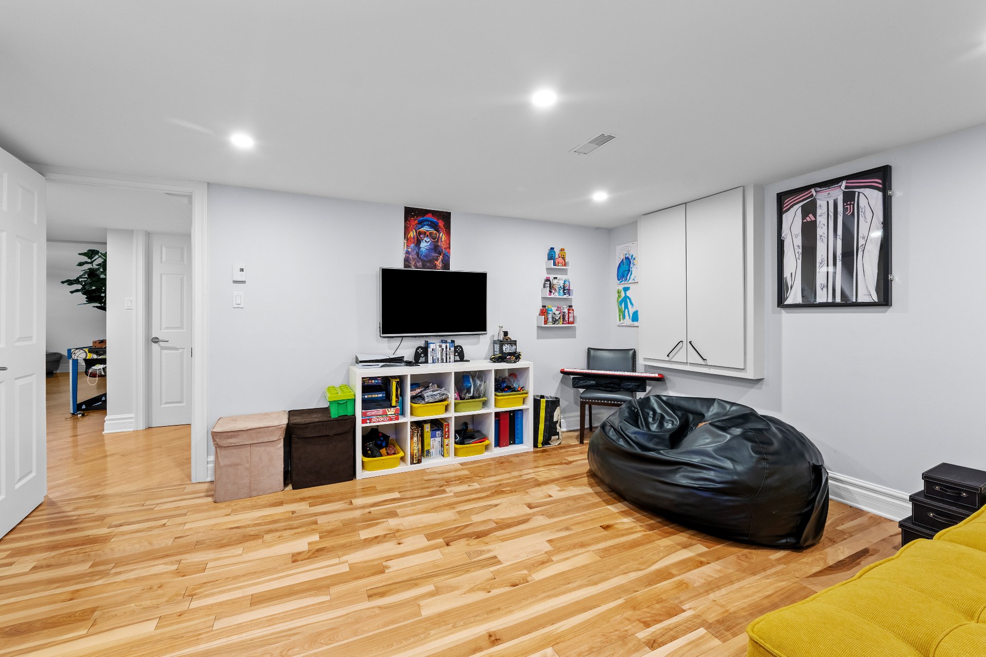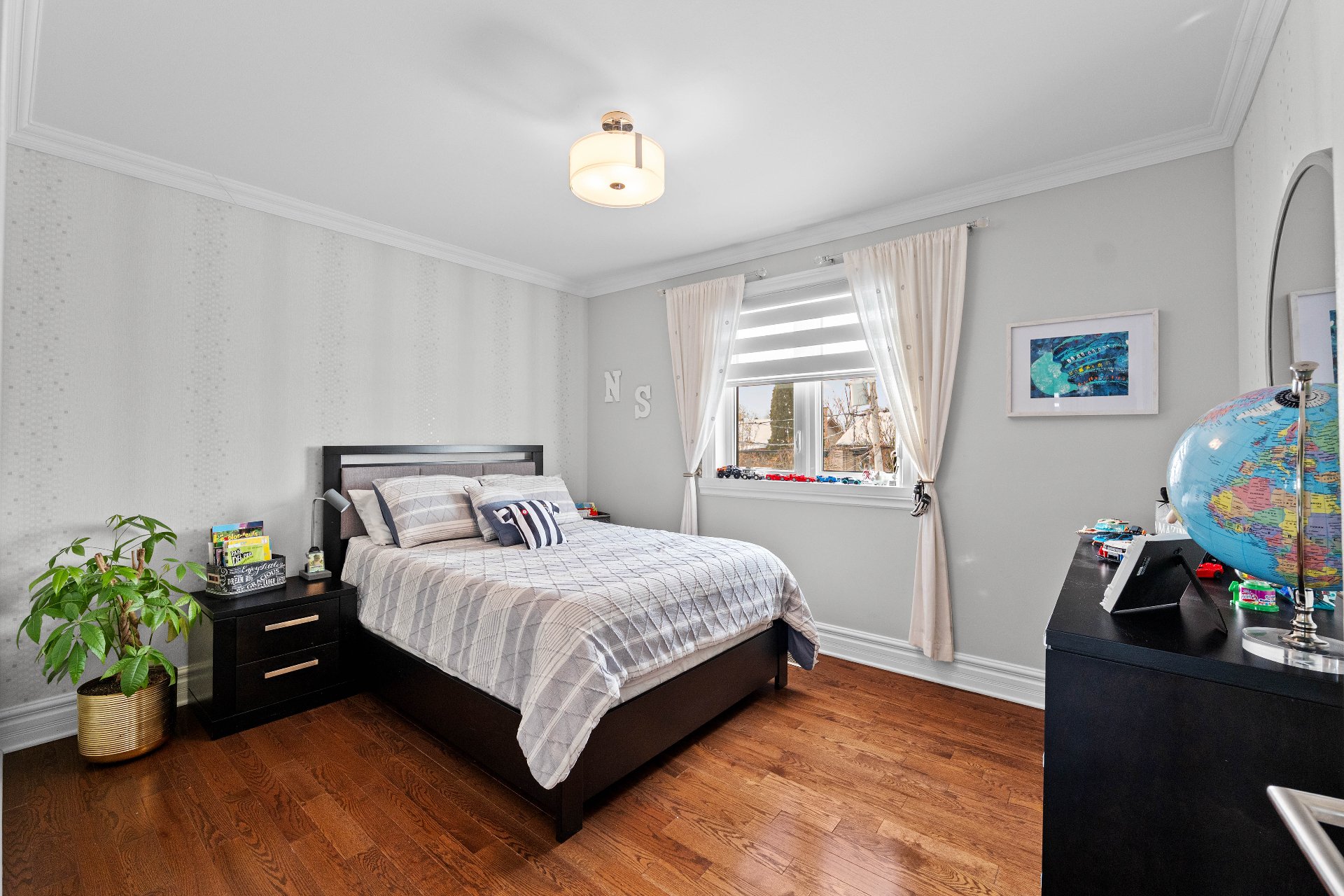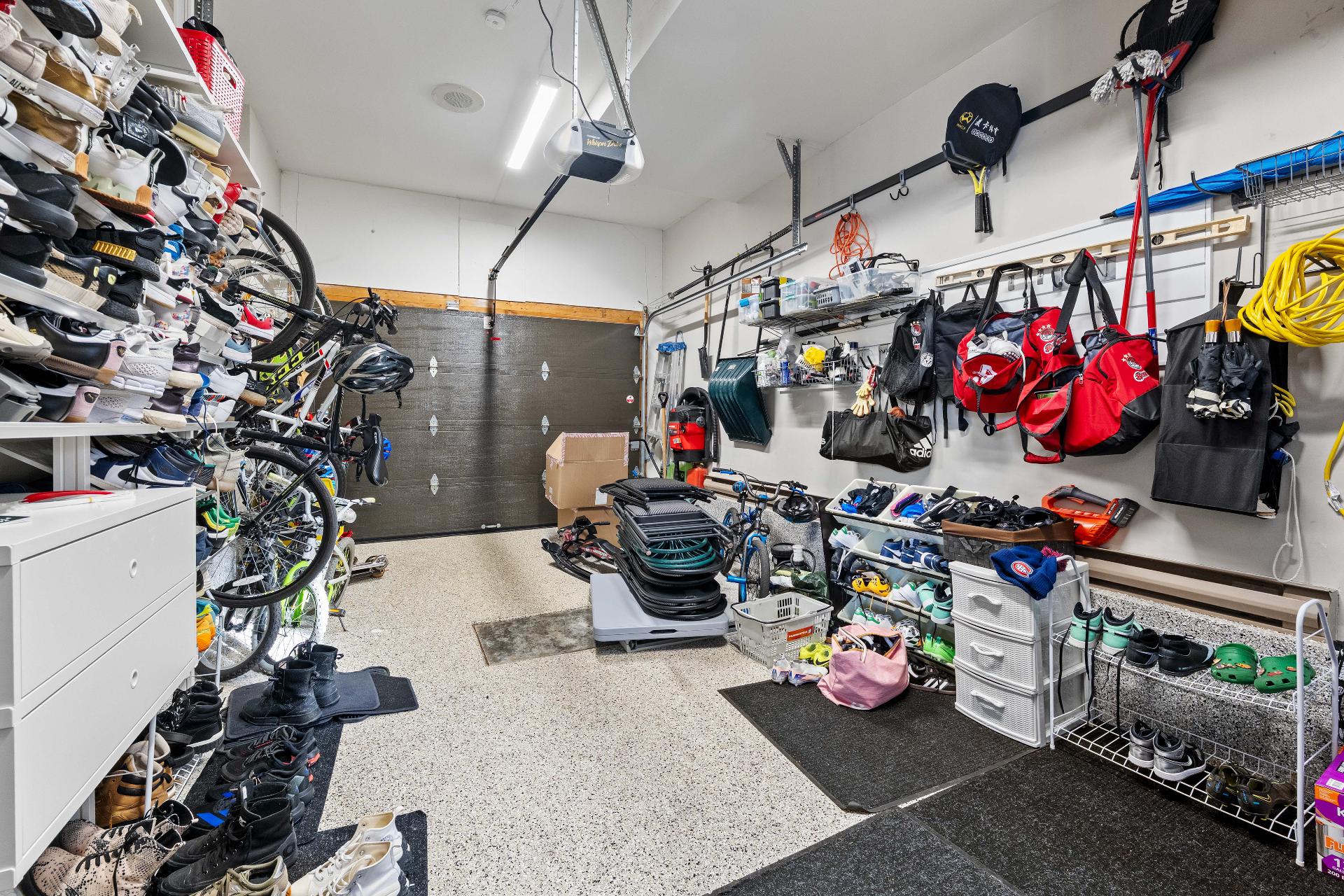 Voir plus Voir moinsTous les rideaux et tringles, système de rangement mural dans le garage, chargeur pour voiture électrique Tesla.