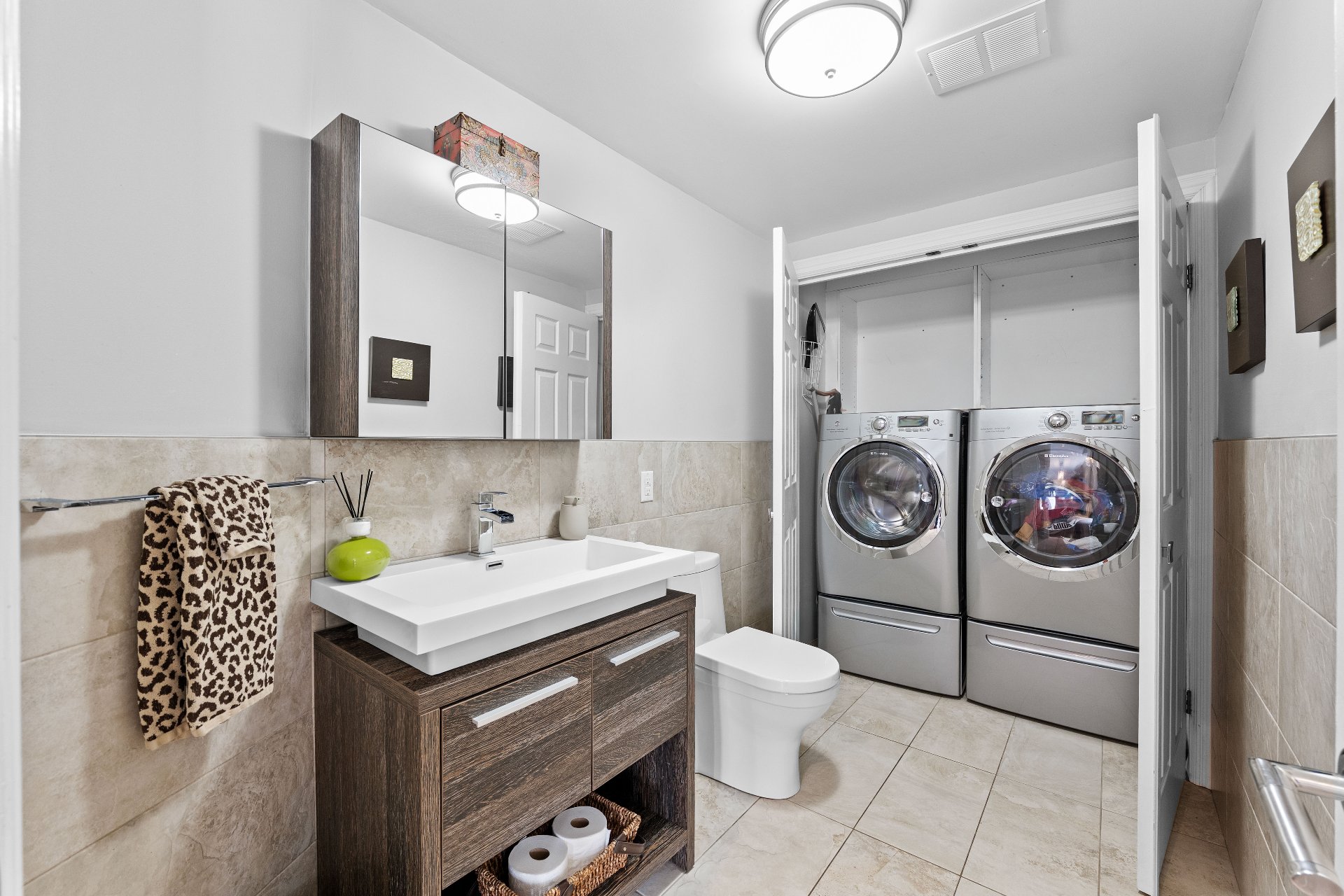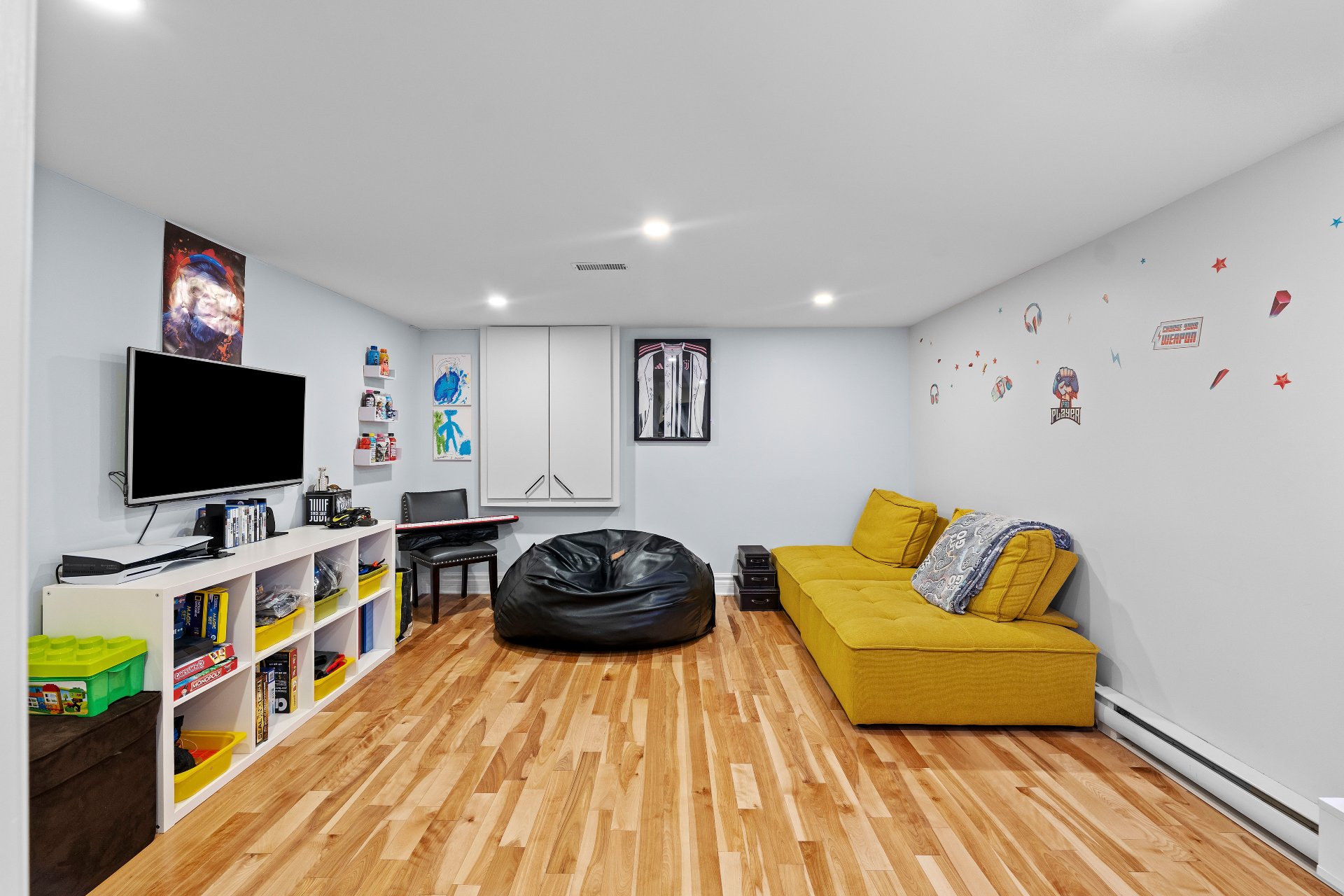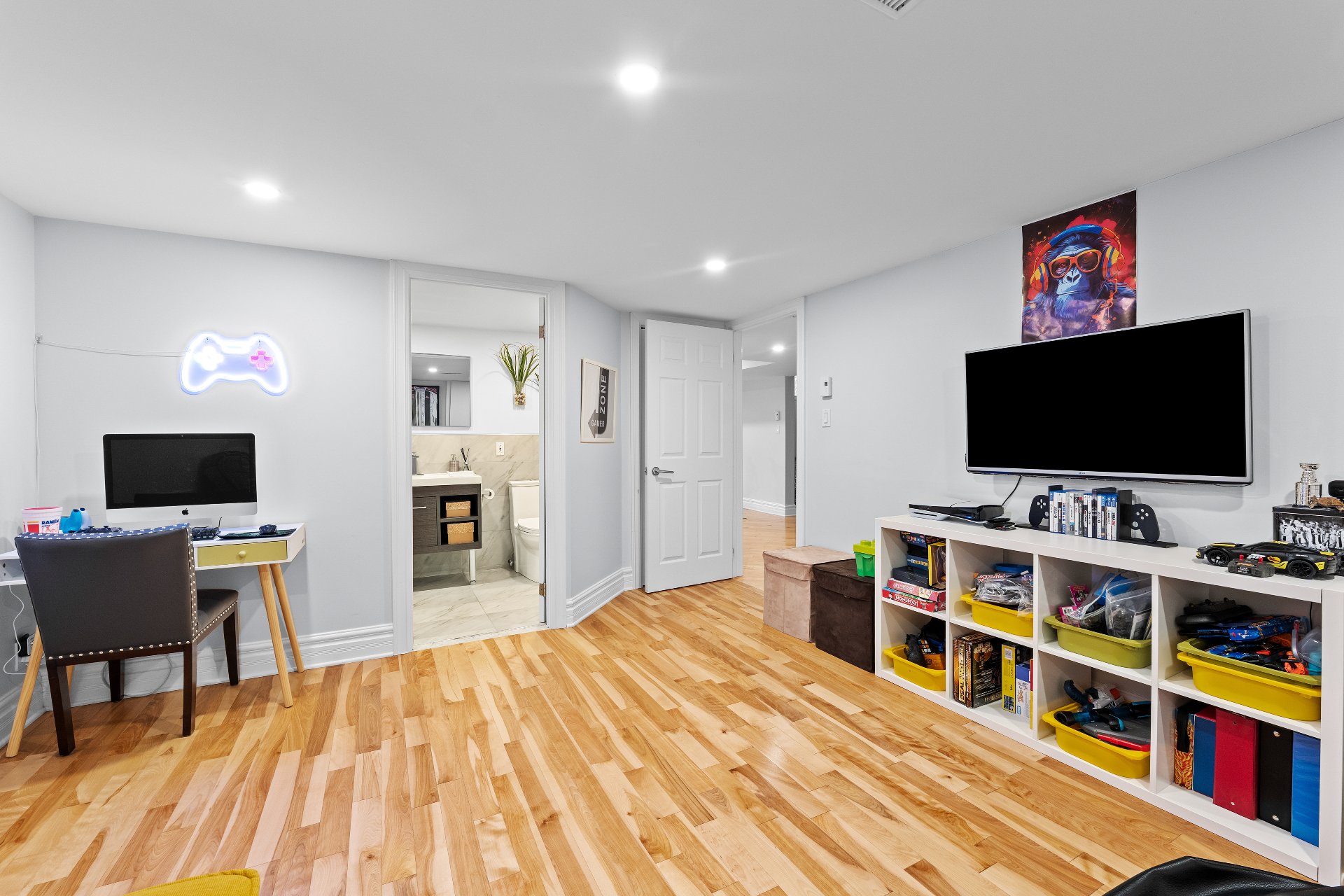 Voir plus Voir moinsTous les rideaux et tringles, système de rangement mural dans le garage, chargeur pour voiture électrique Tesla.