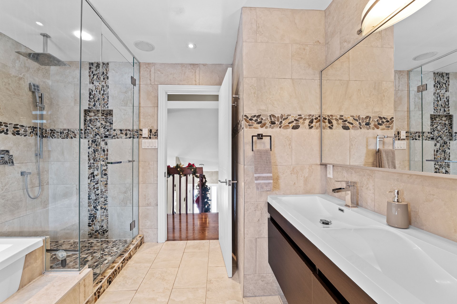 La propriété se distingue par sa cour arrière de rêve,