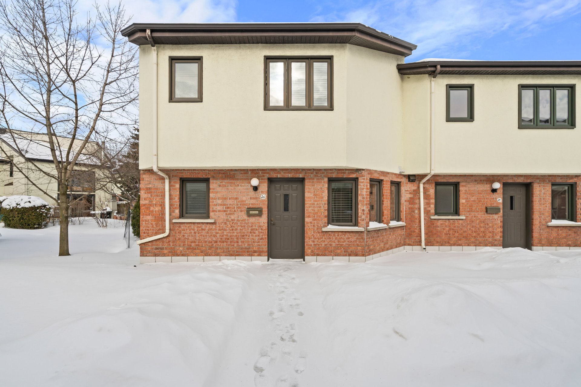 Superbe maison de ville à étages en rangée de coin et en copropriété, secteur Collectivité, positionnement tranquille en retrait de la rue, luminosité impressionnante avec fenestration surdimensionnée et plafond haut, 2 CAC avec possibilité d'en faire une 3e au sous-sol, de nombreuses rénovations de qualité dont la cuisine et la salle de bain, foyer électrique, thermopompe centrale, 2 espaces de stationnement au garage et rangements intérieur, penderie de cèdre, terrasse intime avec haies, de nombreuses inclusions, à proximité des sentiers pédestres, parc Michel-Chartrand, pistes cyclables, golf le Parcours du Cerf et transport en commun !