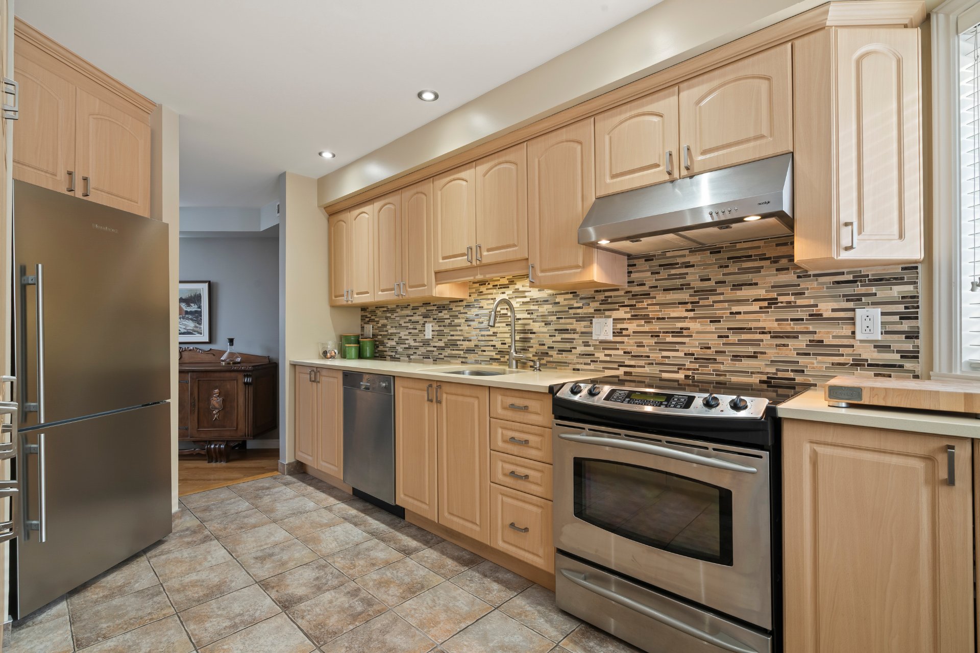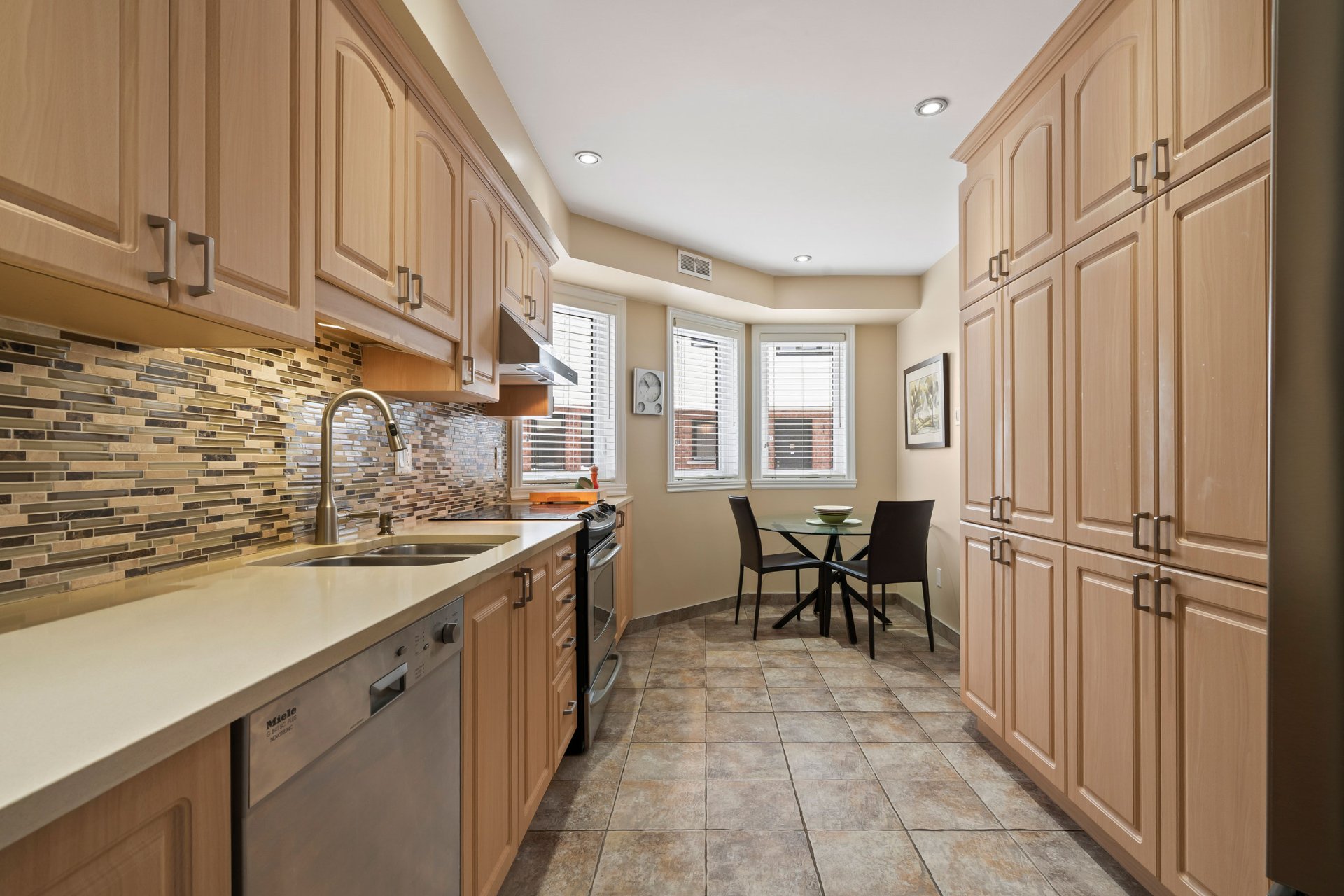 Luminaires, stores, tringles et rideaux, hotte, lave-vaisselle (Miele), cuisinière, aspirateur et accessoires, réservoir d'eau chaude, thermopompe centrale, set de patio et parasol, BBQ Napoléon, foyer électrique Napo...