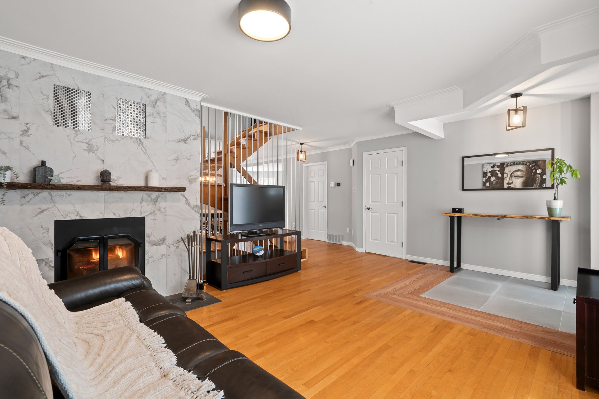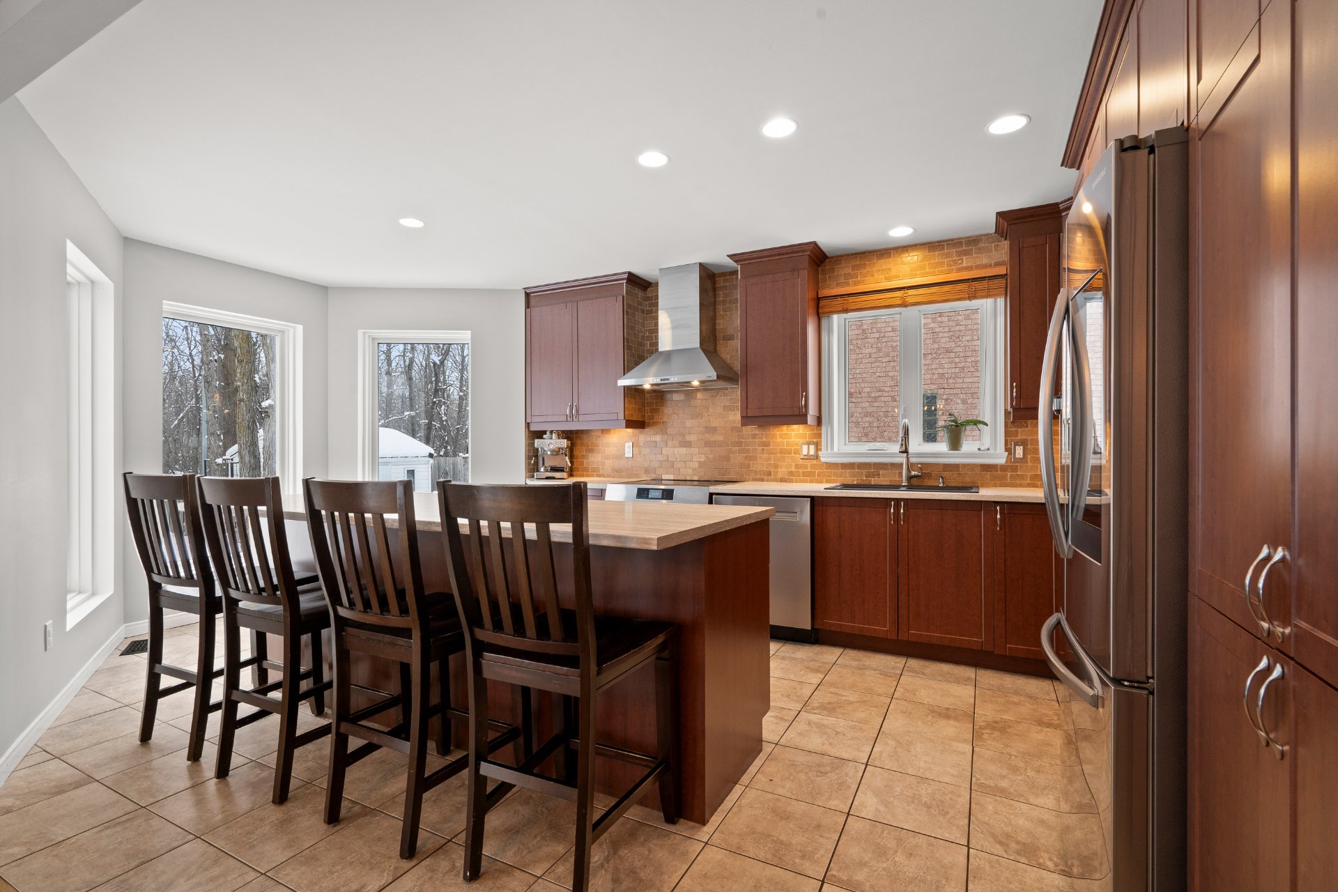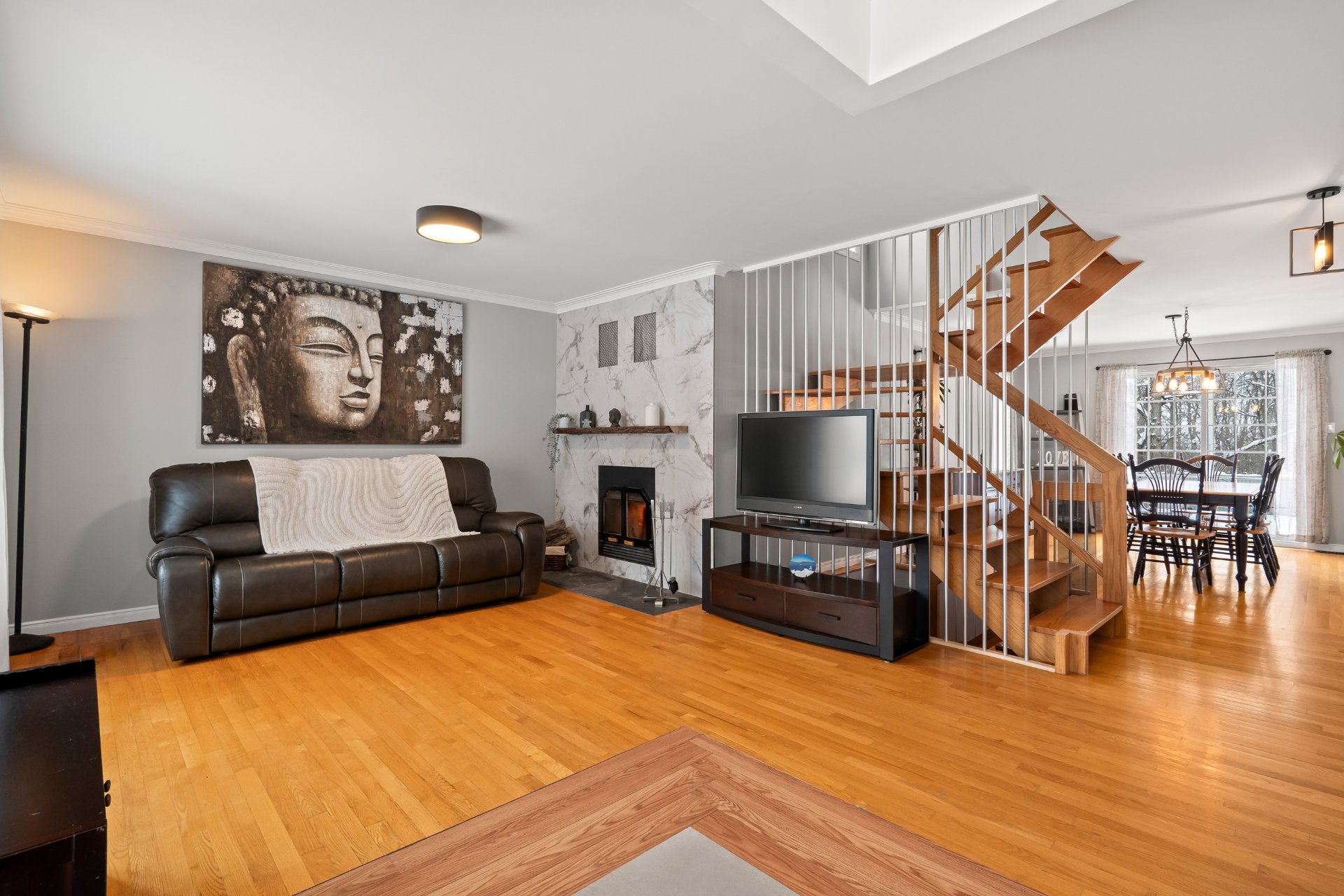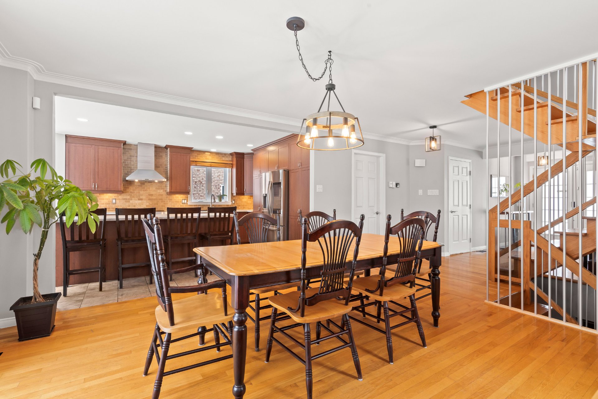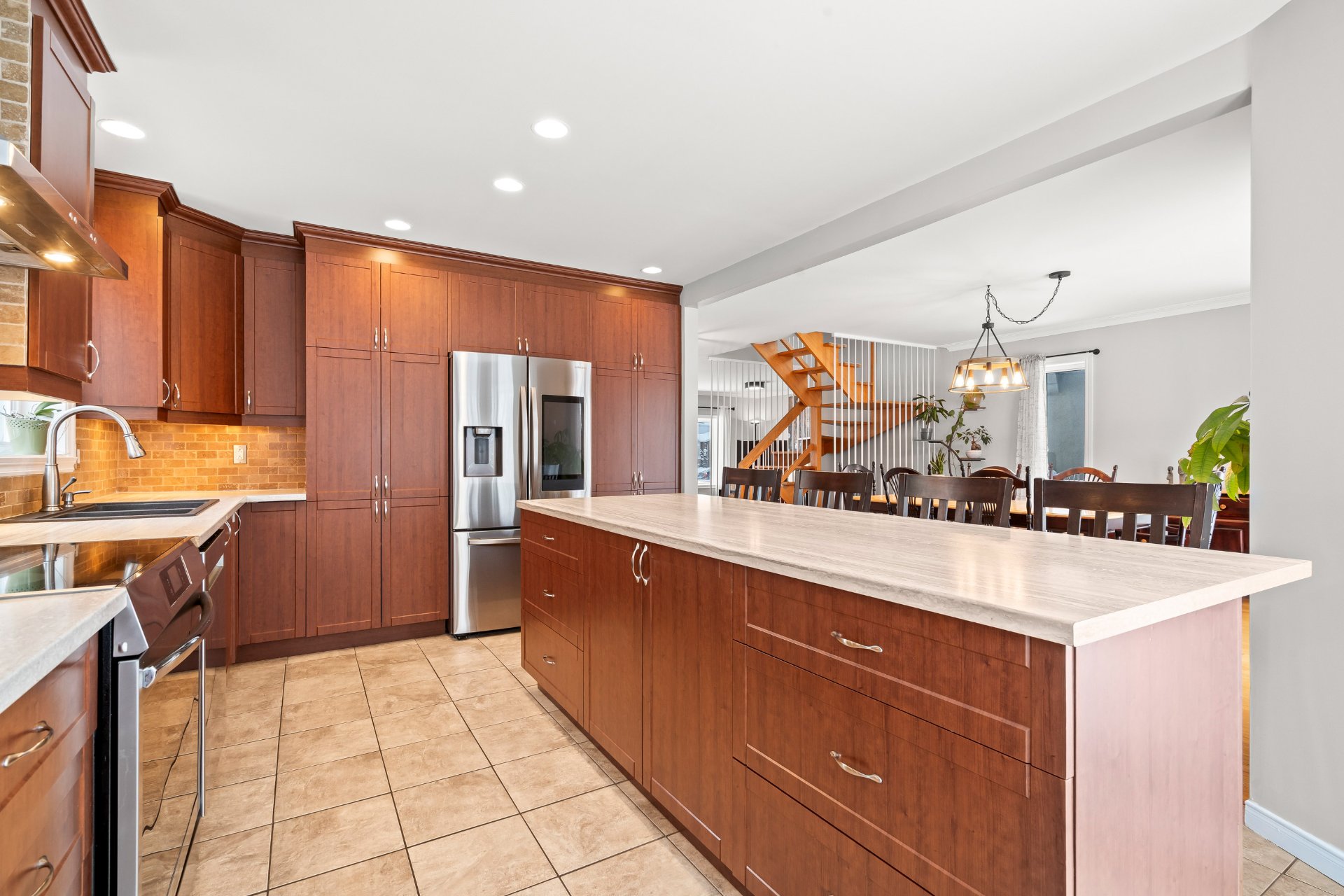 Dans le secteur recherché de Bellerive et sans voisin arrière, très belle et spacieuse maison, luminosité exceptionnelle, 3+1 CAC, 2+2 SDB dont une avec bain tourbillon et l'autre rénovée, pièces de grande dimension très aérées, chambre principale avec salle d'eau privée et walk-in, thermopompe centrale, foyer au bois, toiture 2023, garage, 5 espaces de stationnement ext., terrasse en bois, sous-sol entièrement aménagé avec sauna, cour intime adossée au sentier boisé, quartier très tranquille et familial, à proximité de plusieurs parcs dont Maple et Bellerive, écoles, garderies avec un accès rapide aux autoroutes et au transport public!