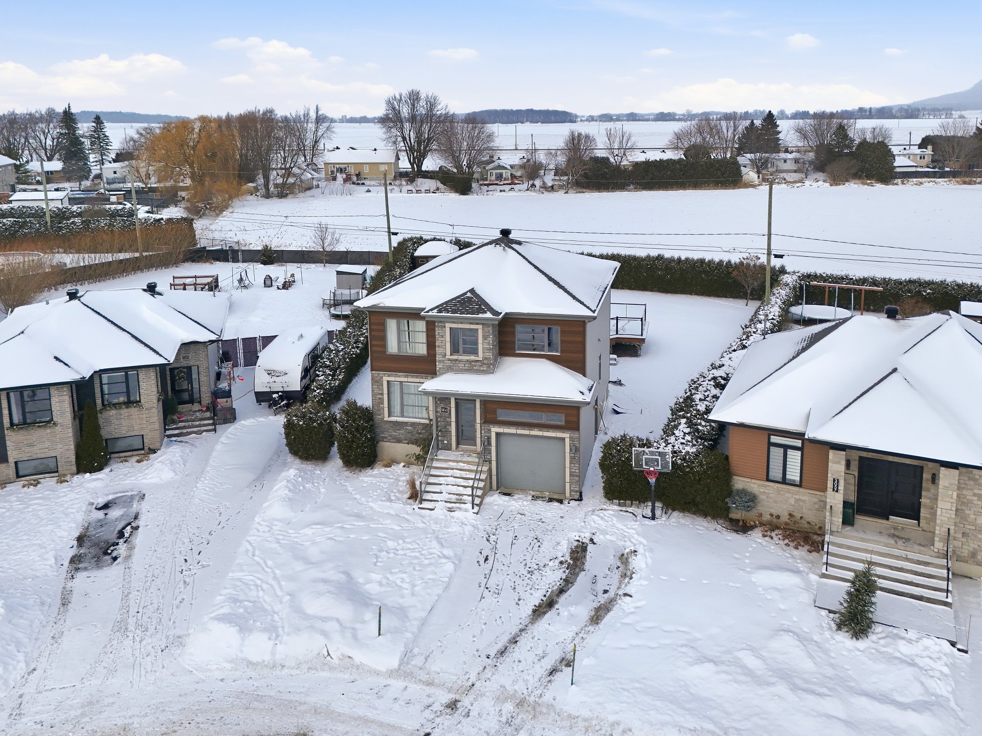 Magnifique propriété située dans un secteur recherché de Marieville, sur un vaste terrain de 14 433 pi² sans voisin arrière. Idéale pour la vie familiale, elle offre 4 chambres à coucher, 2 salles de bains, une salle d'eau ainsi qu'un sous-sol entièrement aménagé, également doté de planchers chauffants. La cour arrière intime, bordée de haies, propose une grande terrasse et une piscine hors terre chauffée. Une propriété clé en main à ne pas manquer.