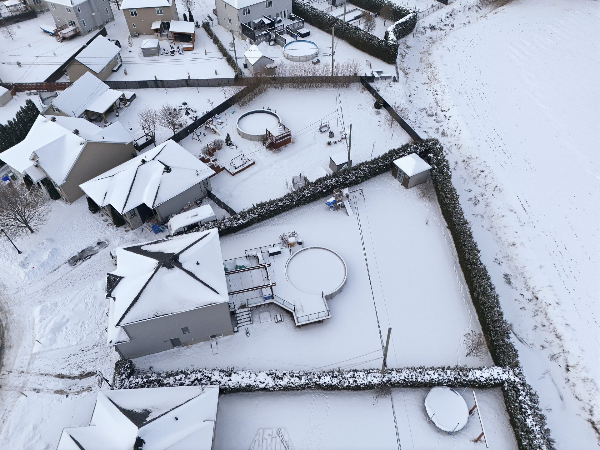 Terrain/cour bordé de haies, Clôturé
