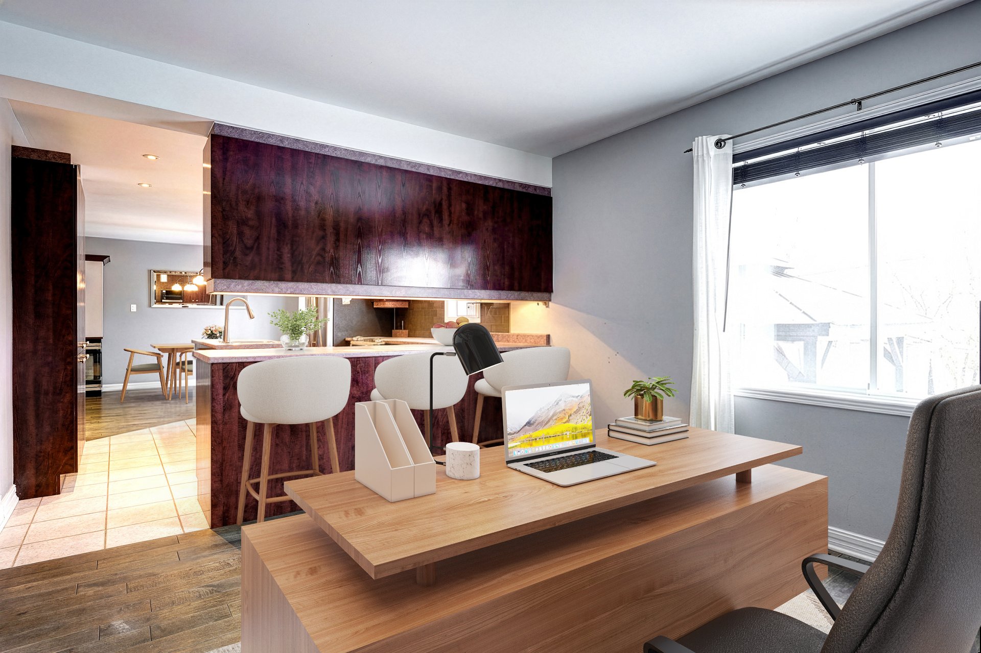 offre beaucoup de rangement et s'ouvre sur un coin bureau