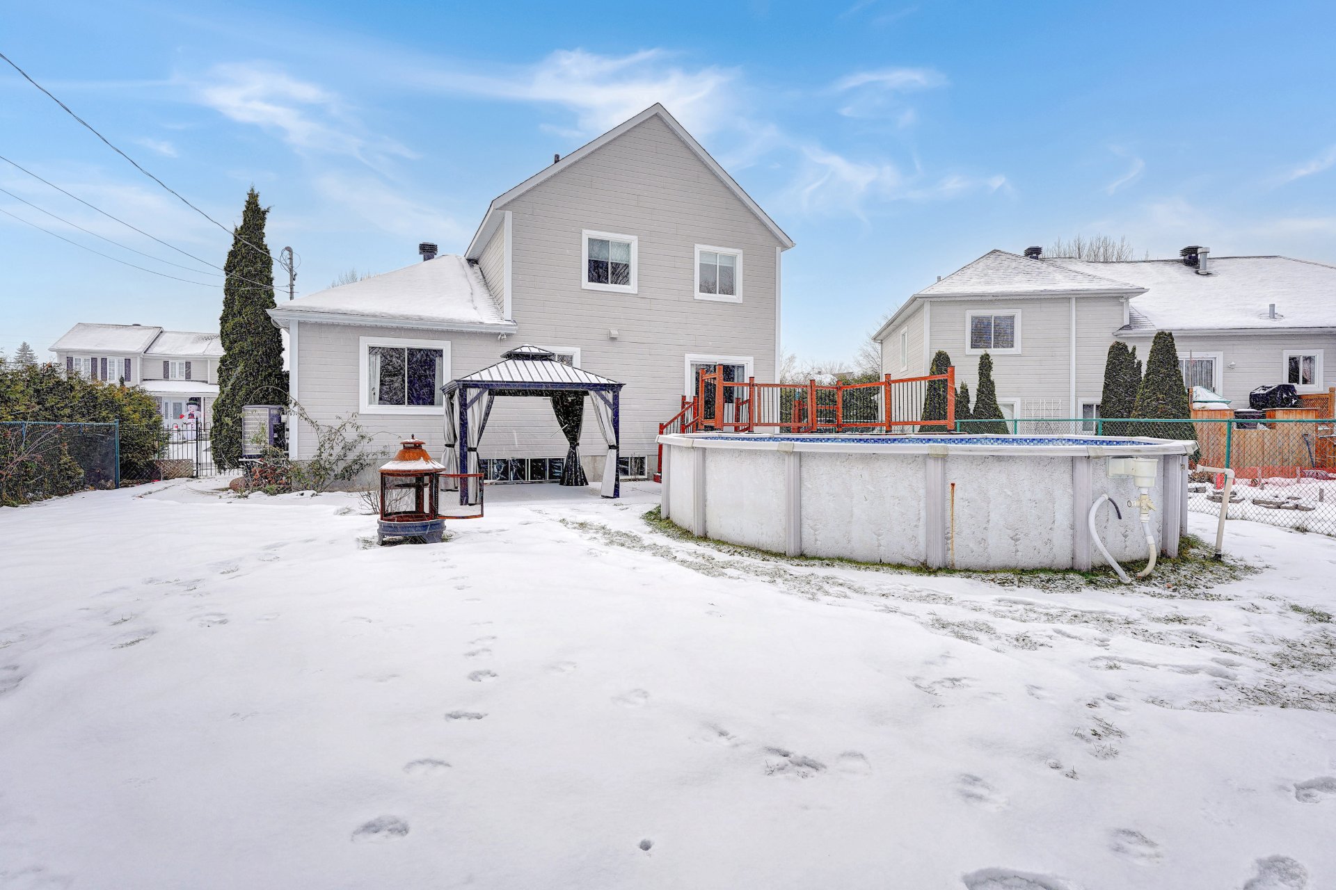 Charmante maison à étages située dans un secteur recherché de Mascouche, à proximité de tous les services. Elle offre un rez-de-chaussée lumineux avec un salon accueillant et un foyer au gaz, une cuisine fonctionnelle avec beaucoup de rangement et un coin bureau ou salle de jeux attenant. L'étage comprend trois chambres confortables et une salle de bain complète, tandis que le sous-sol offre une quatrième chambre ainsi qu'une salle de bain avec espace lavage. Une salle d'eau pratique se trouve au rez-de-chaussée. Profitez de la cour arrière avec piscine hors terre, idéale pour vos moments de détente en famille.