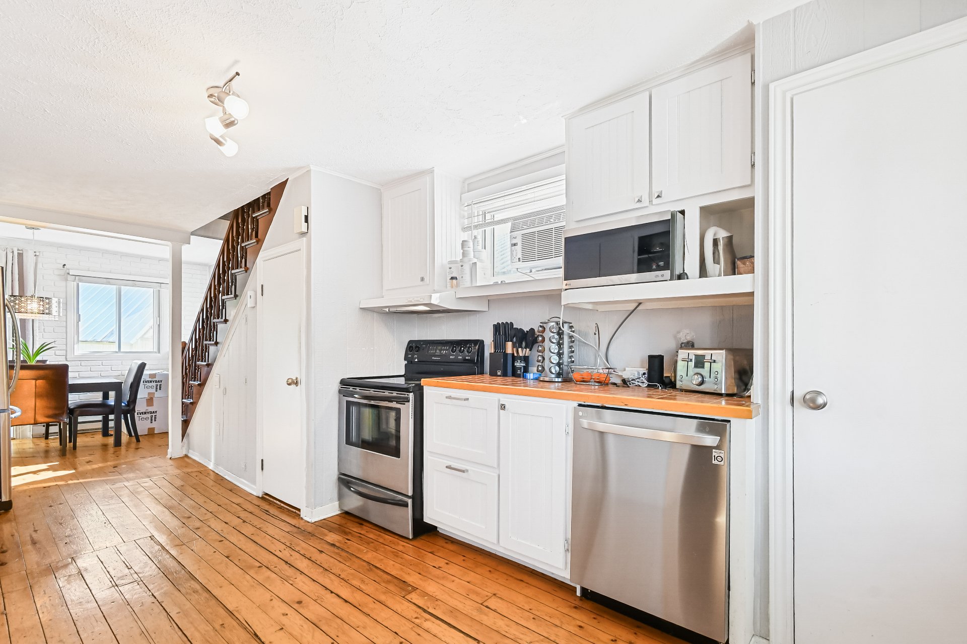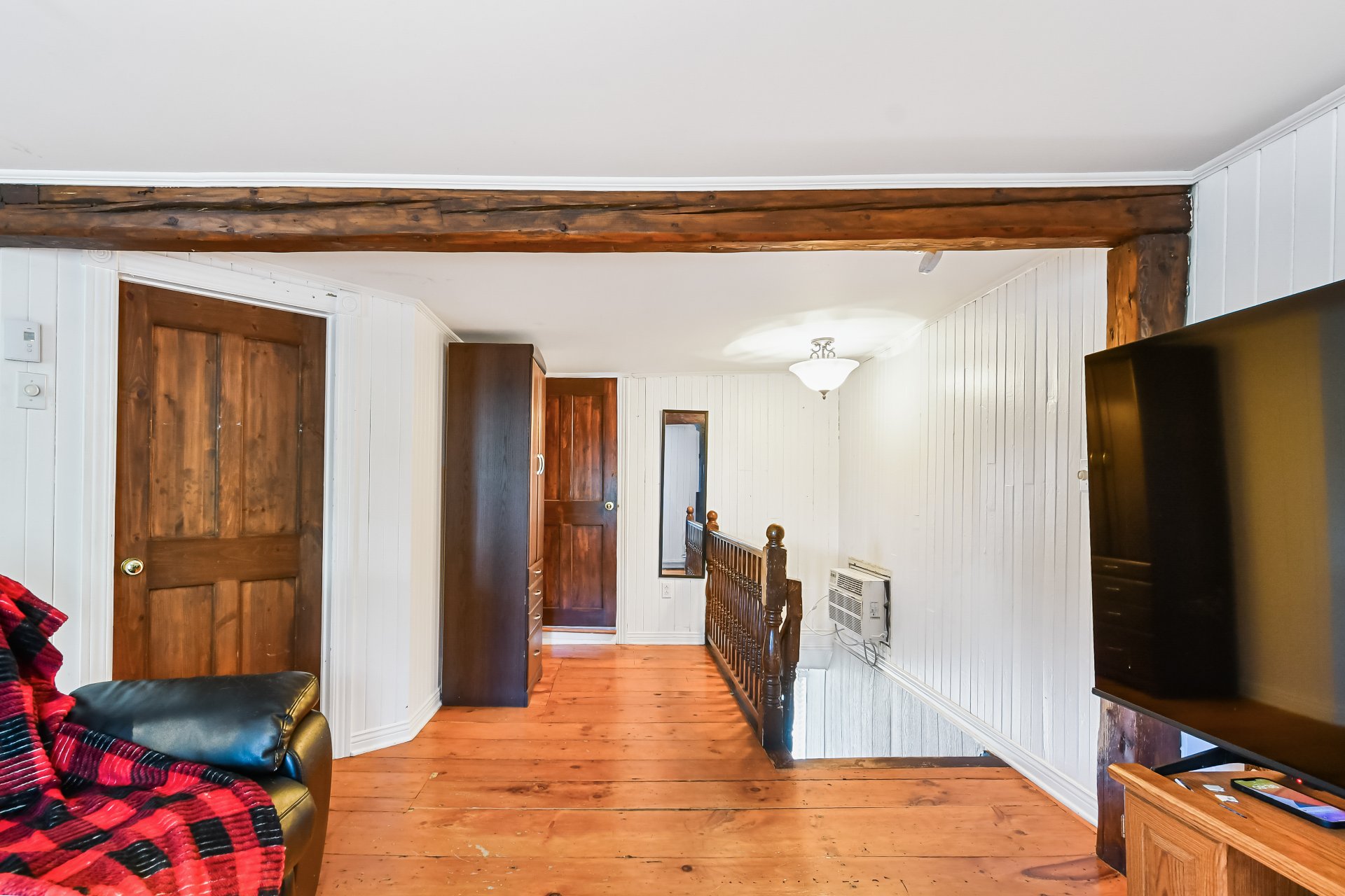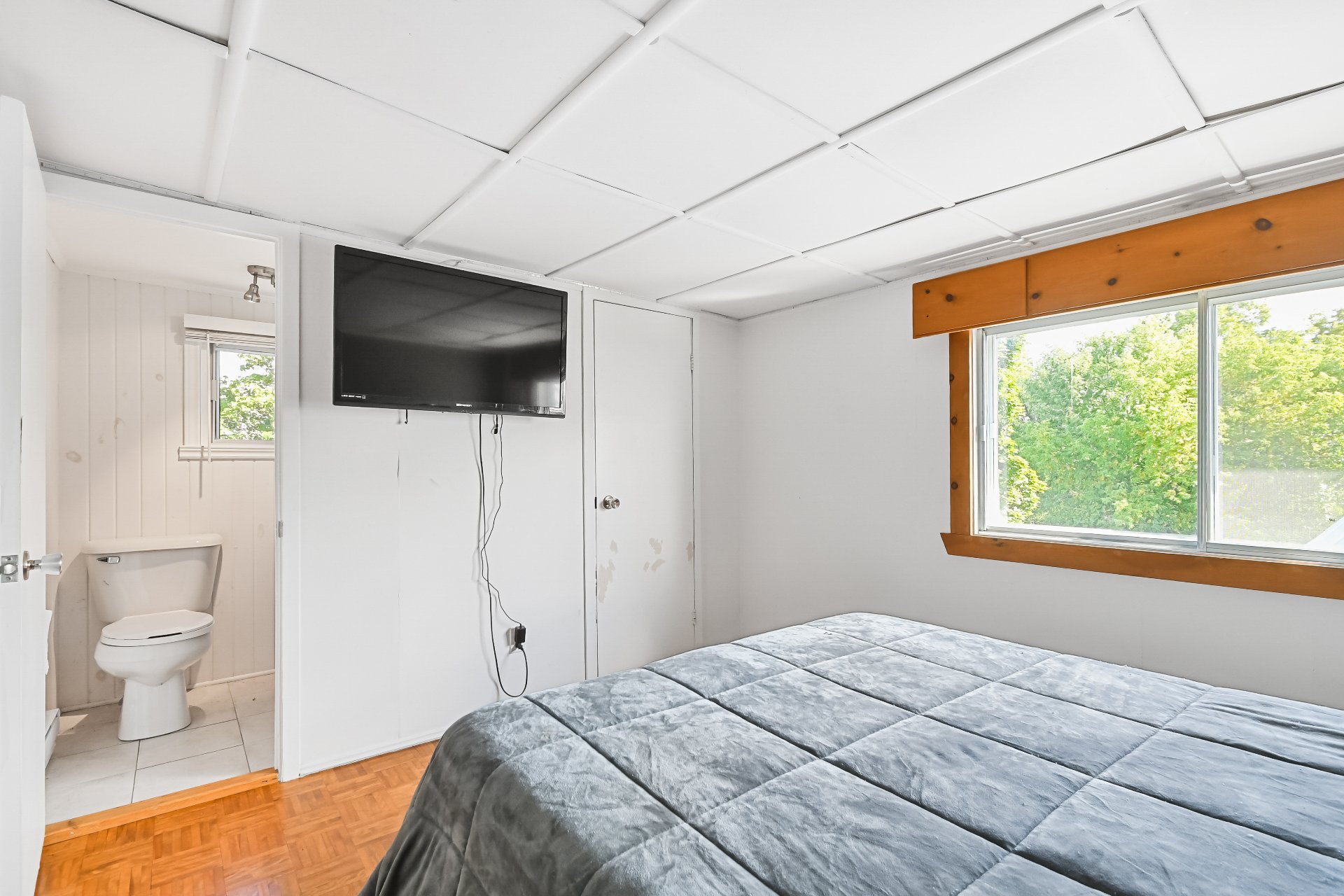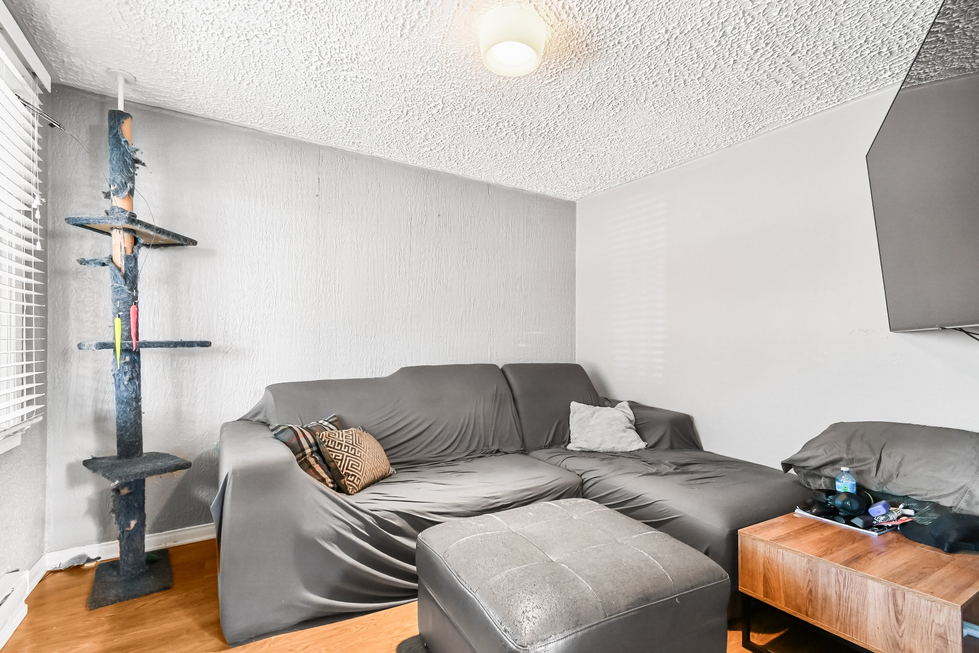 Téléviseurs aux murs et les supports, climatiseur de fenêtres et effets du locataire.