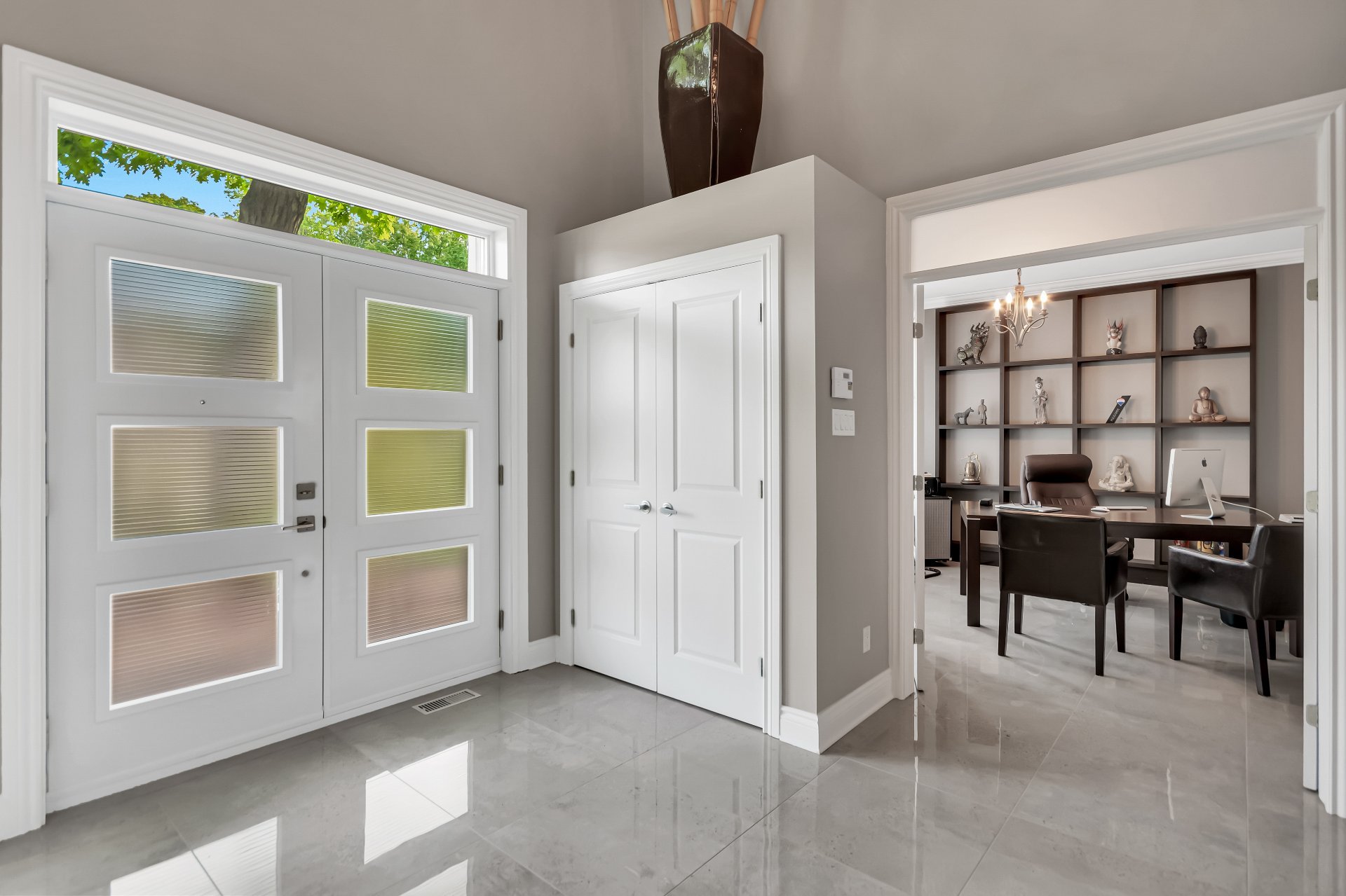 Superbe propriété de prestige construite sur un magnifique terrain de 19 425 pieds carrés situé directement sur un coin de rue avec une allée et une entrée indépendante, idéal pour un professionnelle qui désire travailler de la maison. Cette splendide demeure vous offre quatre chambres à coucher, deux salle de bain et trois salle d'eau. À noter que la chambre des maîtres est de style suite avec sa salle de bain attenante et son garde-robe walk-in. Cuisine moderne fraichement rénovée avec armoires en acrylique, un grand ilot central et des comptoirs de quartz. Salon avec foyer au bois et salle familiale avec fenestration abondante.