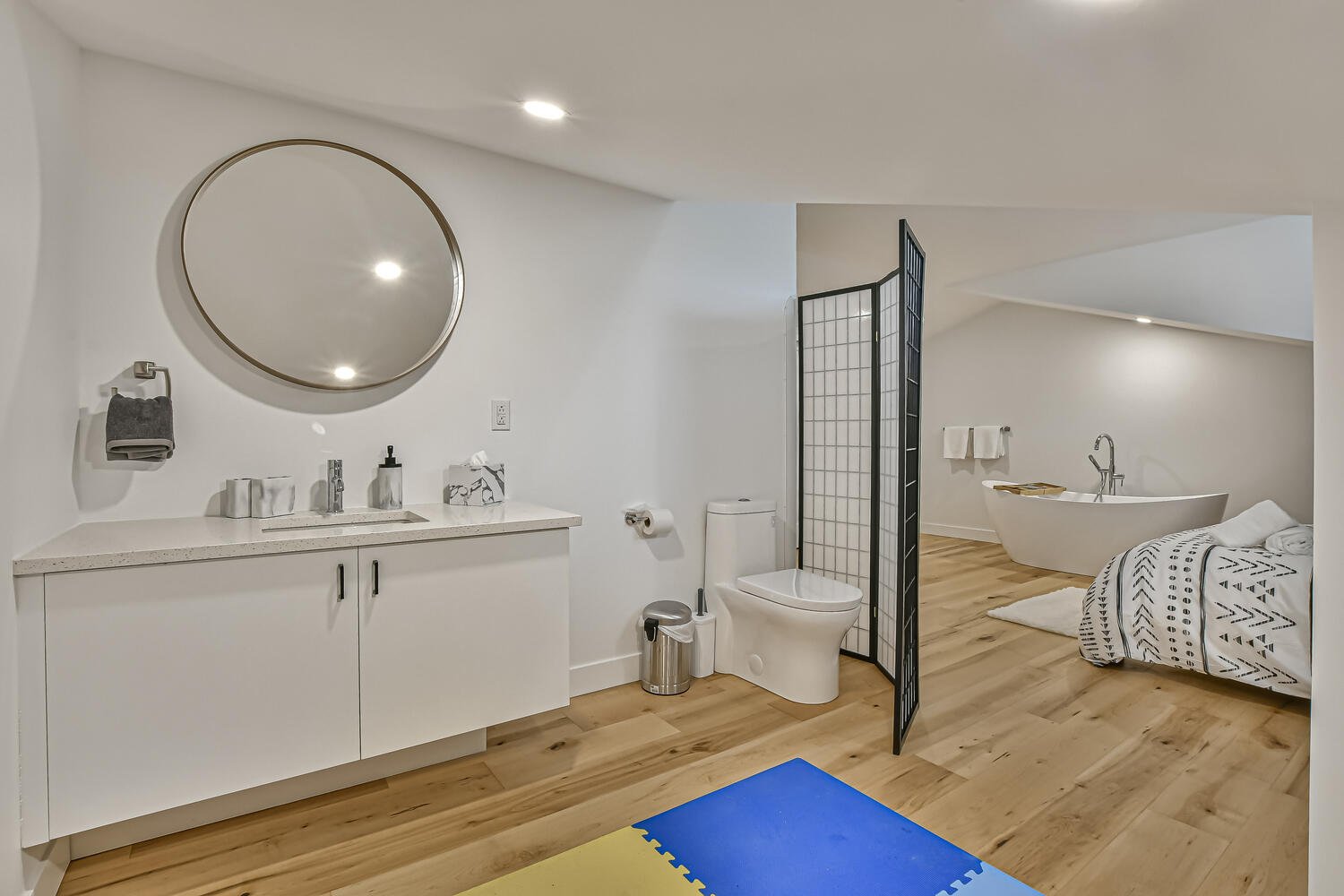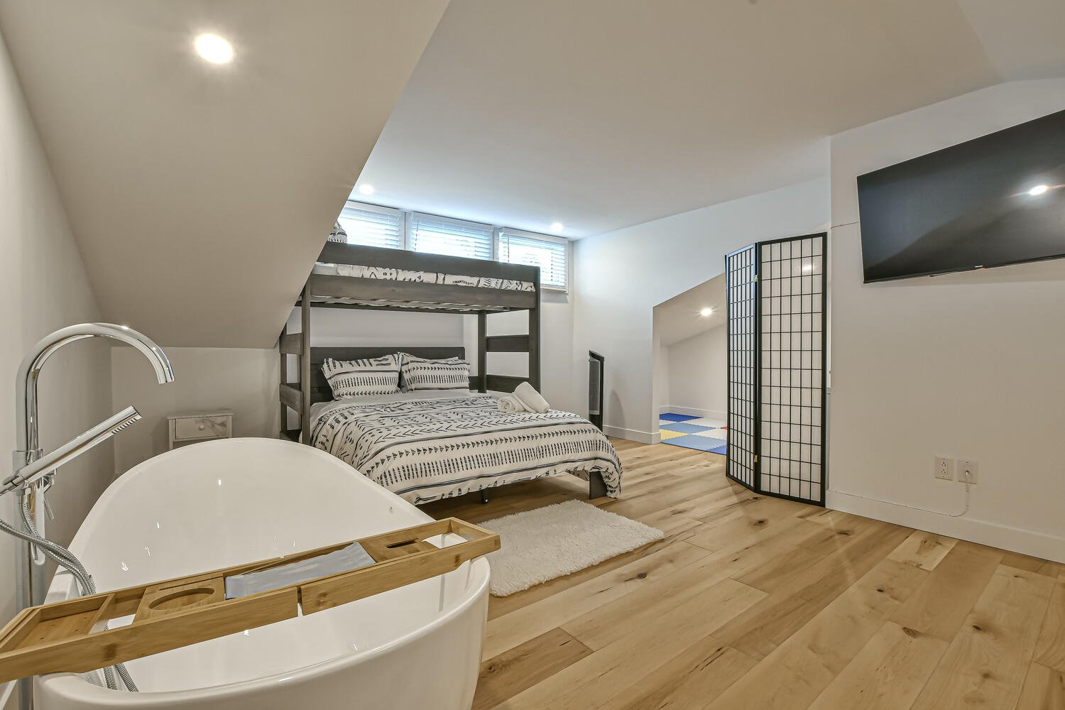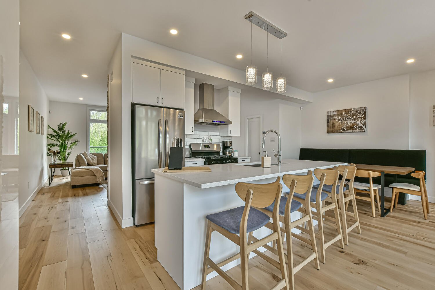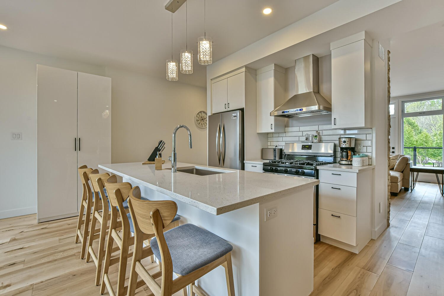 NOUVELLE CONSTRUCTION - Nichée en plein coeur du Vieux Village de Tremblant, cette propriété élégamment meublée et entièrement équipée offre une expérience de vie exceptionnelle. Imprégnez-vous des environs animés avec le Lac Mercier, des pistes cyclables pittoresques, des cafés charmants, de délicieux restaurants, et une patinoire à proximité. Profitez de la commodité d'un service de bus gratuit toute l'année. Chacune des 3 chambres dispose d'une salle de bain privée, et les espaces communs spacieux sont parfaits pour recevoir. Appréciez des conforts supplémentaires tels qu'un garage, trois balcons, et un chaleureux foyer au gaz.