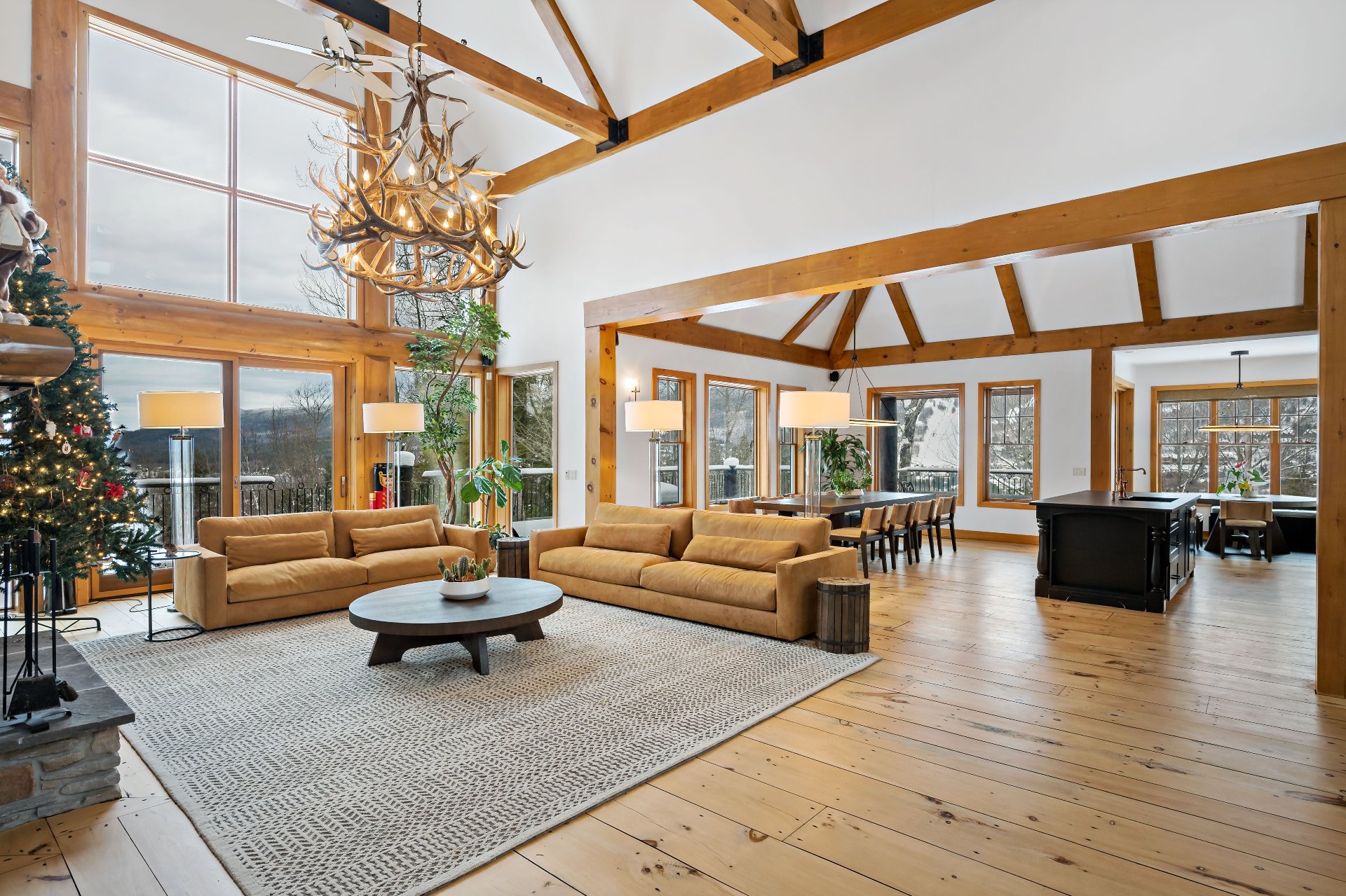 Les vastes fenêtres du salon offrent des vues panoramiques