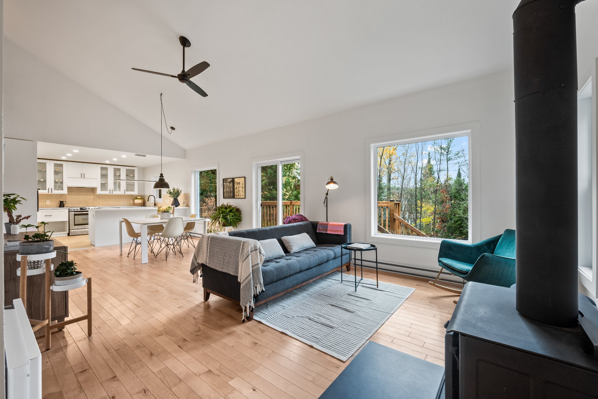 Superbe maison clé-en-mains de 3+1 chambres complètement rénovée, incluant un terrain riverain au Lac Maskinongé de 15,800 pieds carrés à seulement 5 minutes de St-Jovite. Le Rez-de-chaussée est à aire ouverte et un espace bonus en mezzanine permet d'y installer une 2e salle familiale, une salle de jeu ou un bureau. Terrain plat, facile à entretenir.