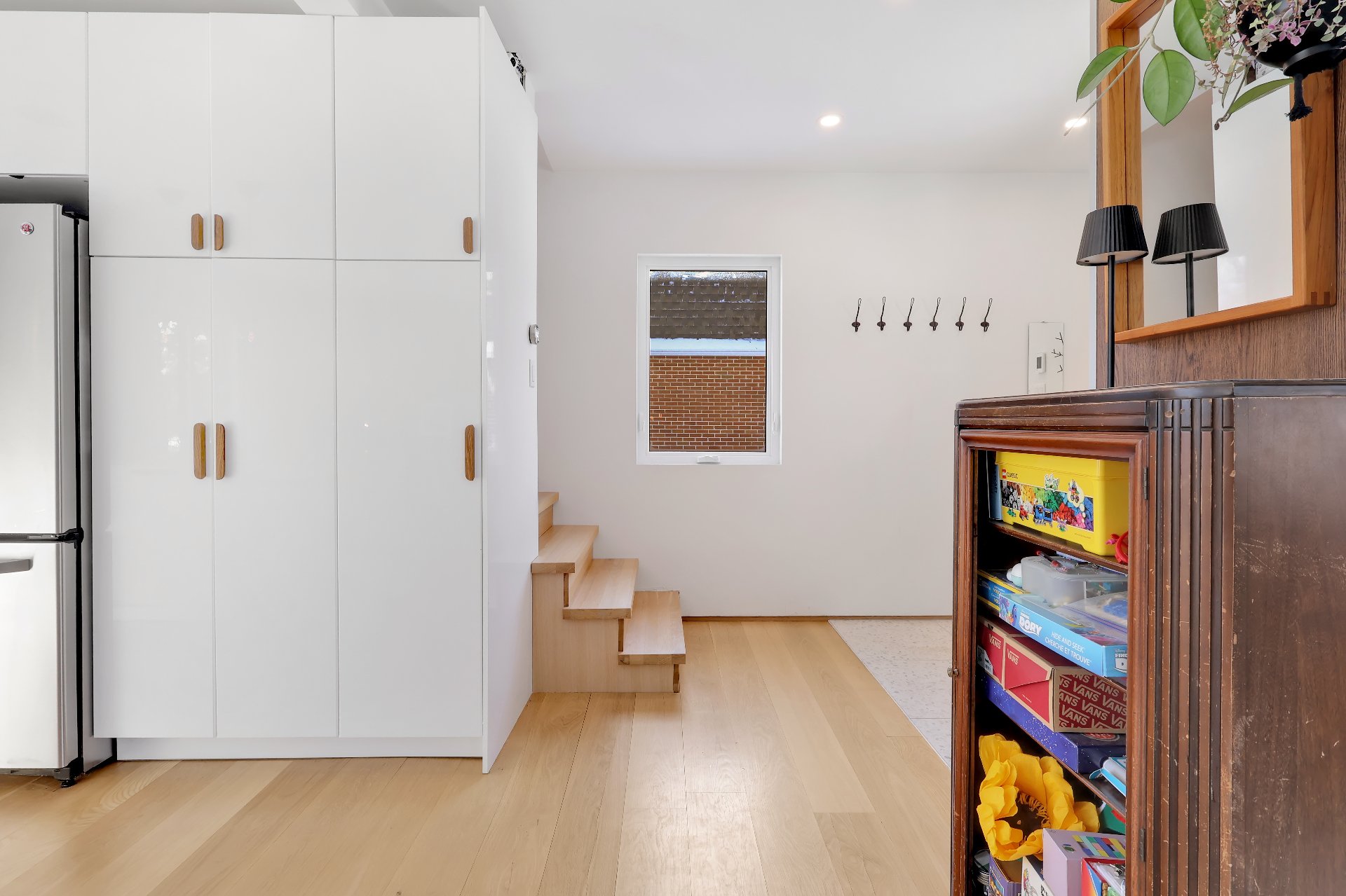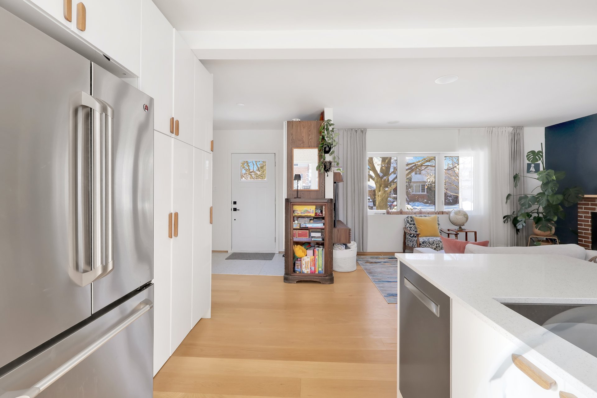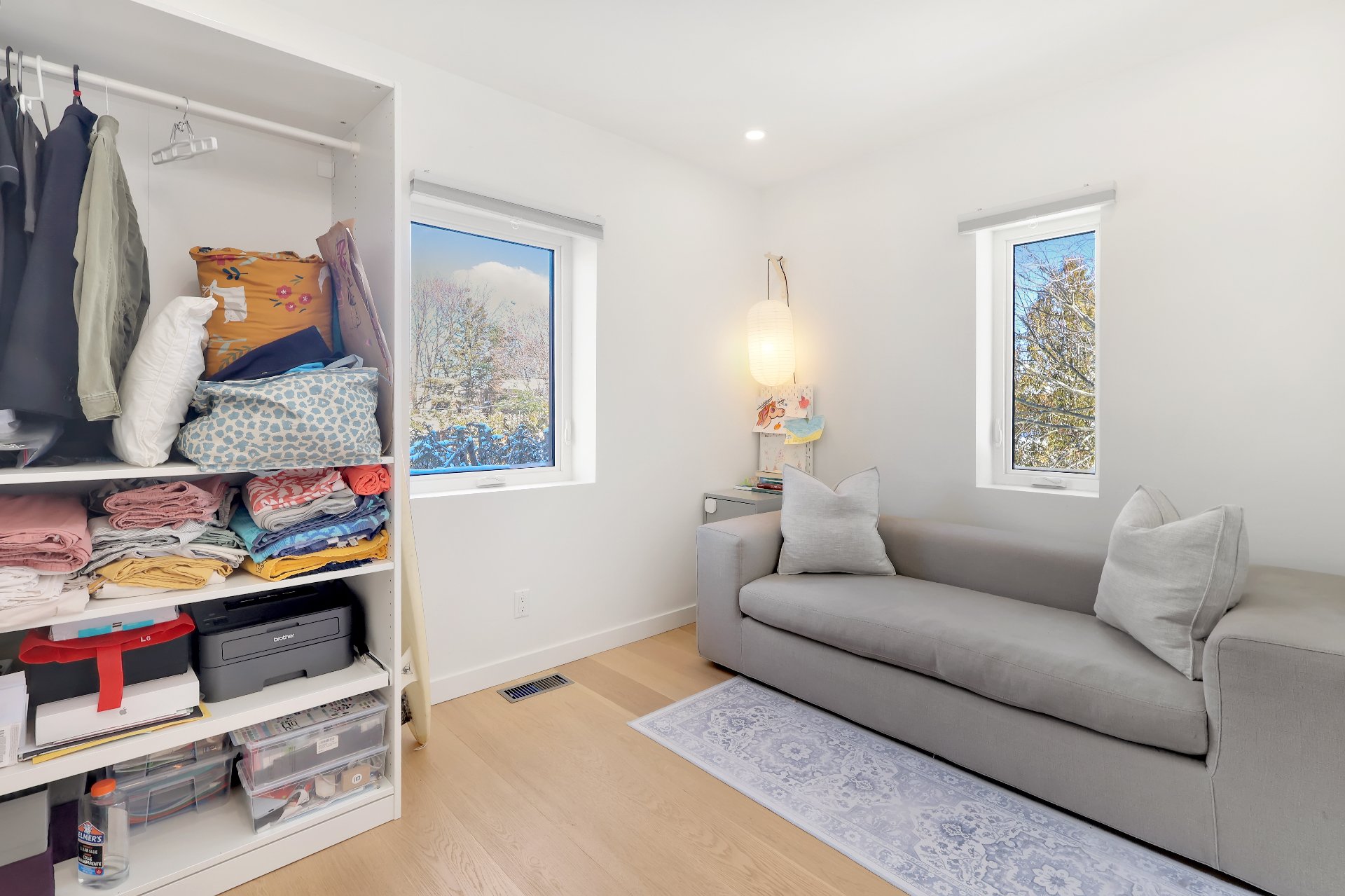 Réfrigérateur, lave-vaisselle, cuisinière au gaz, luminaires, PAX double chambre à coucher principale, chauffe-serviette salle de bain, borne VE, PAX de l'entrée, pôles et les stores, PAX (blanc) 3e chambre.