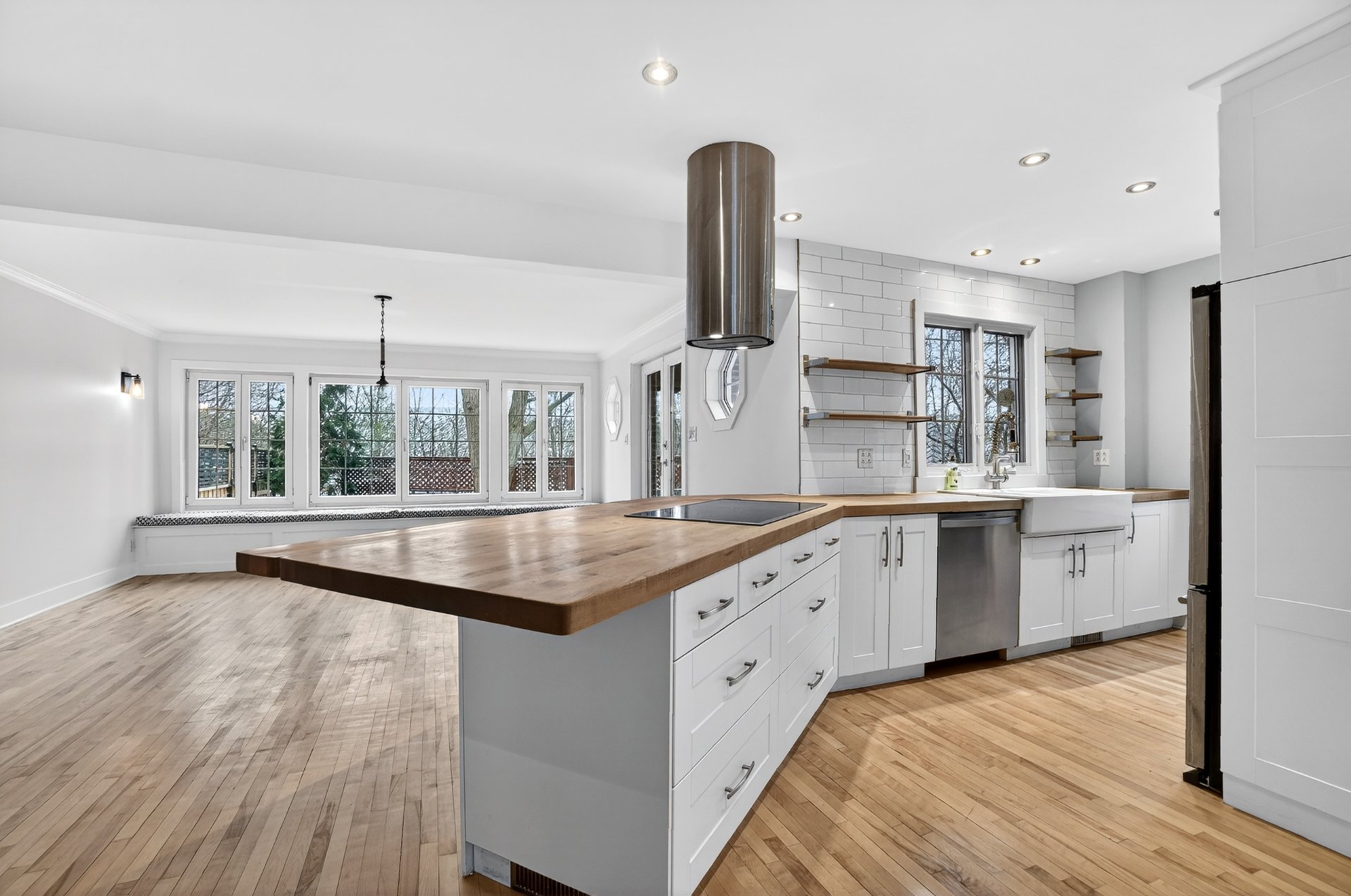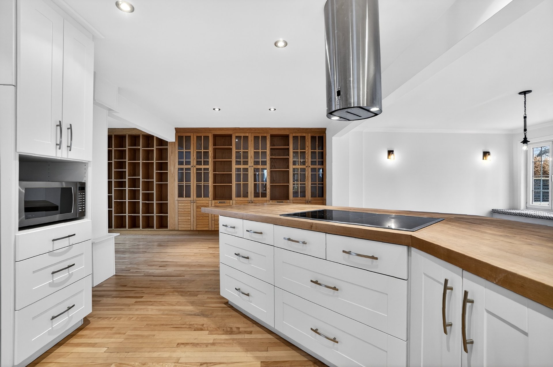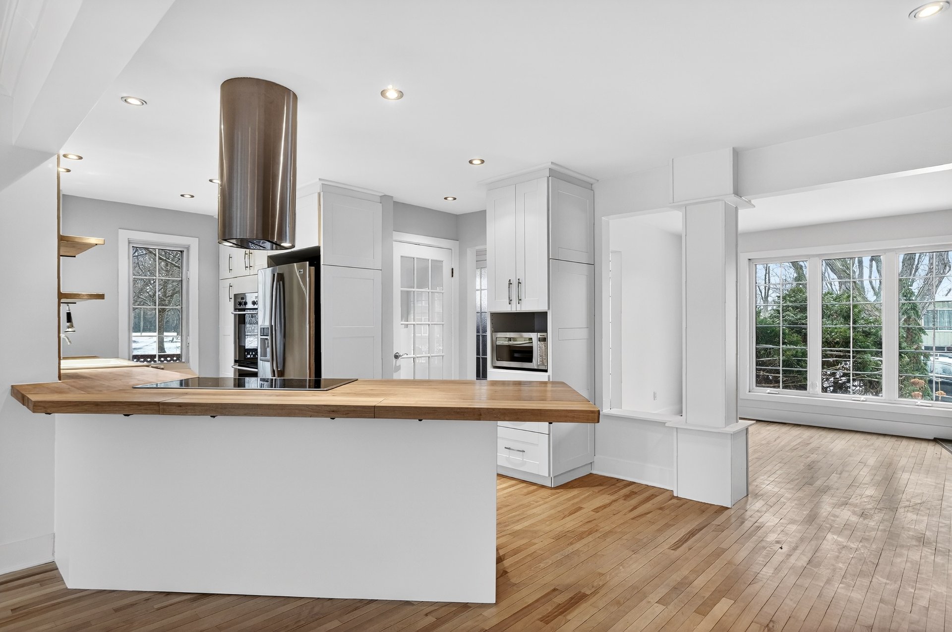 Luminaires, lave-vaisselle, deux réfrigérateurs, deux fours, plaque de cuisson, micro-ondes, laveuse et sécheuse.