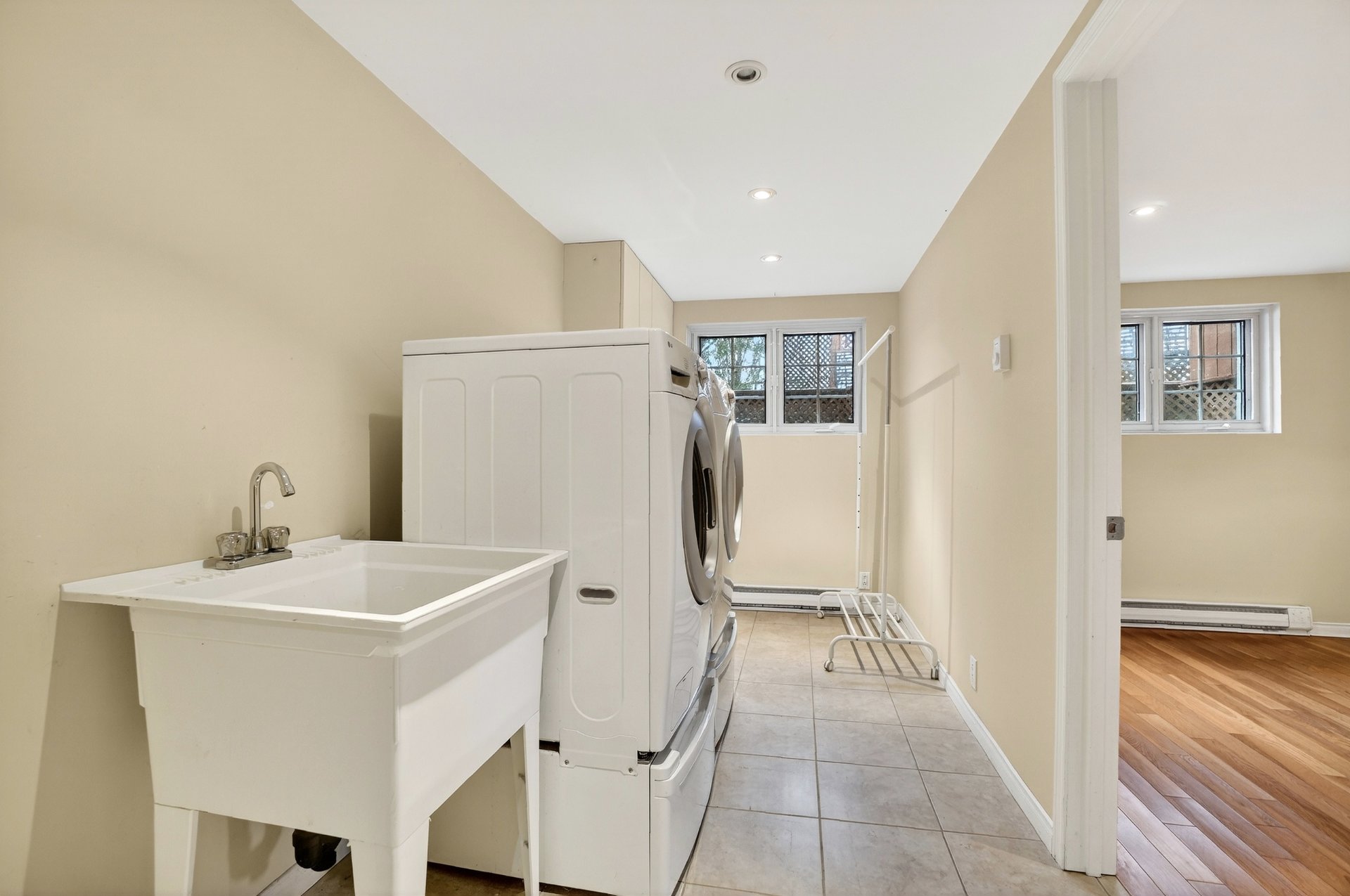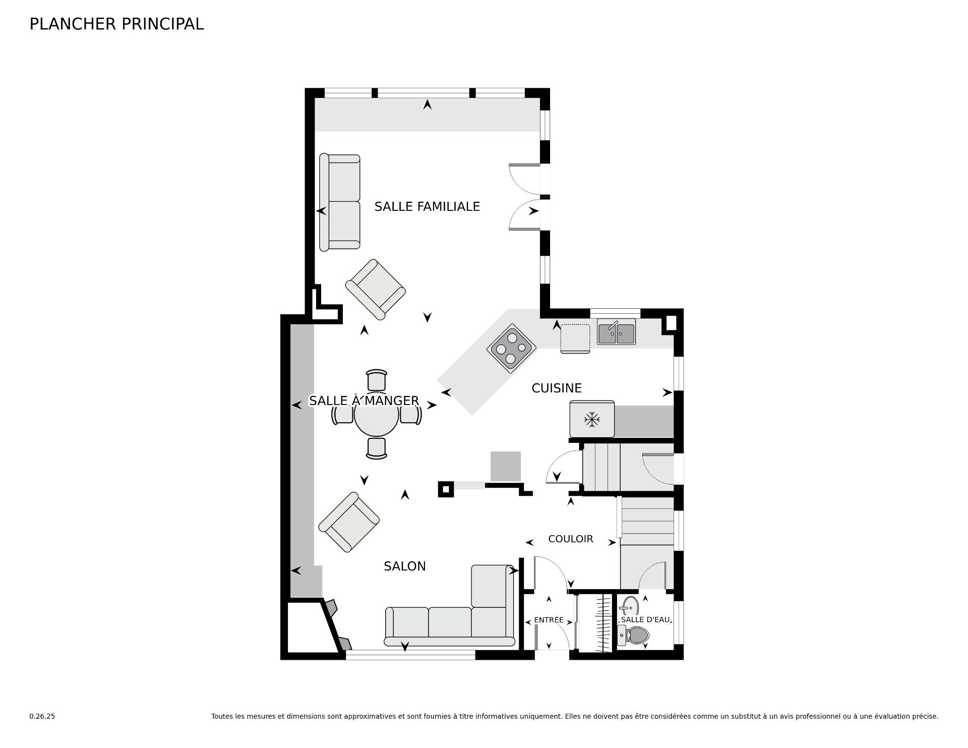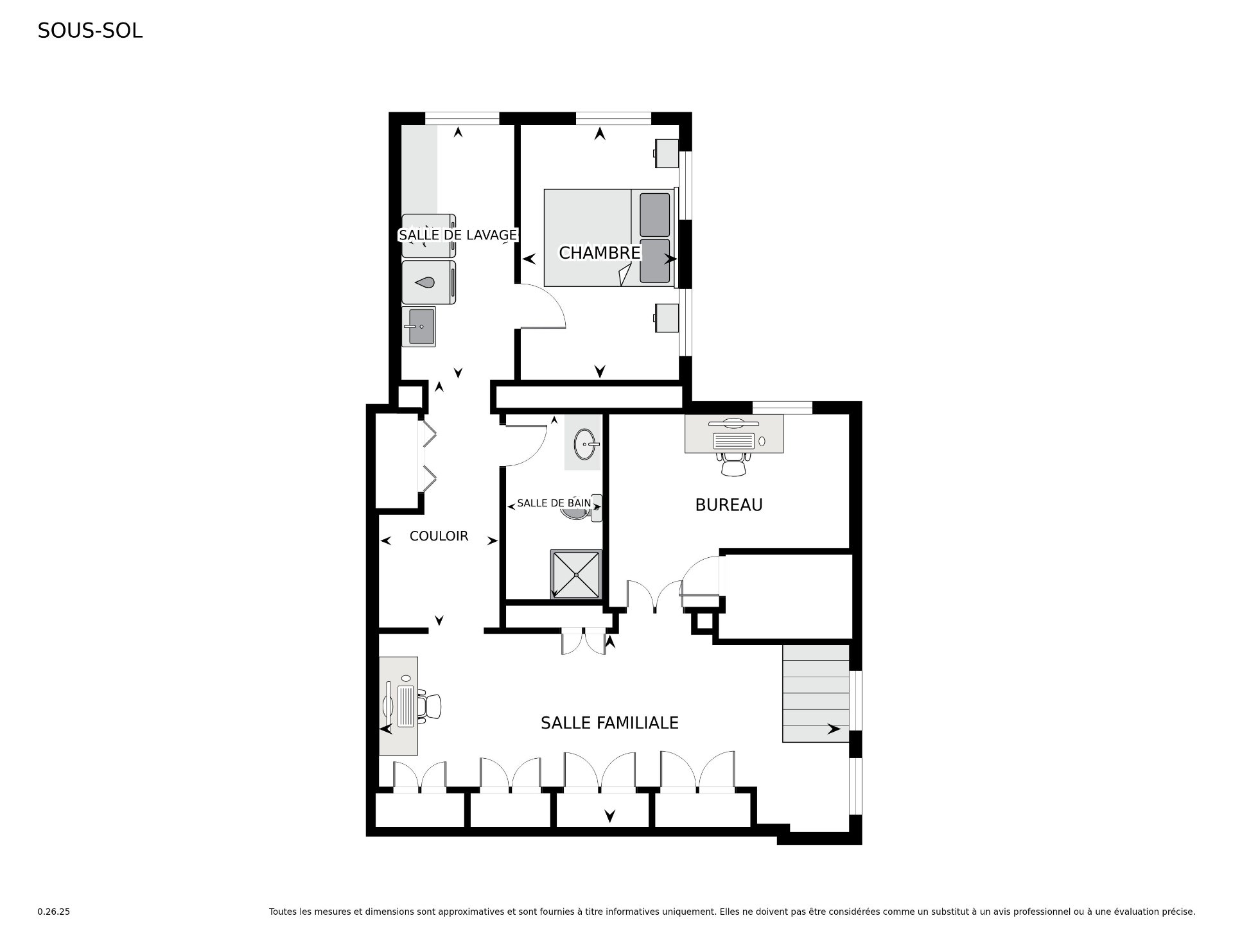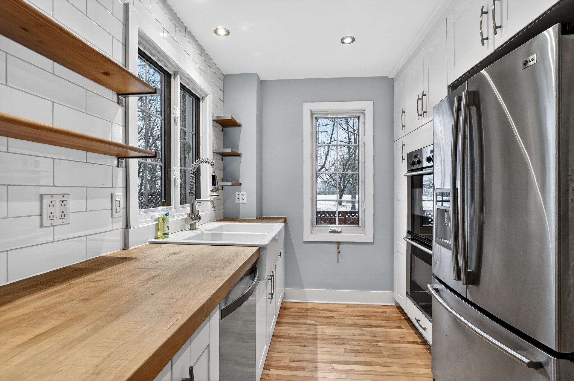Luminaires, lave-vaisselle, deux réfrigérateurs, deux fours, plaque de cuisson, micro-ondes, laveuse et sécheuse.
