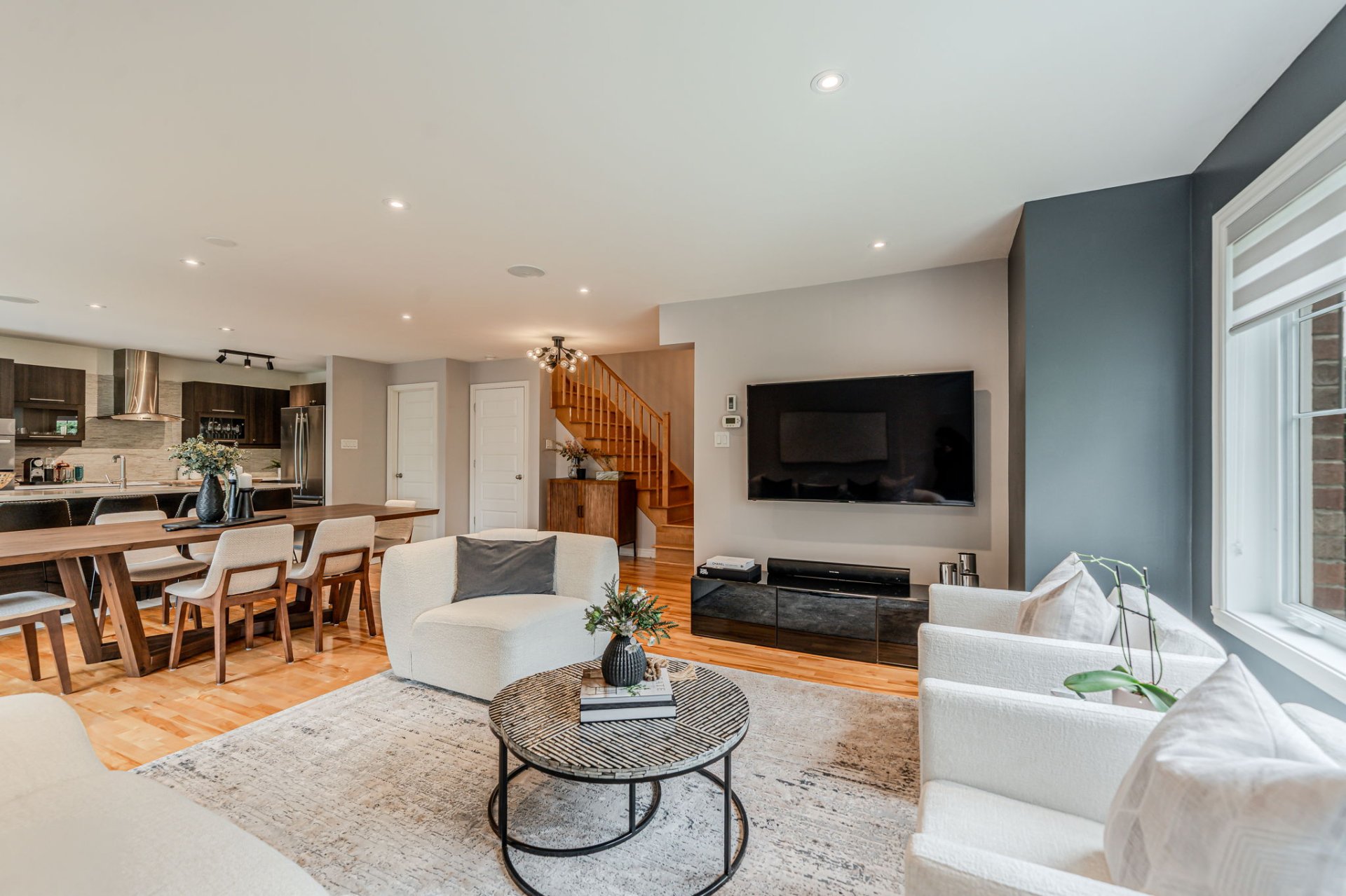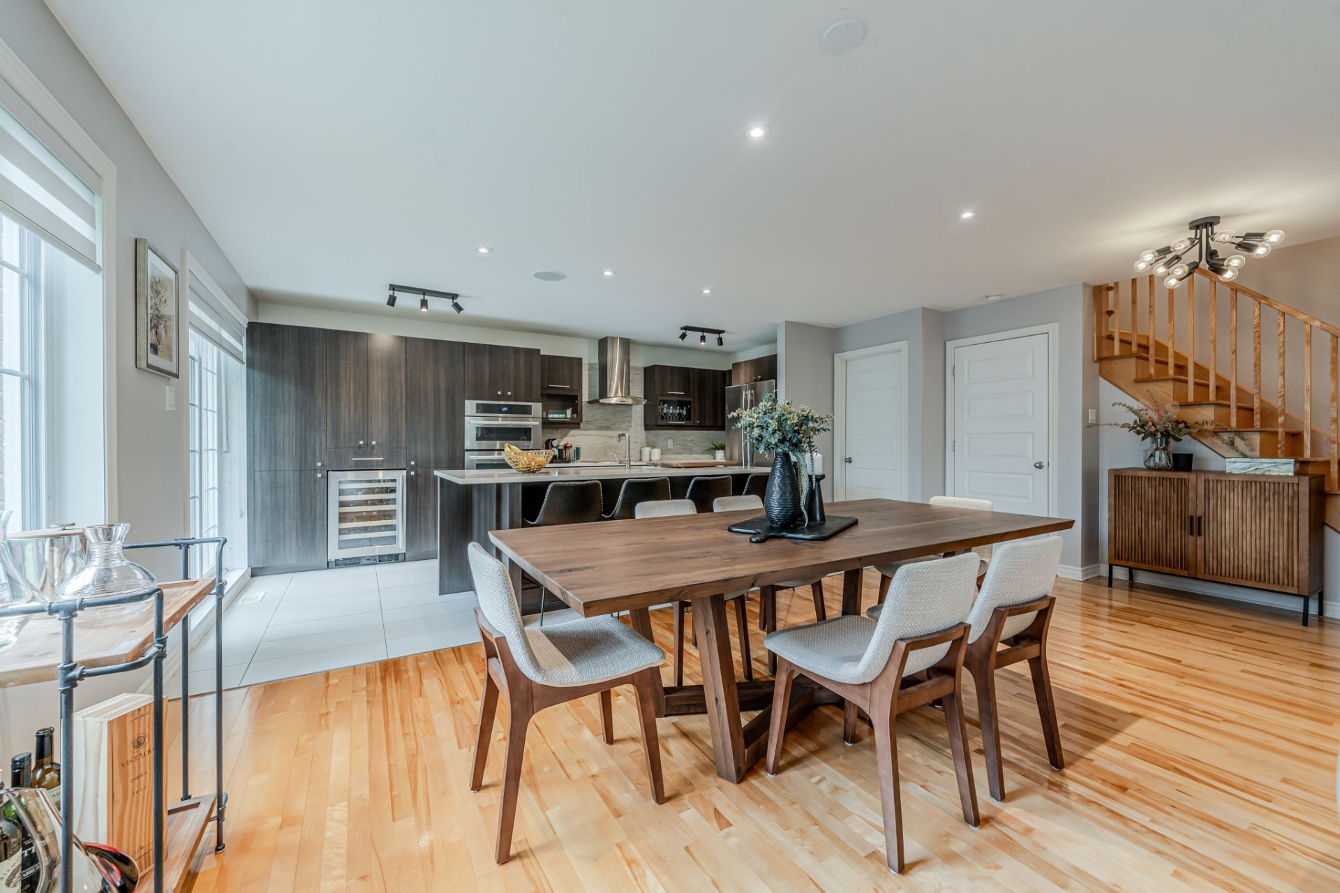 Luminaires, stores, rideaux, réfrigérateur, cuisinière, lave-vaisselle, laveuse, sécheuse, cellier sur mesure à la mezzanine pour 350 bouteilles, aspirateur central et ses accessoires, gazebo avec les moustiquaires.