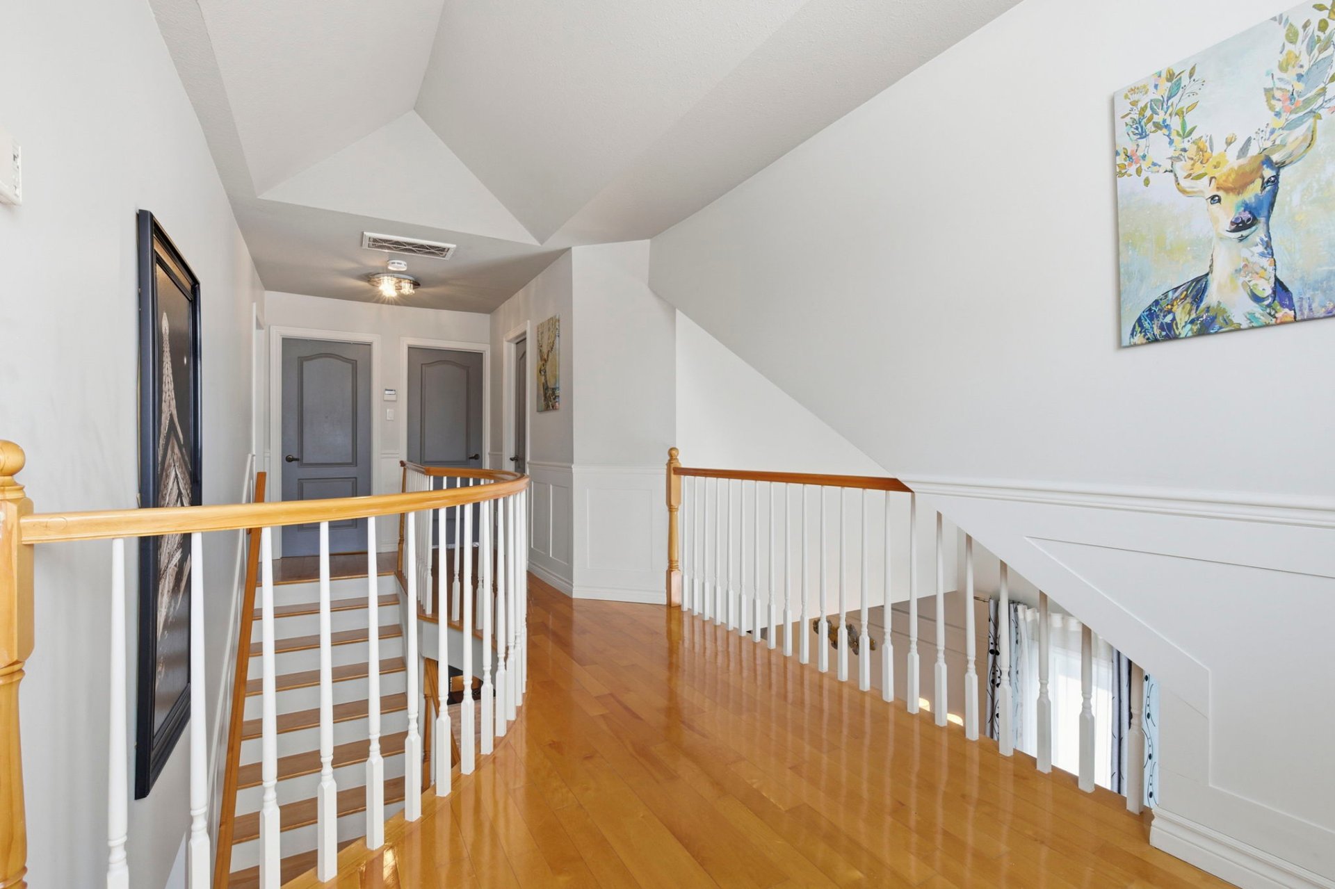 À l'étage, une mezzanine agrémentée d'un coin lecture mène