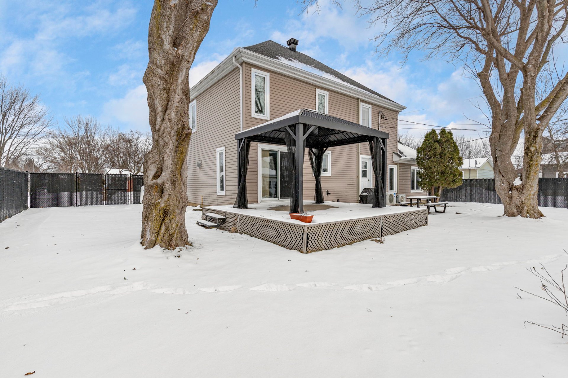 Superbe propriété clé en main située dans un secteur paisible et familial de Napierville, à 5 min de l'A-15. Spacieuse et lumineuse, elle propose un salon avec foyer au mur de pierre, une salle à manger à plafond cathédrale et une cuisine haut de gamme avec îlot central, armoires en bois et comptoirs de granit. Quatre chambres à l'étage et une au rez-de-chaussée. Deux salles de bain complètes et une salle d'eau. Sous-sol aménagé. Cour intime avec terrasse, gazebo, piscine creusée chauffée et cabanon. Garage, thermopompe, climatiseur central.