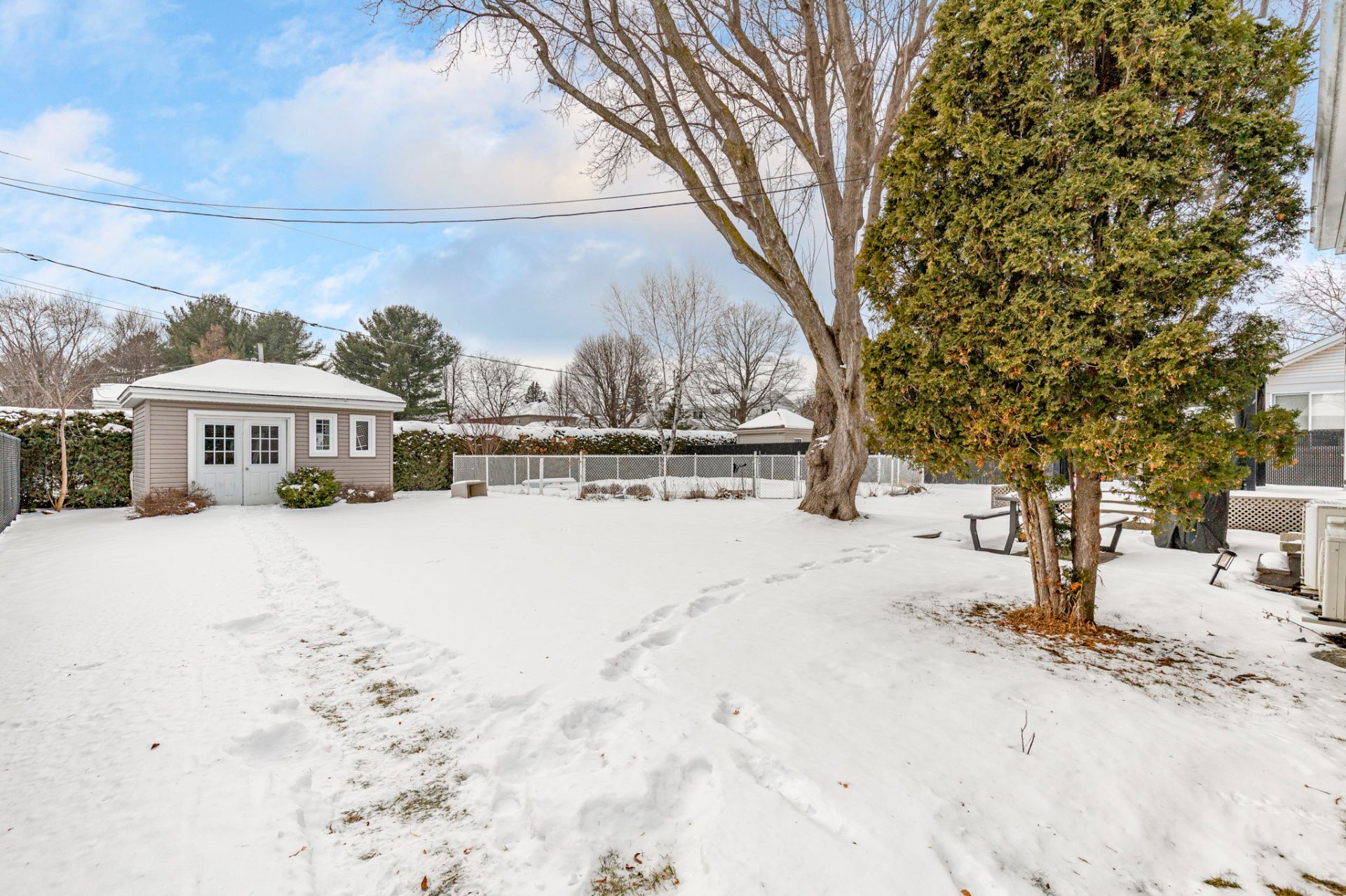 À l'extérieur, la cour clôturée vous accueille avec une