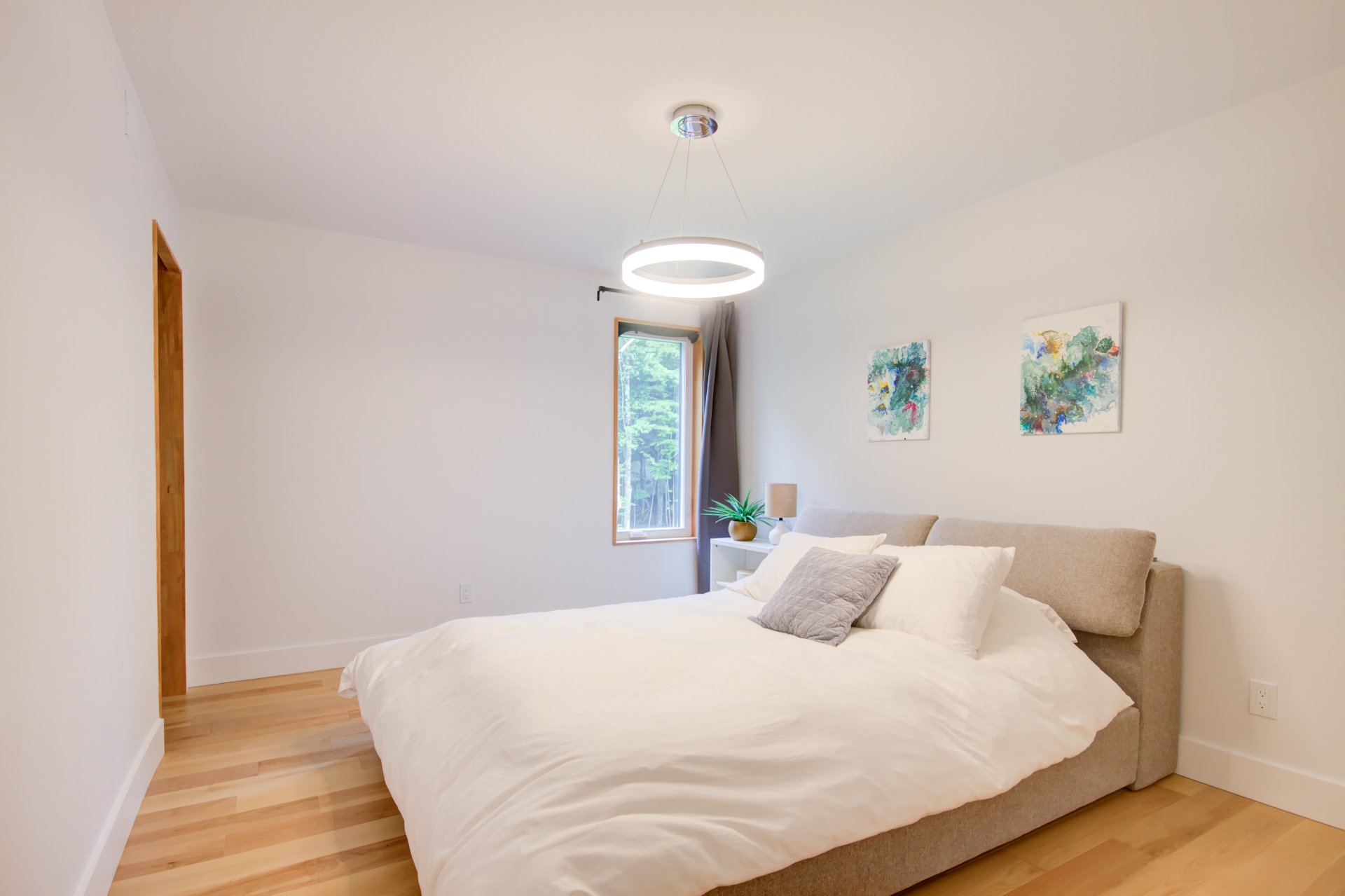 Les grandes fenêtres inondent l'intérieur de lumière