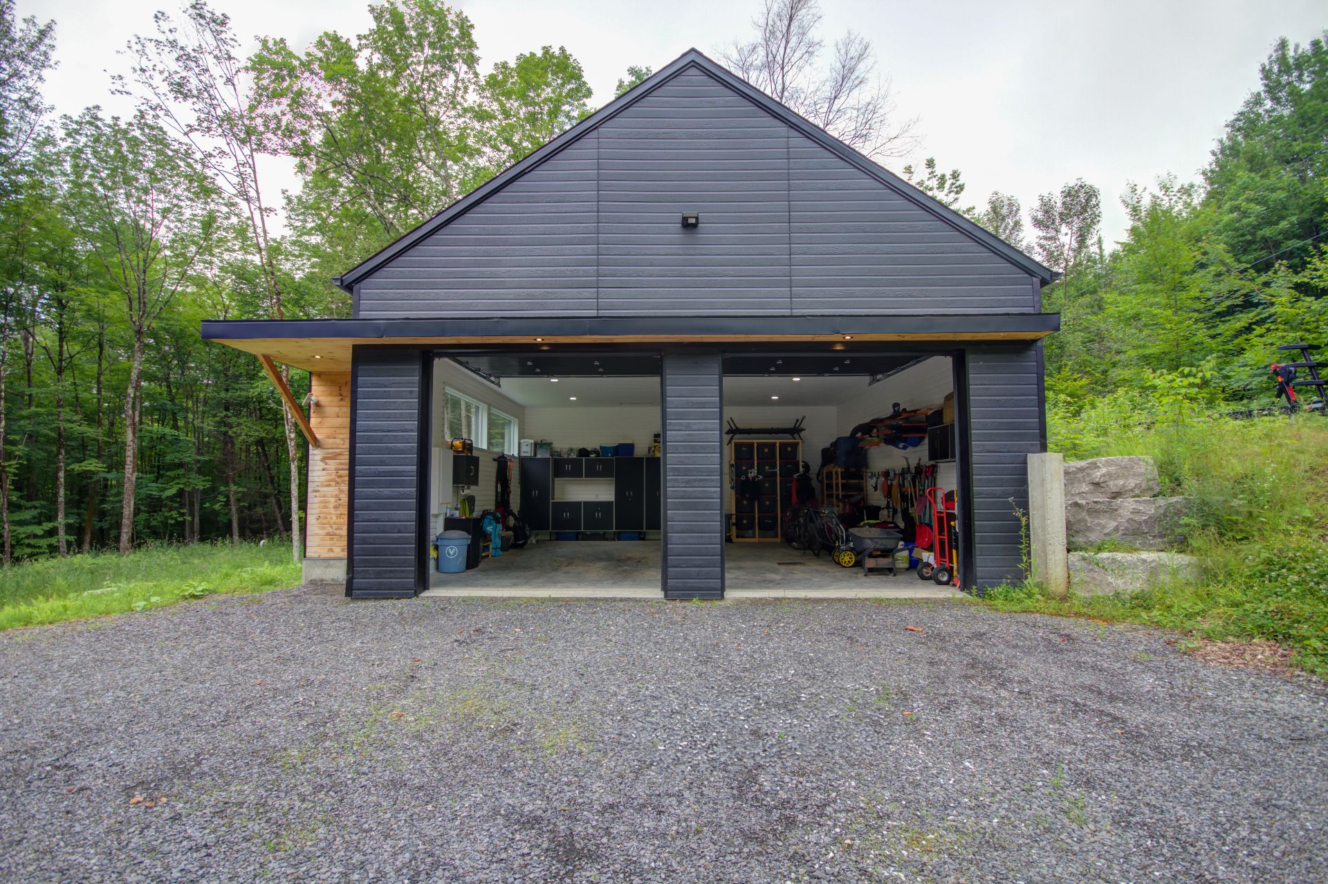 Tout le contenu du garage qui est amovible,effets personnels,Remorques à bâteau et remorque présente dans l'abri Tempo (dans le bois un peu plus loin),Échelle d'aluminium,Cadre de l'Ours dans le hall d'entrée/salon,Les génératrices,Les souffleuses,quelques accessoires de cuisine (machine à café,Thermomix,Moulin à café,liste à détailler plus tard),Deux chaises longues. Un dévidoir à boyau d'arrosage qui est sur le côté des thermopompes sera remplacé par un autre dévidoir similaire mais plus vieux