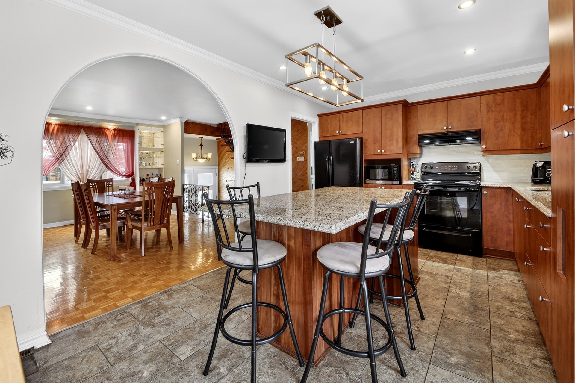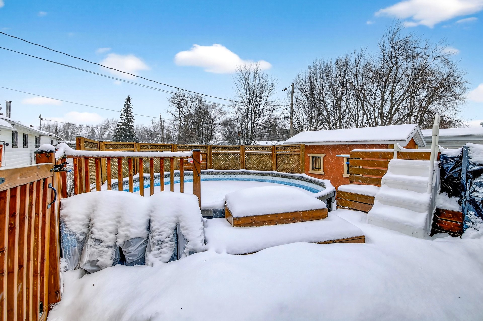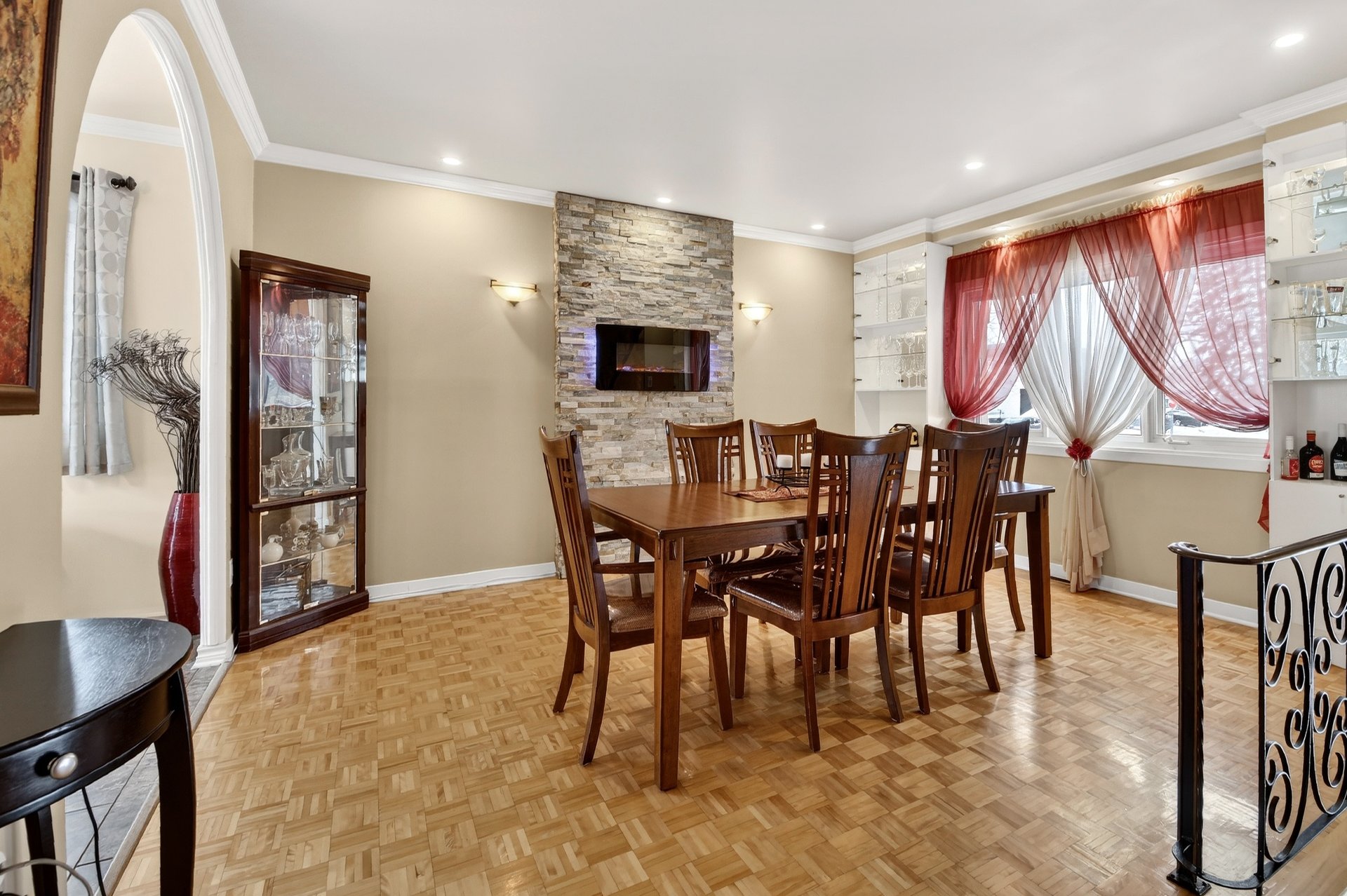 Foyer électrique de la salle à manger (Salon), 2 meubles blanc de la salle à manger (Salon), luminaires, air climatisé mural du 2e étage, 4 tabourets de la cuisine du RDC, stores, tringles et rideaux, aspirateur centrale, piscine hors-terre et accessoires, foyer extérieur, télévision et support de la cuisine, hottes de cuisine.