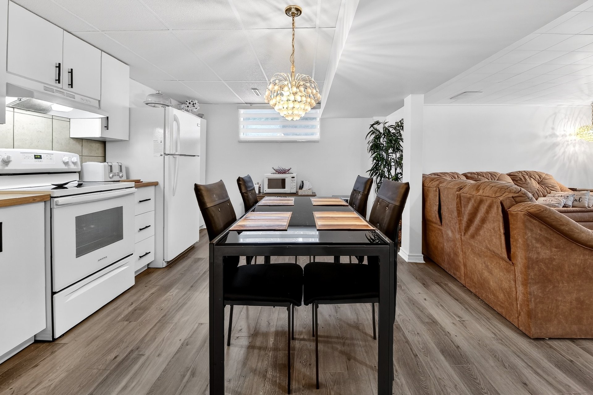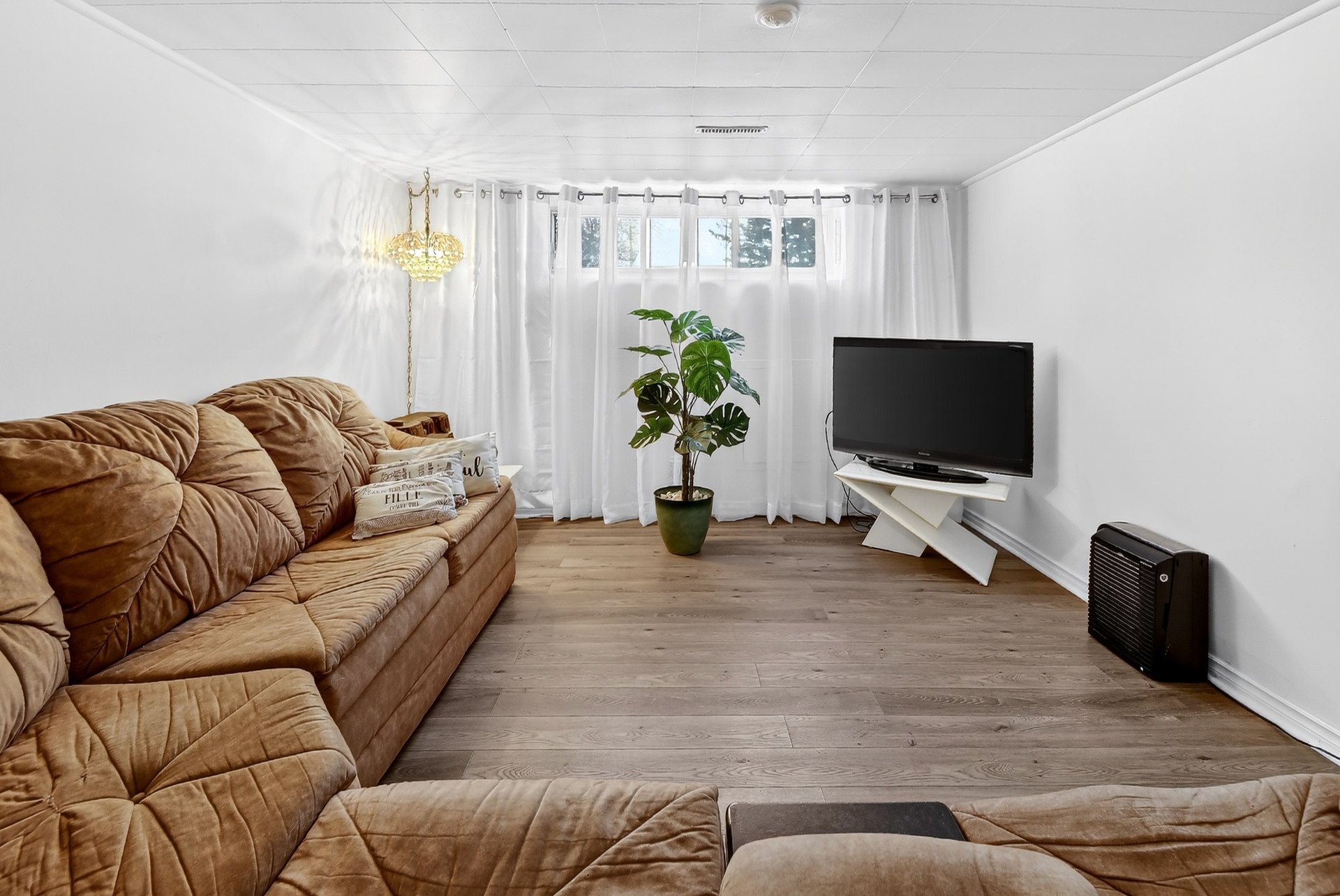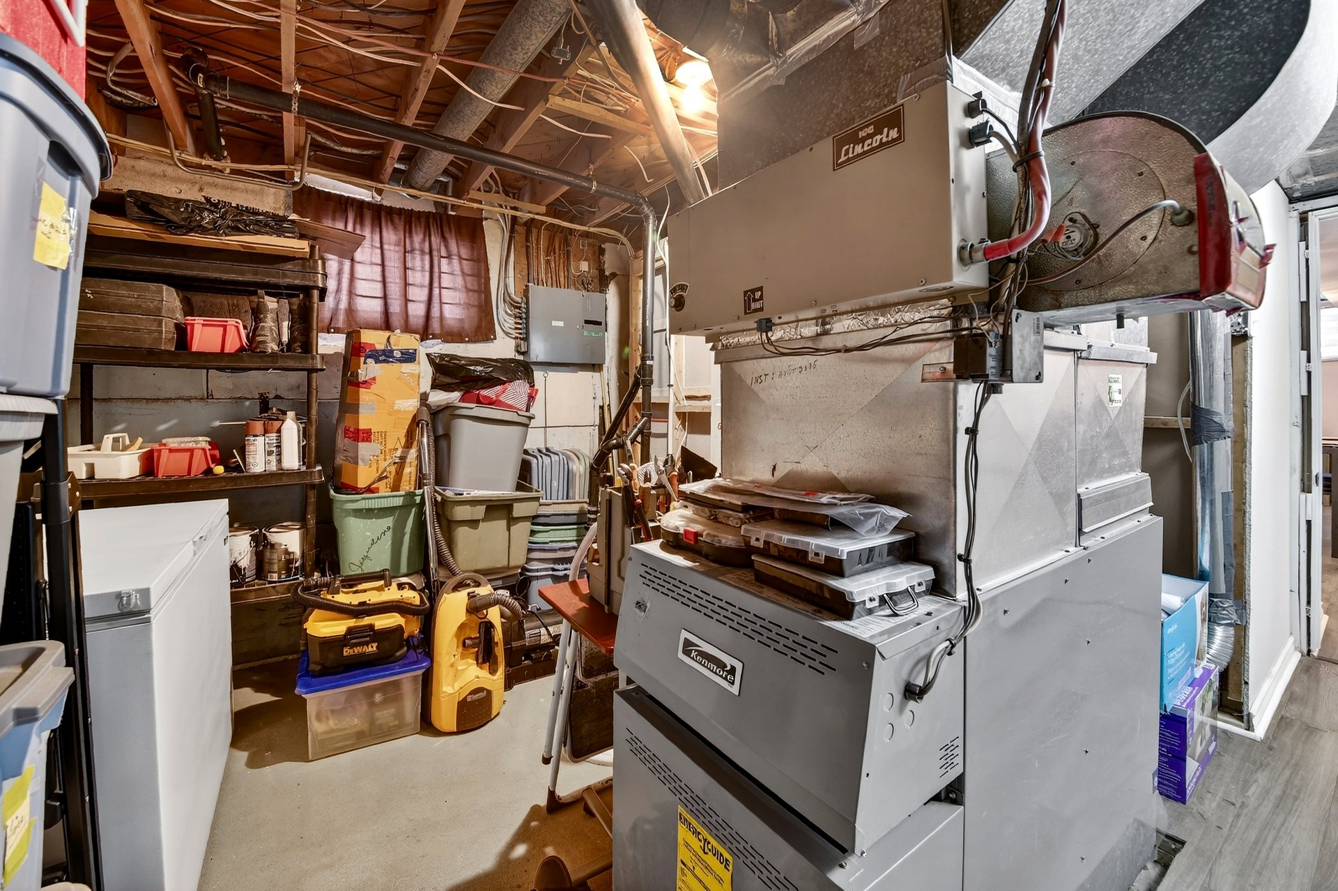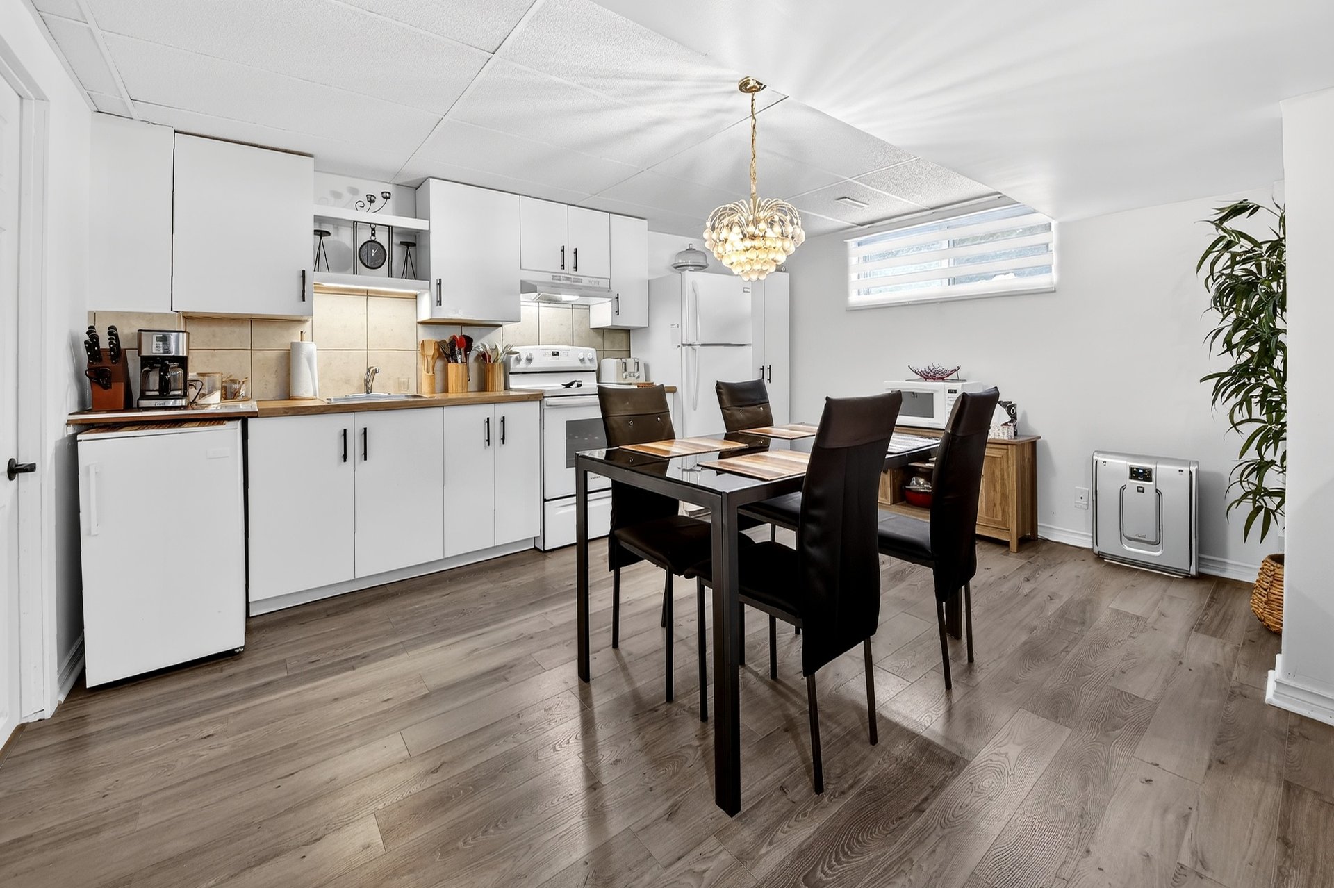 Foyer électrique de la salle à manger (Salon), 2 meubles blanc de la salle à manger (Salon), luminaires, air climatisé mural du 2e étage, 4 tabourets de la cuisine du RDC, stores, tringles et rideaux, aspirateur centr...