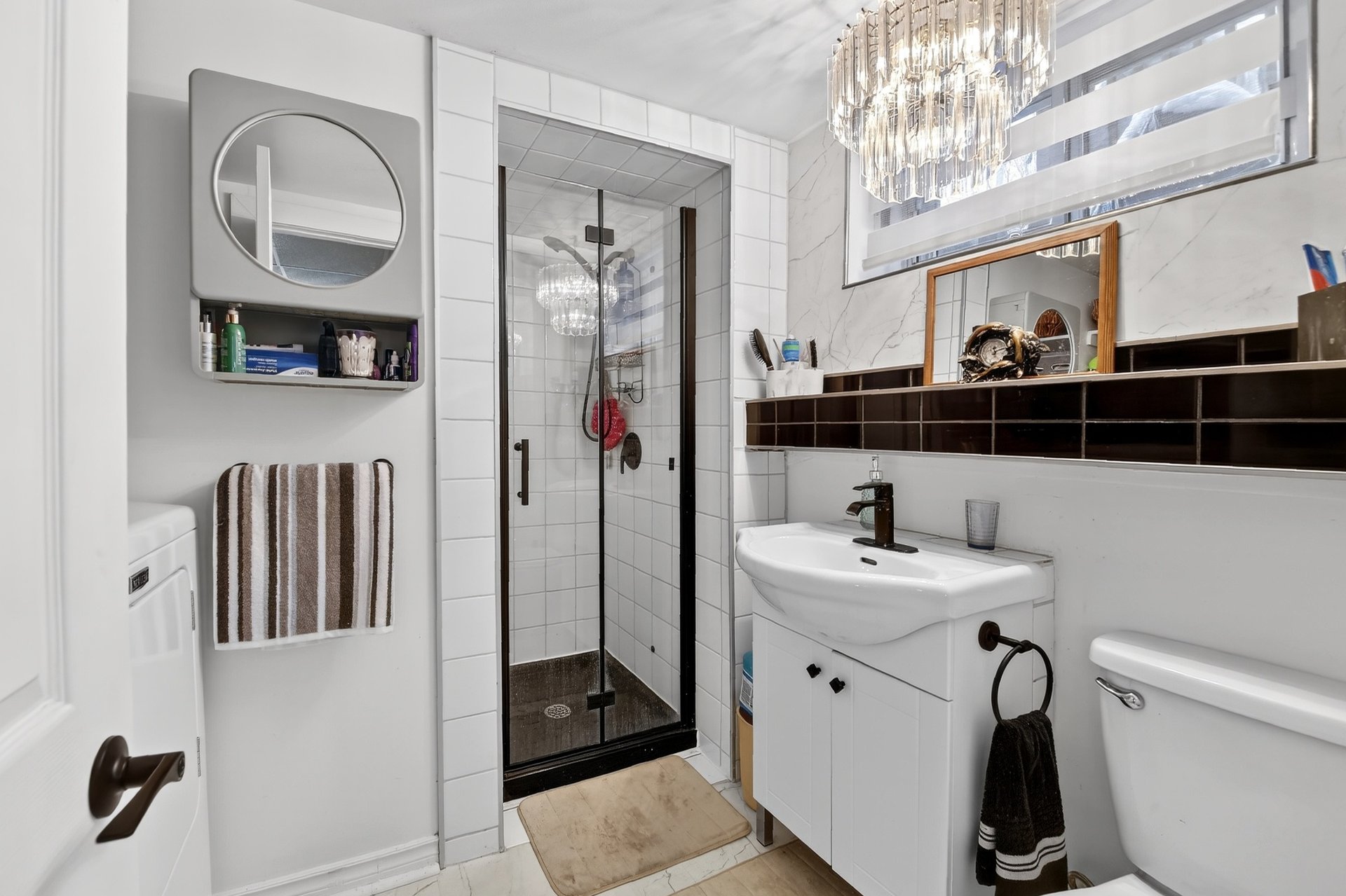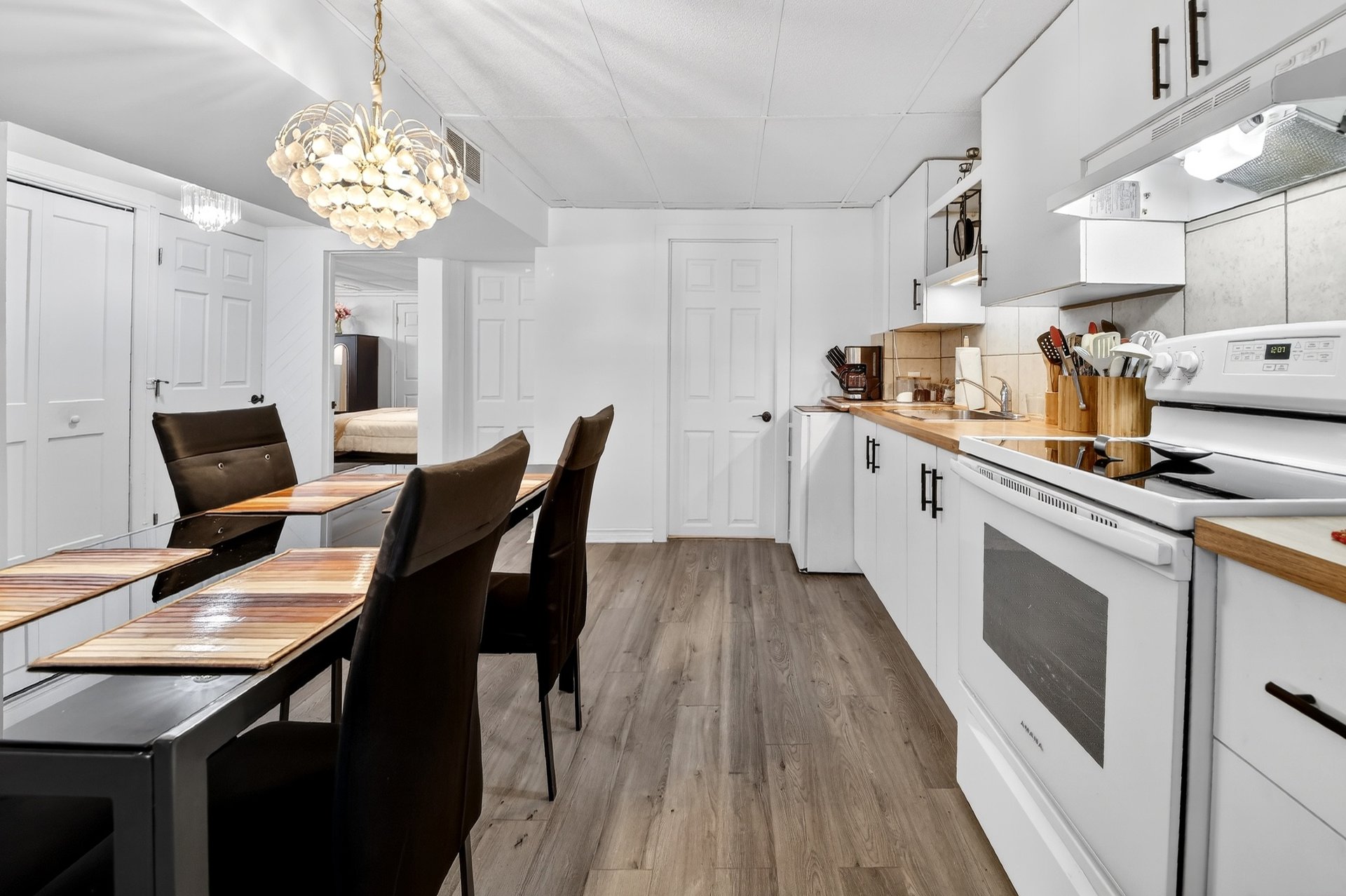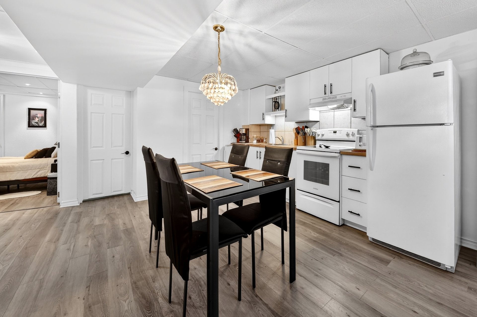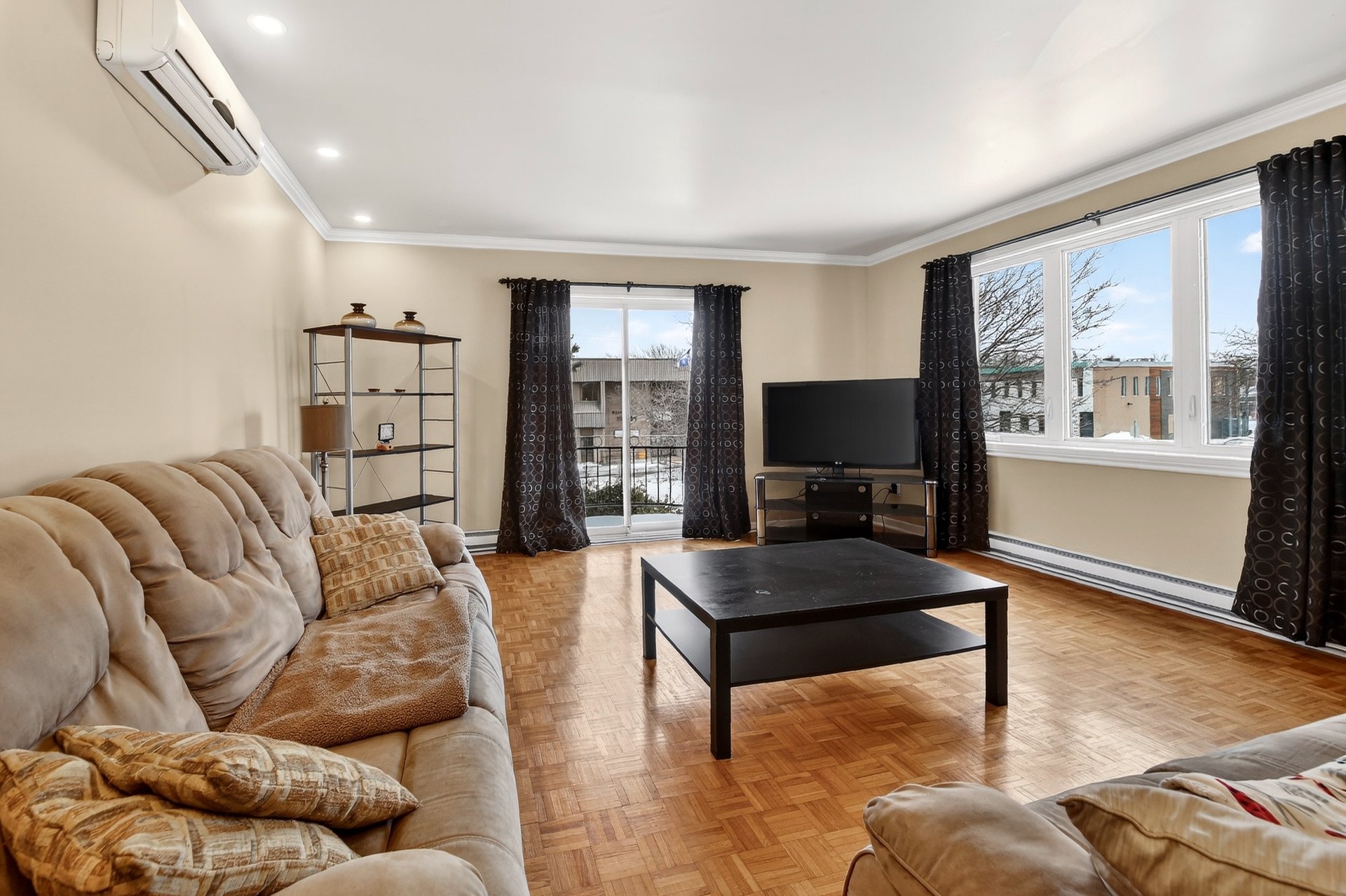Foyer électrique de la salle à manger (Salon), 2 meubles blanc de la salle à manger (Salon), luminaires, air climatisé mural du 2e étage, 4 tabourets de la cuisine du RDC, stores, tringles et rideaux, aspirateur centr...
