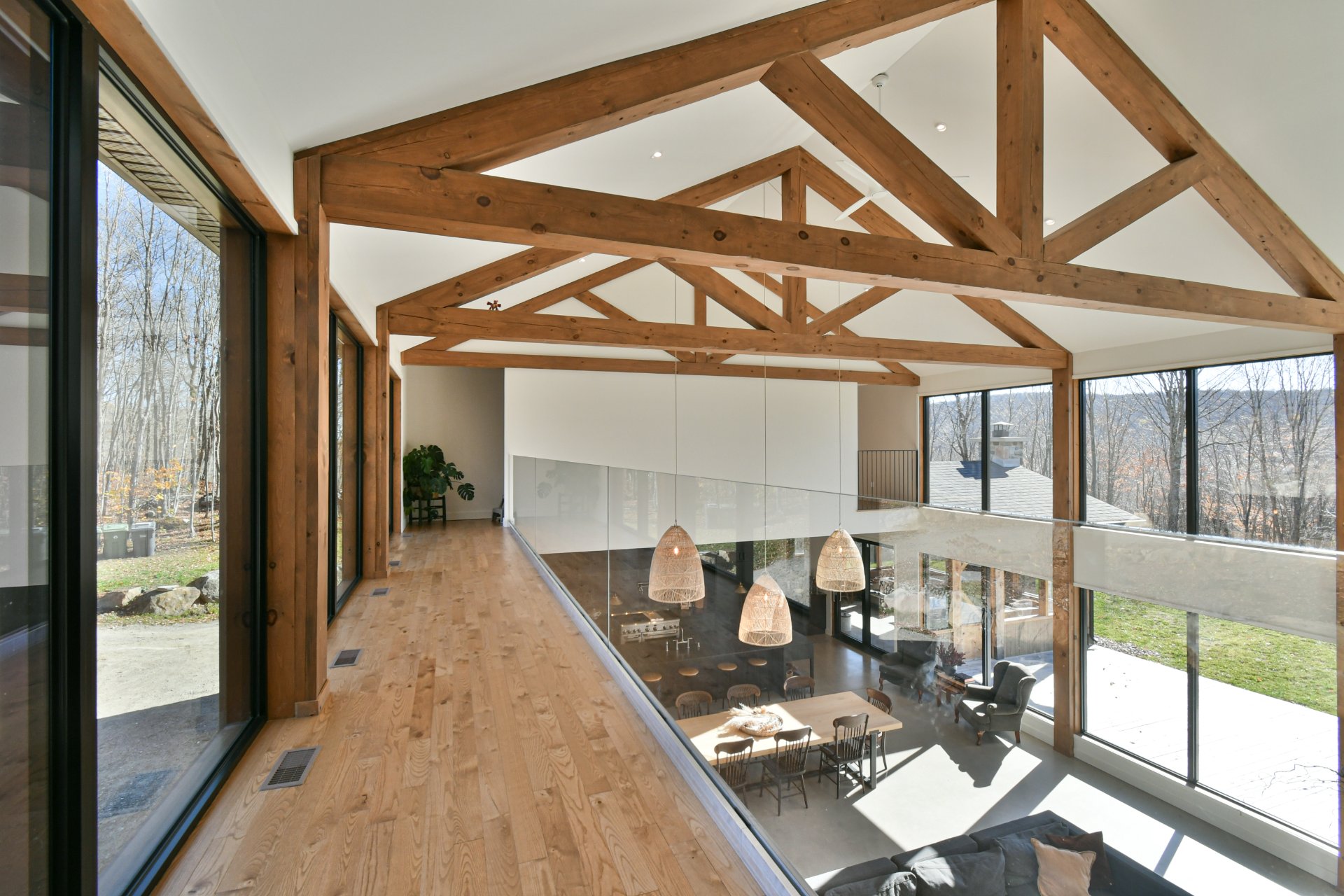 *Propriété d'exception* Construite en 2022 sur plus de 14 acres de forêt privée adossée aux terres de la couronne, cette résidence architecturale se distingue par la pureté de ses lignes et la qualité de sa conception.L'intérieur séduit par ses volumes aérés et ses matériaux nobles. L'abondance de la fenestration inonde chaque pièce de lumière et renforce la connexion avec la nature environnante. Le foyer majestueux, les hauteurs sous plafond et les ouvertures panoramiques mettent en valeur un environnement forestier matures d'une rare beauté. Un domaine unique, idéal pour les "gentleman farmers" désirant conjuguer modernité et vie en nature.