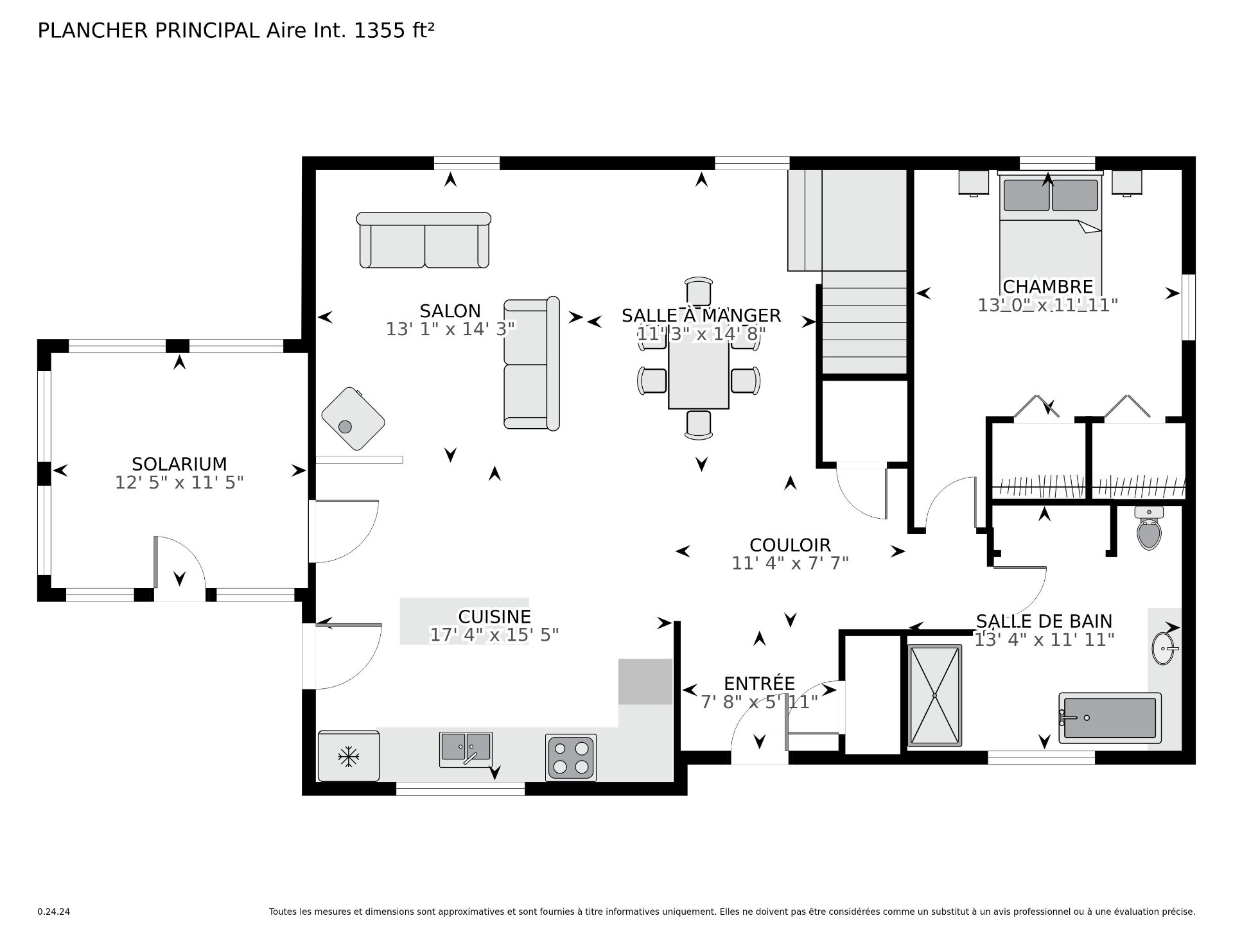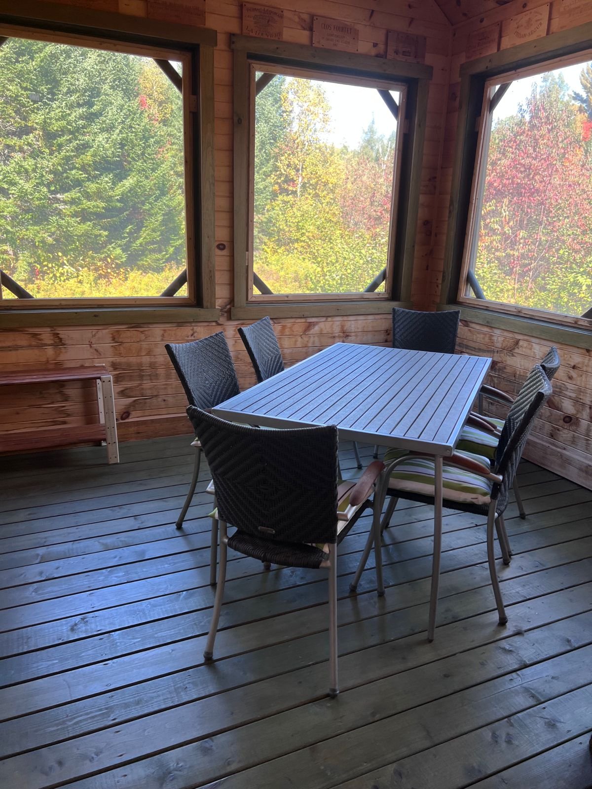 Les installations permanentes de chauffage, électricité et éclairage, réfrigérateur, lave-vaisselle, cuisinière, laveuse, sécheuse, et sauna infrarouge. (Divers meubles et articles de vaisselle pourraient être laissés sur place, à discuter).