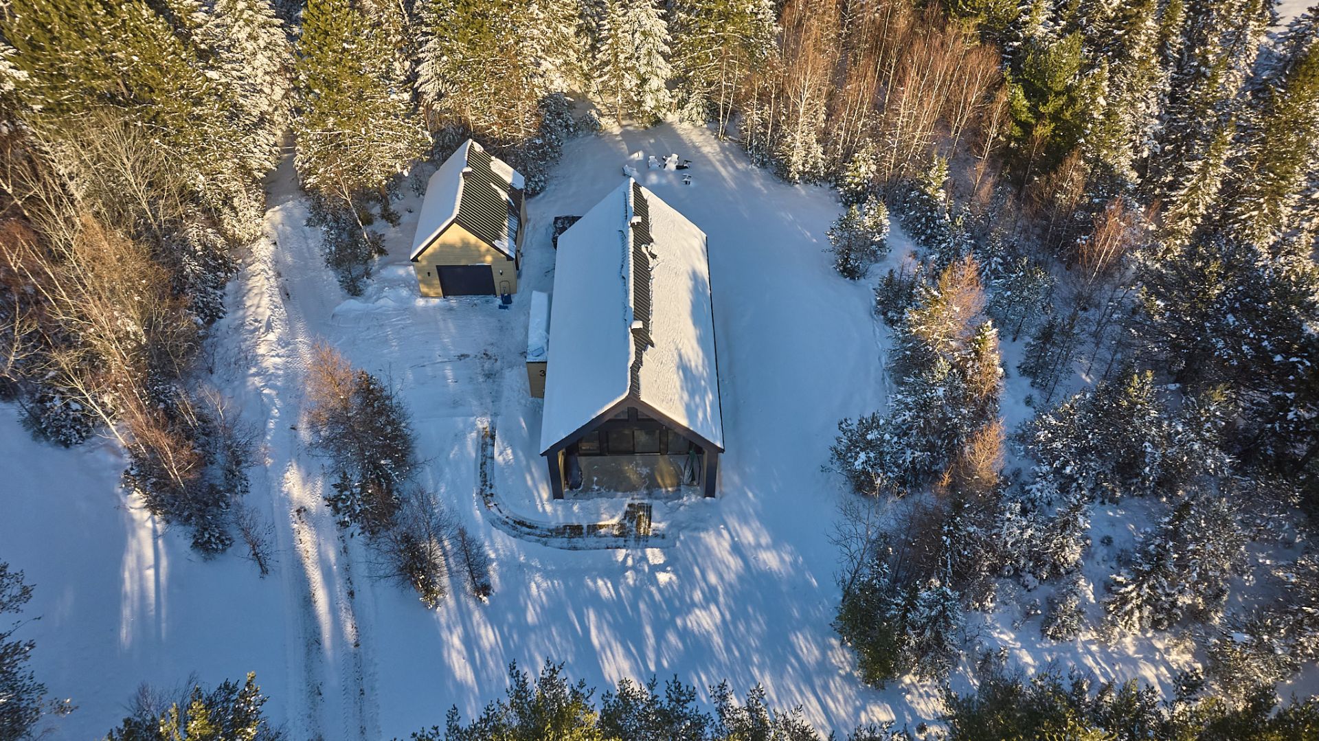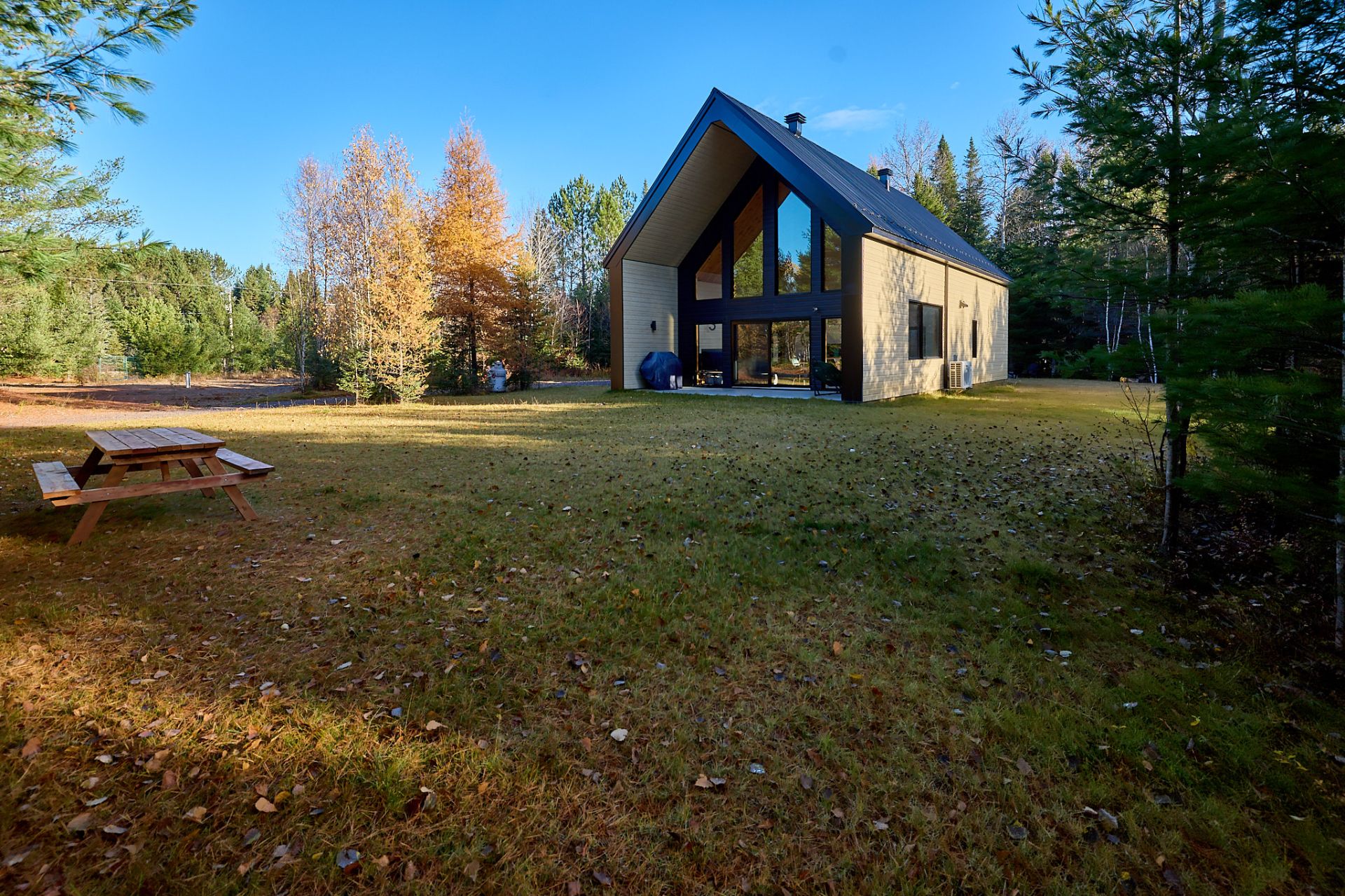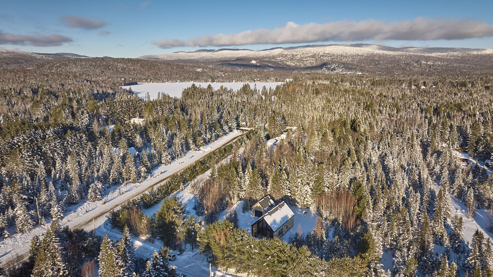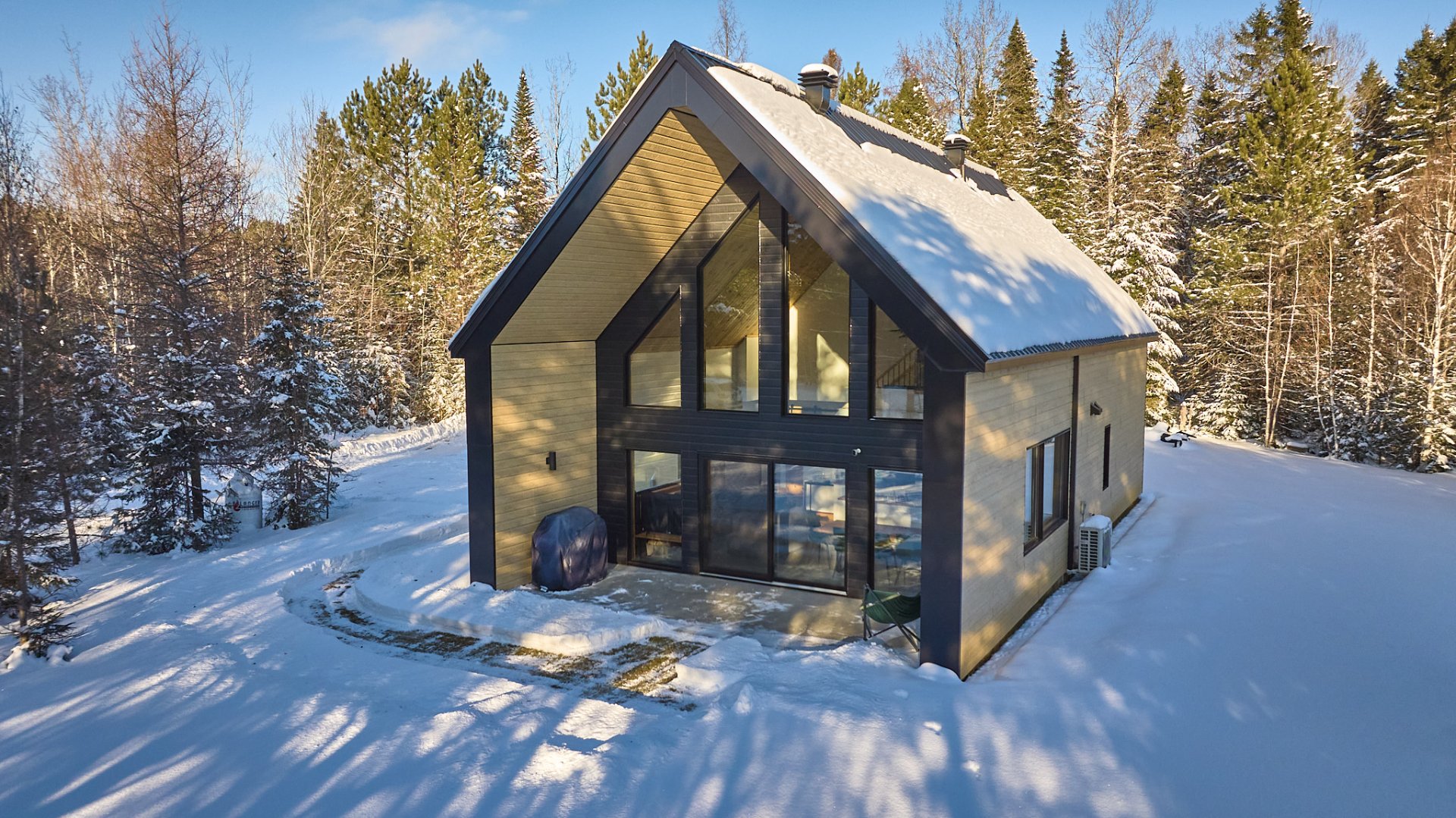 VENDU ENTIÈREMENT MEUBLÉ - ACCÈS AU LAC PIMBINA ! Chalet scandinave lumineux au design moderne, à seulement 7 minutes du village. Aire ouverte avec plafond cathédrale, foyer au gaz et planchers de béton chauffant. Cuisine contemporaine avec îlot et finitions haut de gamme. Deux salles de bain raffinées, spa privé et garage détaché. Accès notarié au lac Pimbina. La piste de motoneige passe tout près ! Un décor naturel enchanteur, idéal pour profiter des quatre saisons