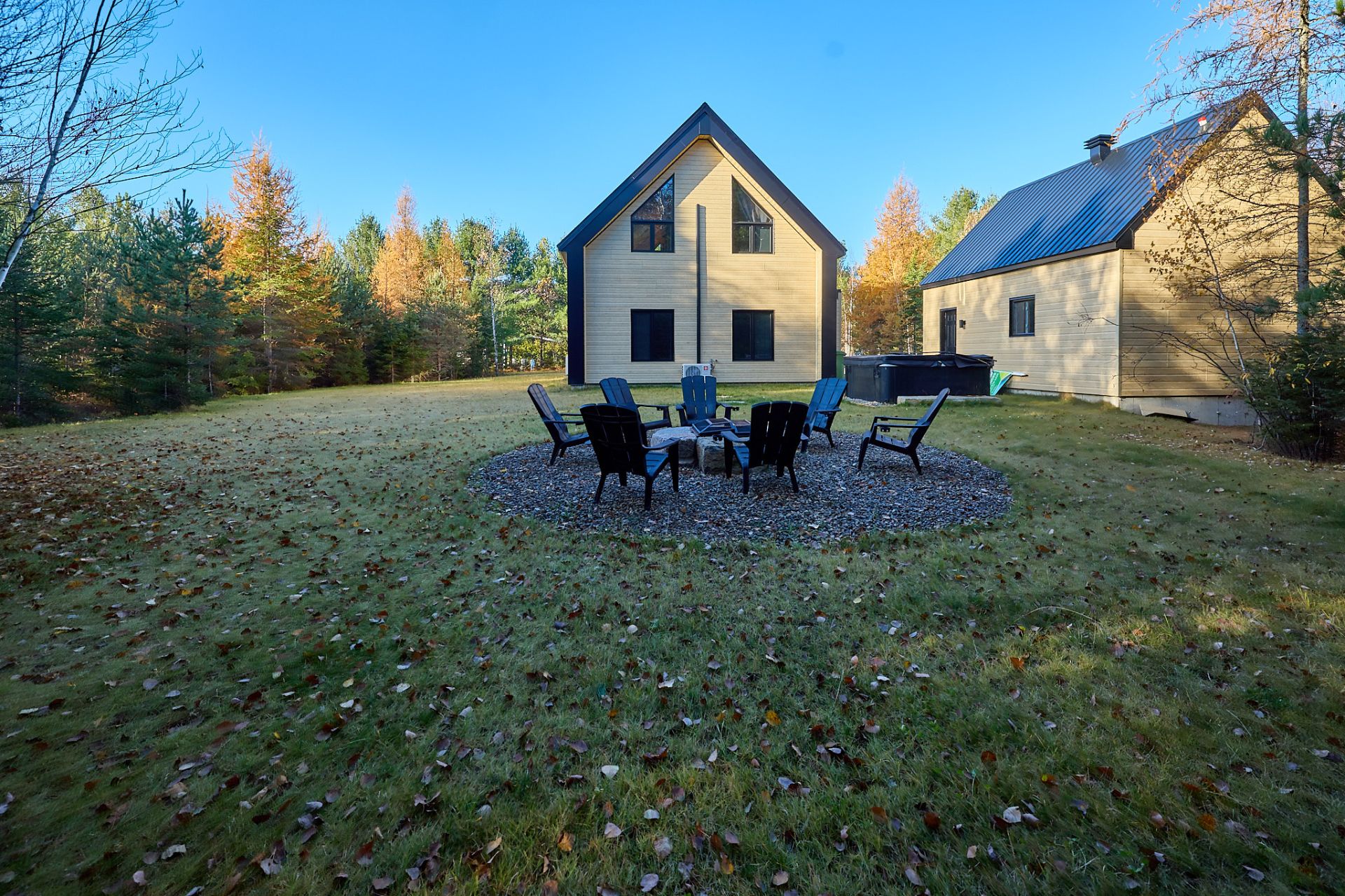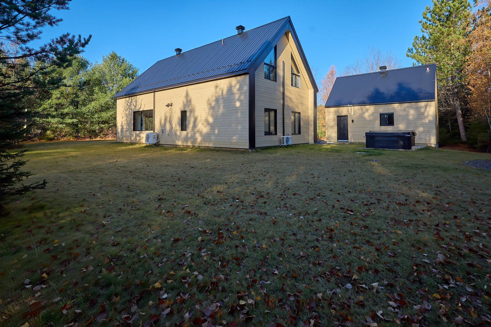 VENDU ENTIÈREMENT MEUBLÉ - ACCÈS AU LAC PIMBINA ! Chalet scandinave lumineux au design moderne, à seulement 7 minutes du village. Aire ouverte avec plafond cathédrale, foyer au gaz et planchers de béton chauffant. Cuisine contemporaine avec îlot et finitions haut de gamme. Deux salles de bain raffinées, spa privé et garage détaché. Accès notarié au lac Pimbina. La piste de motoneige passe tout près ! Un décor naturel enchanteur, idéal pour profiter des quatre saisons
