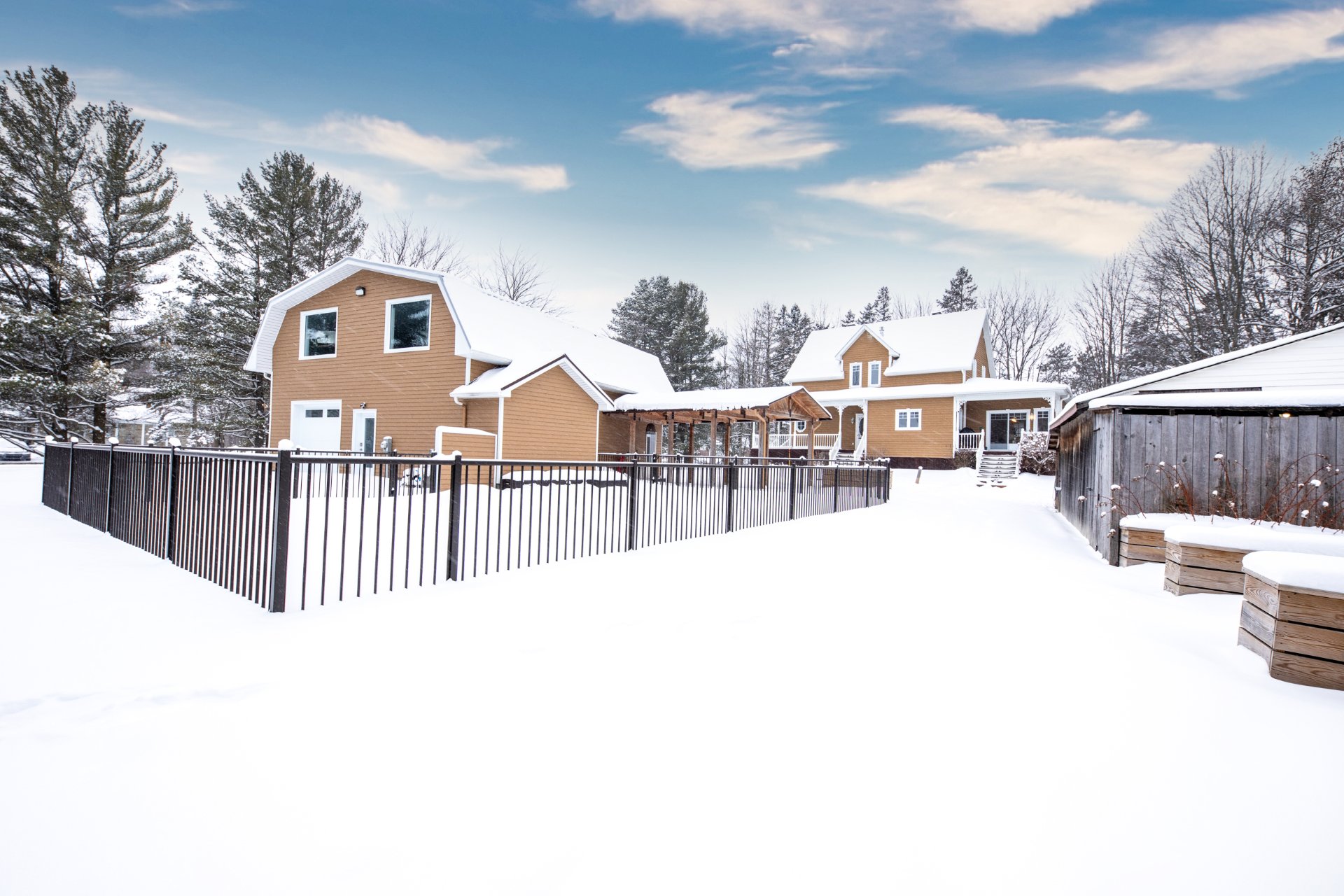 Luminaires, Hotte de cuisinère, Cuisinière, Lave-vaiselle et réfrigérateur de la résidence principale, Système au sel pour piscine et ses accessoires, 4 bacs à jardin extérieur, borne électrique.
