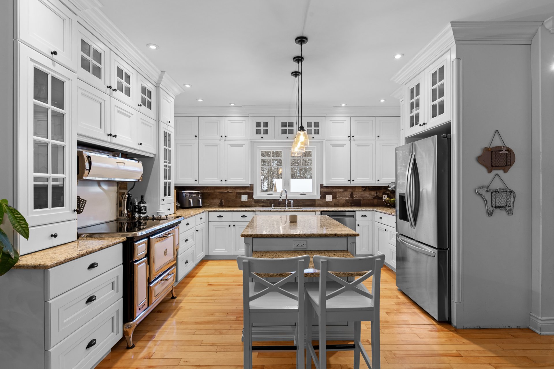 PETIT DOMAINE PRIVÉ ! À seulement 5 minutes de la ville Véritable coin de paradis! Propriété construite en 2012 offrant 3 grandes chambres à coucher, avec possibilité d'en ajouter. Immense cuisine à aire ouverte avec comptoirs en granite, magnifique salle de bain rénovée et sous-sol 100 % aménagé. À l'extérieur, garage triple construit en 2022 avec pièces aménagées au niveau supérieur, petite écurie avec 2 boxes, enclos pour animaux et piscine creusée et chauffée récemment installée, avec abri et douche extérieure. Le tout est situé sur un vaste terrain boisé et aménagé de près de 140 000 pi², offrant intimité et tranquillité. À VOIR !