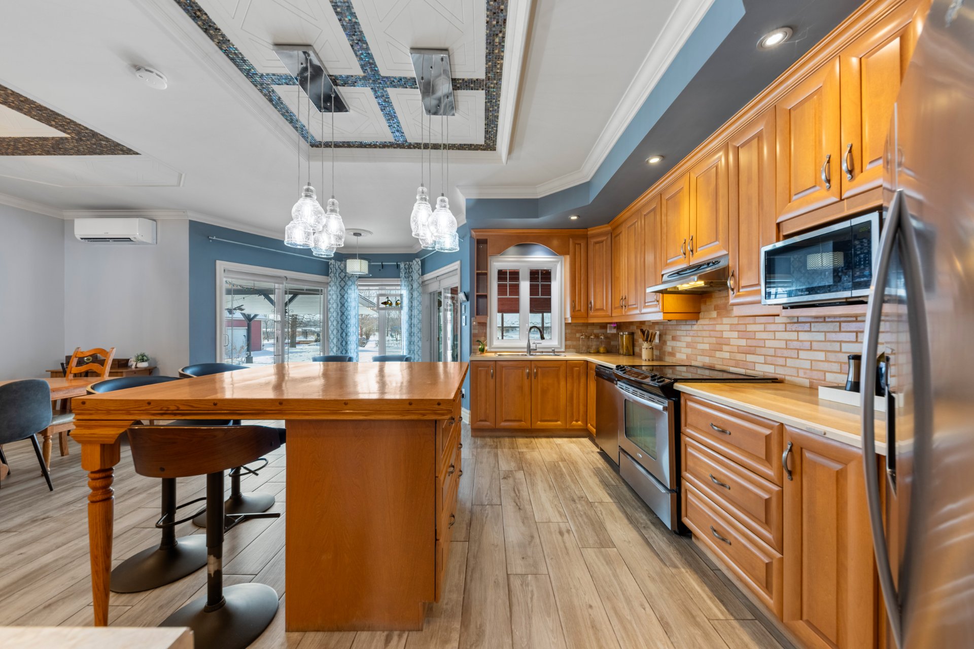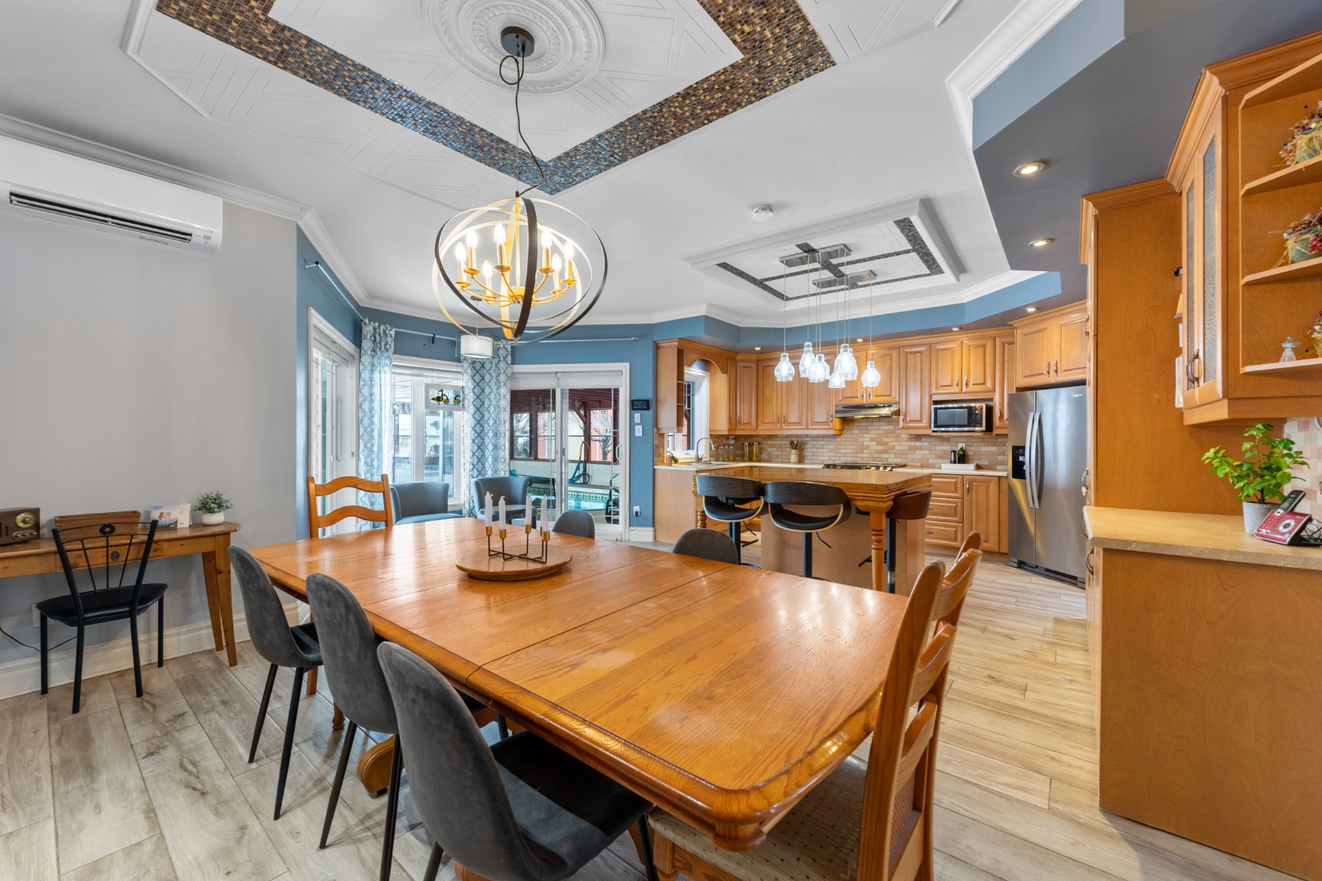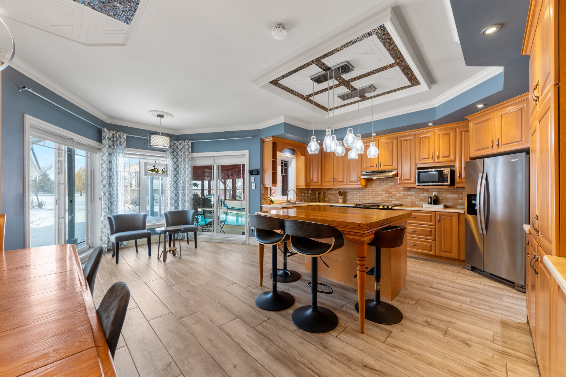 Luminaires, stores, pôles et rideaux, hotte de cuisinière, lave-vaisselle, table de billard, thermopompe murale avec 3 têtes, aspirateur centrale et ses accessoires, piscine creusée au sel chauffée avec spa intégrée, BBQ, foyer extérieur, 2 cabanons, prise électrique pour voiture (borne).