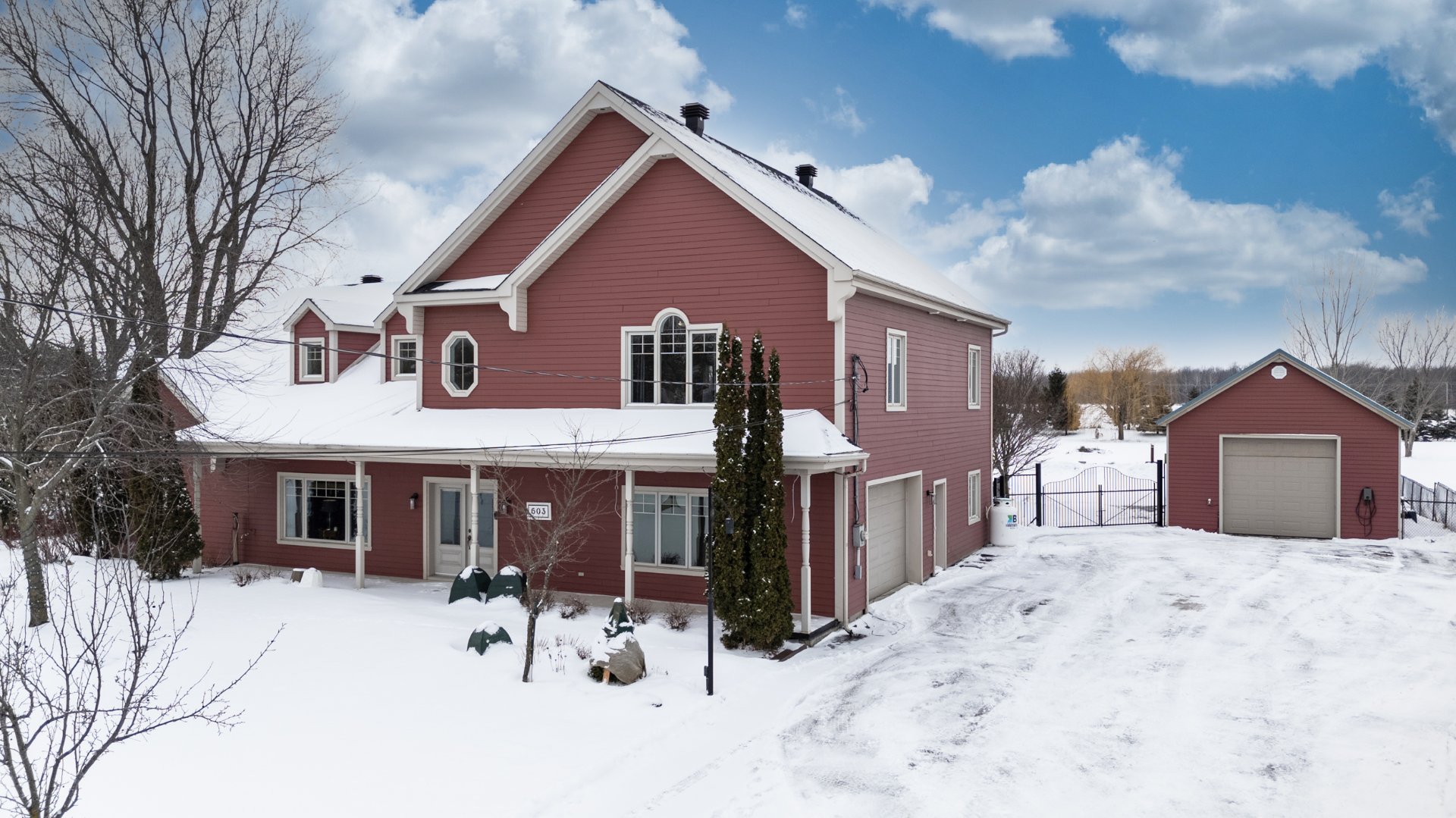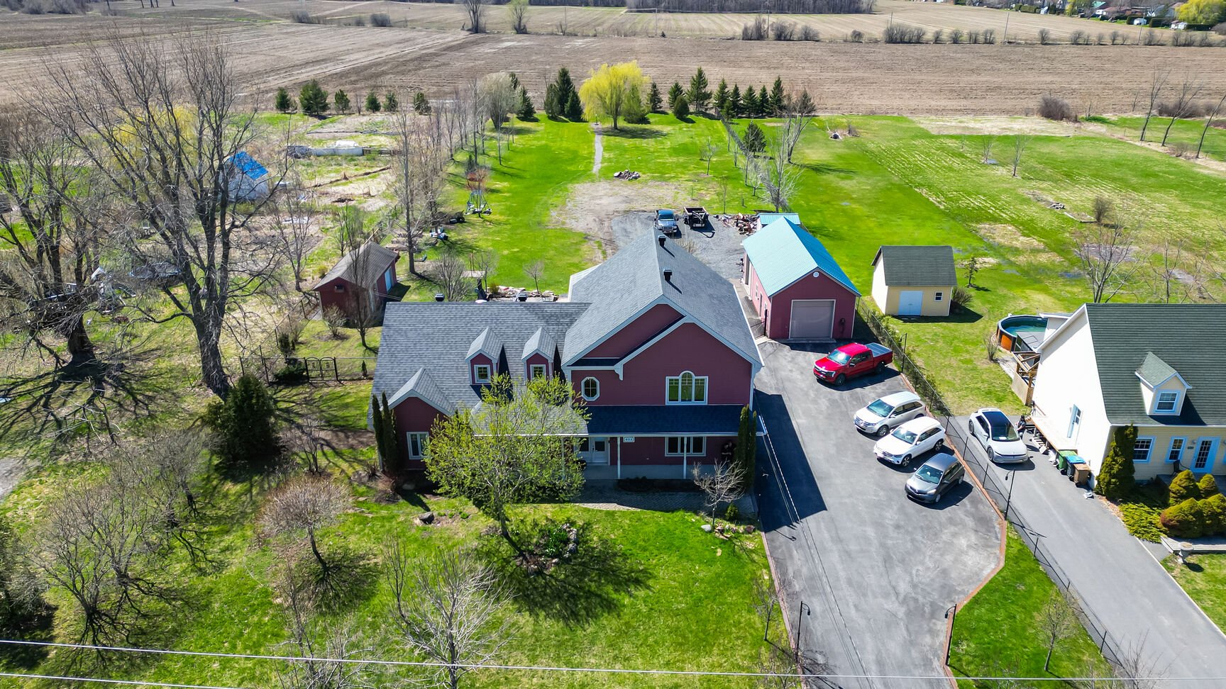 GRAND DOMAINE SITUÉ EN VILLE ! Imposante propriété construite en 2005 offrant 4 chambres à coucher, 2 salles de bain complètes + une salle d'eau. Salon spectaculaire avec plafond cathédrale de 18 pieds. Plancher chauffant sur toute la superficie du RDC. Aucun sous-sol. Garage triple attaché ainsi qu'un garage quadruple détaché de style entrepôt. Piscine creusée avec spa intégré, couverte d'un abri 3 saisons permettant de profiter de la saison estivale plus longuement. Le tout érigé sur un immense terrain d'environ 80 000 pi² avec services municipaux, une rareté en ville. Ce véritable domaine urbain a énormément à offrir. À NE PAS MANQUER!
