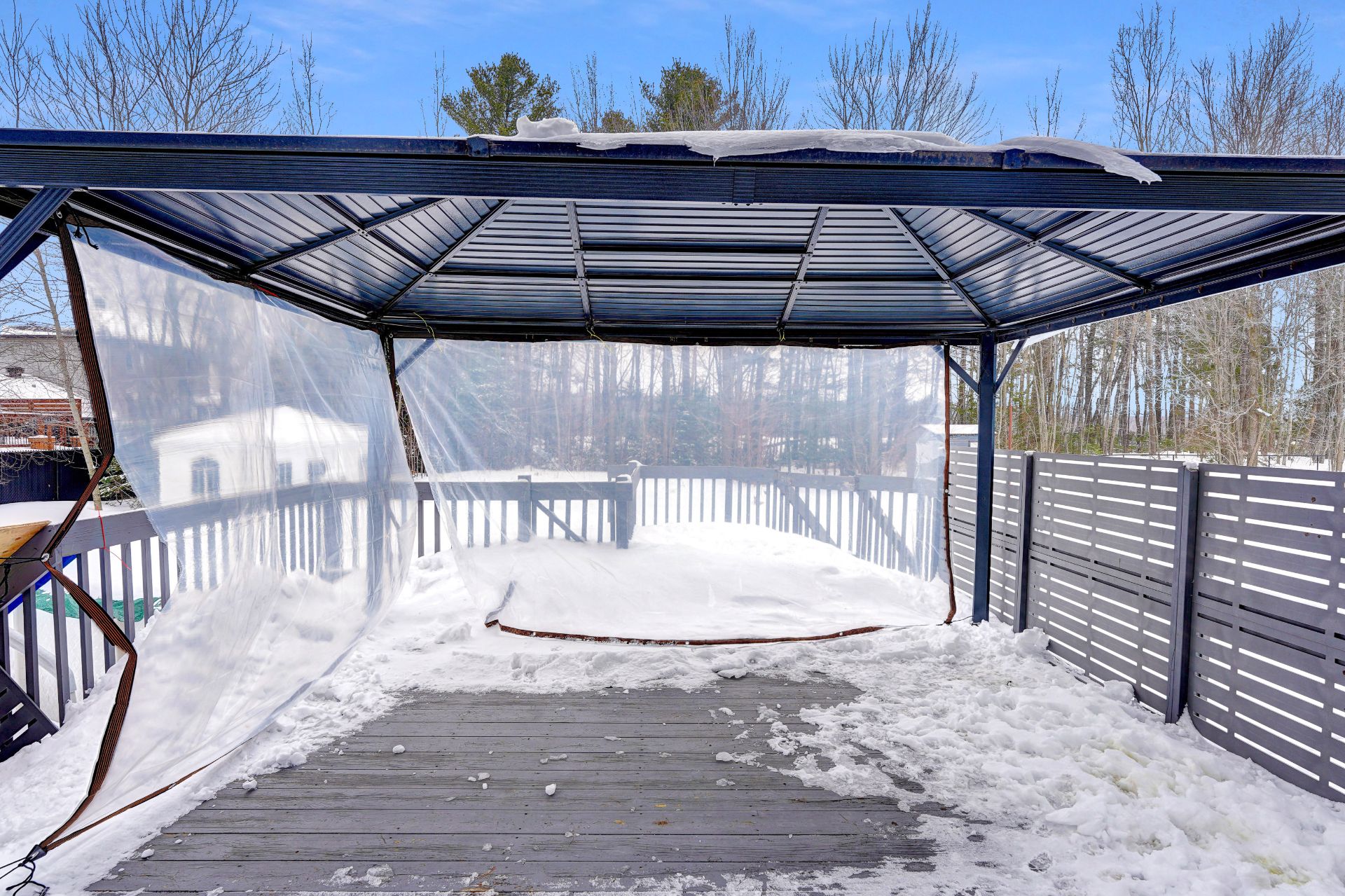 Tous les luminaires, stores, pôles, rideaux, système d'alarme, hotte de cuisine, supports de téléviseurs muraux, ouvre-porte éléctrique de garage (2), gazebo, cabanon, piscine hors terre (toile 2025)au chlore (21 pied...