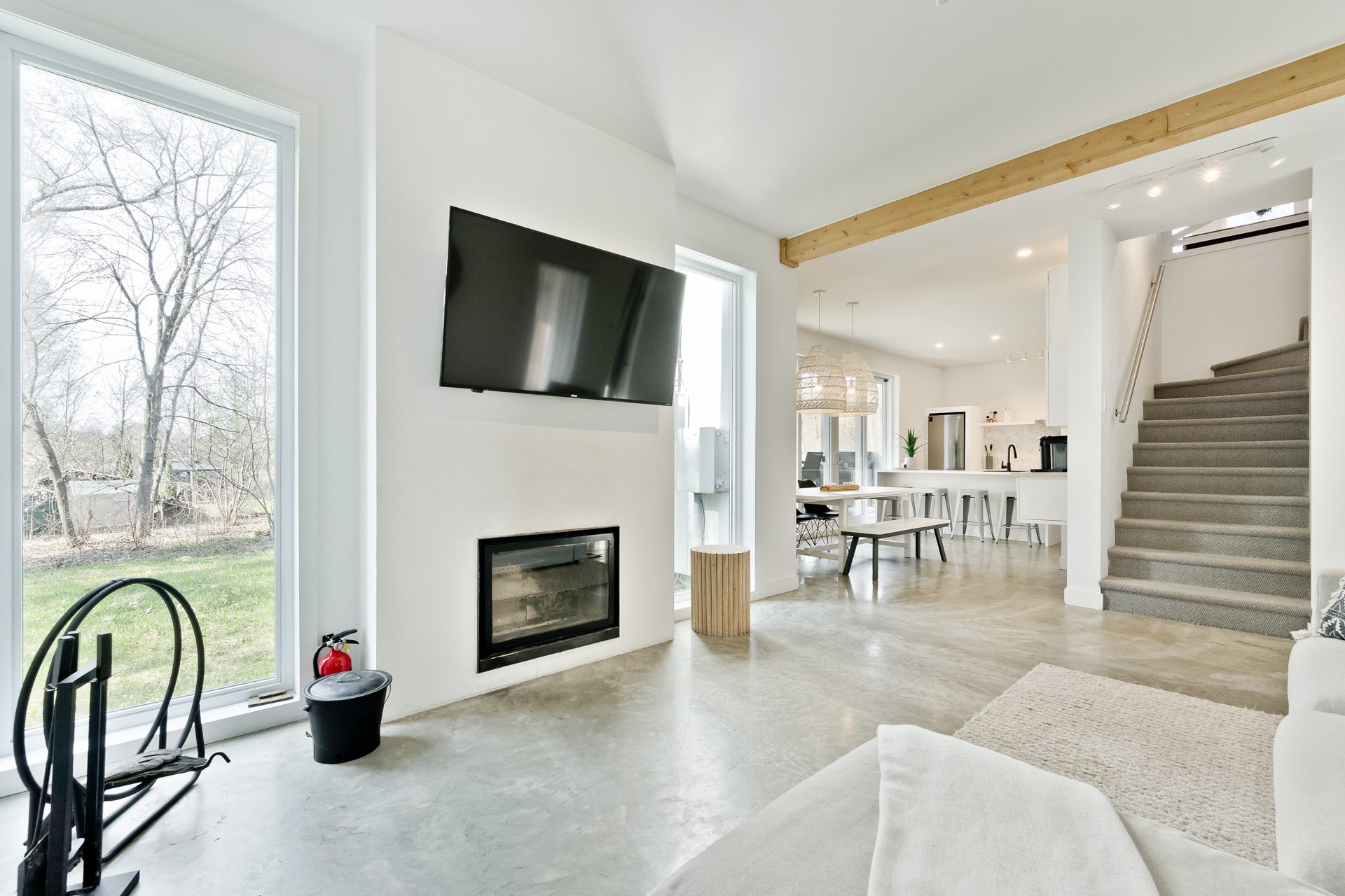 ouverte lumineuse, dalle de béton chauffante, hauts