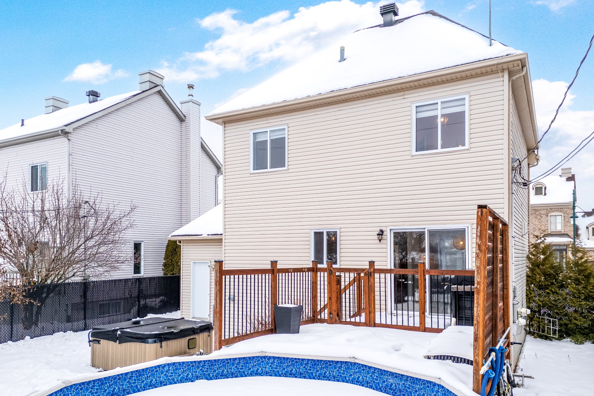 Situé dans un quartier recherché et familial, cette propriété de 4 chambres à coucher sans voisin arrière vous offre des planchers de bois francs, un système de chauffage air soufflé au gaz naturel avec climatisation centrale, un foyer au gaz, une cour intime et aménagée avec piscine et spa. Elle est située près de tous les services et autoroutes (640-440-25), de la station d'autobus et à distance de marche d'une école primaire. Une partie du garage à été modifié en salle familiale mais pourrait facilement être reconverti.
