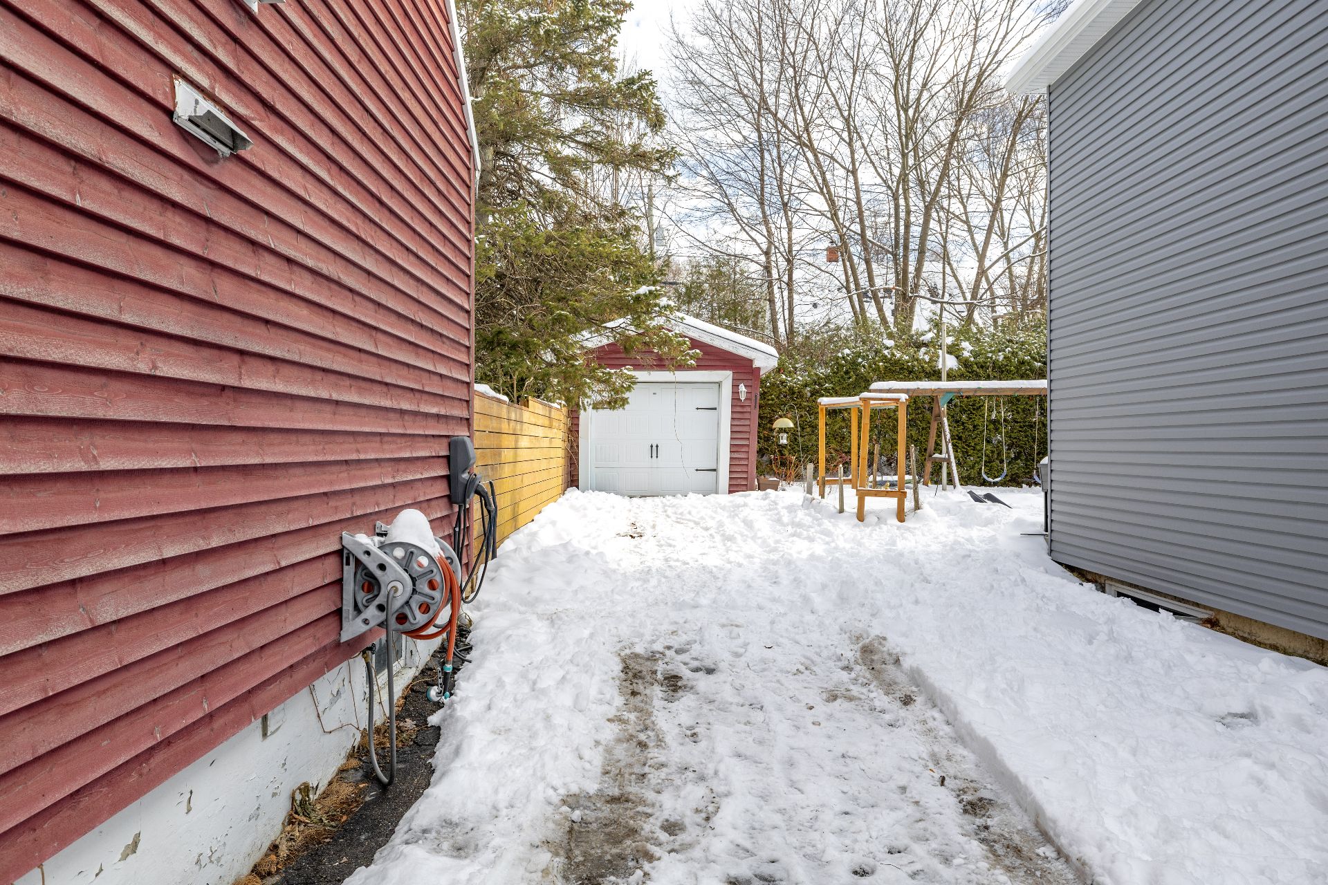 Terrain/cour bordé de haies, Clôturé