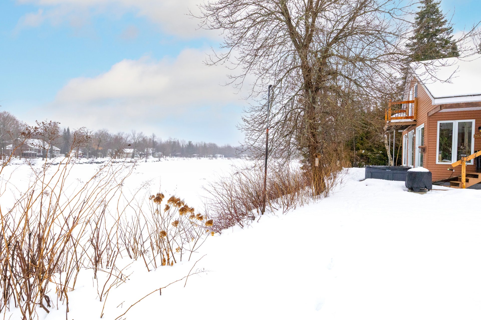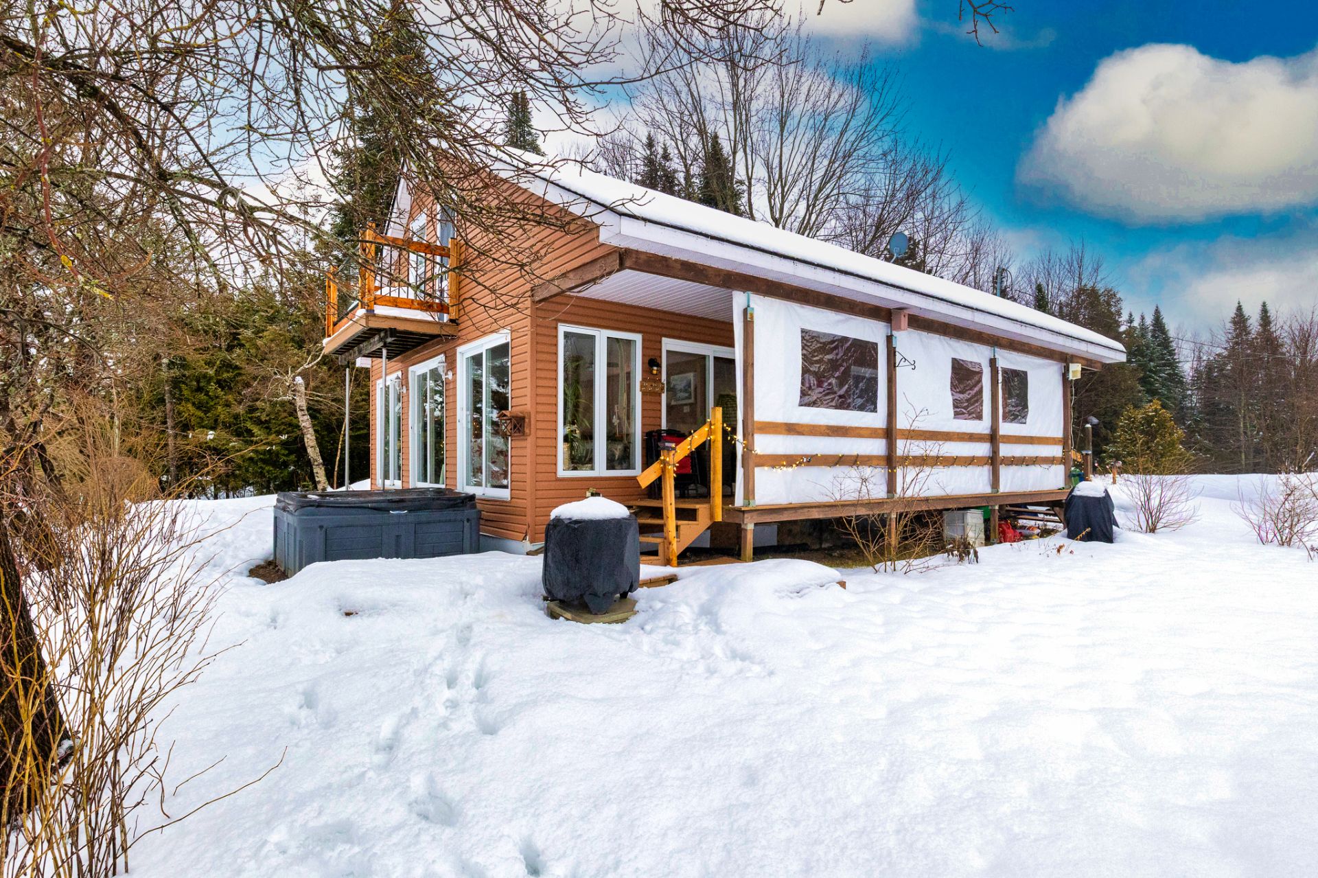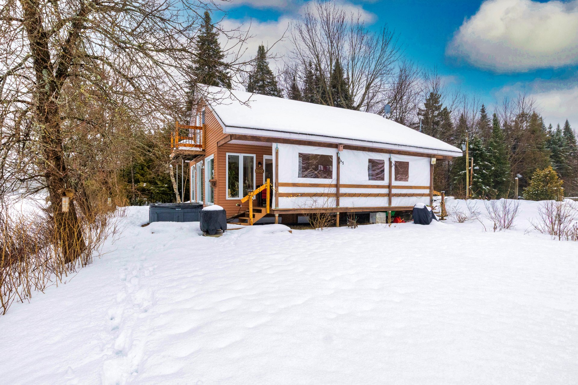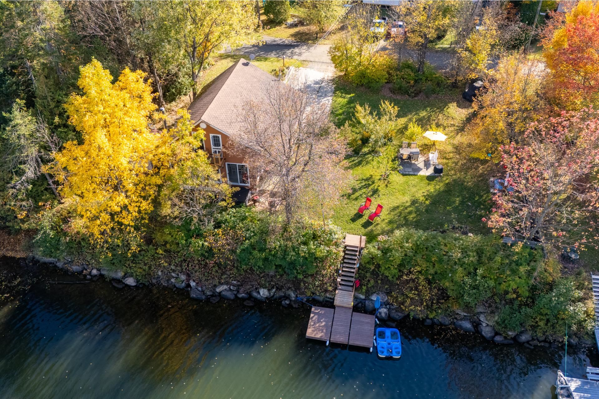 Spa, quais et escaliers d'accès, poêle à bois, stores, luminaires, système d'urgence à batterie sump pump, hotte micro-onde, restant de bois extérieur. Possibilité de vendre presque tout meublé selon entente avec le vendeur.